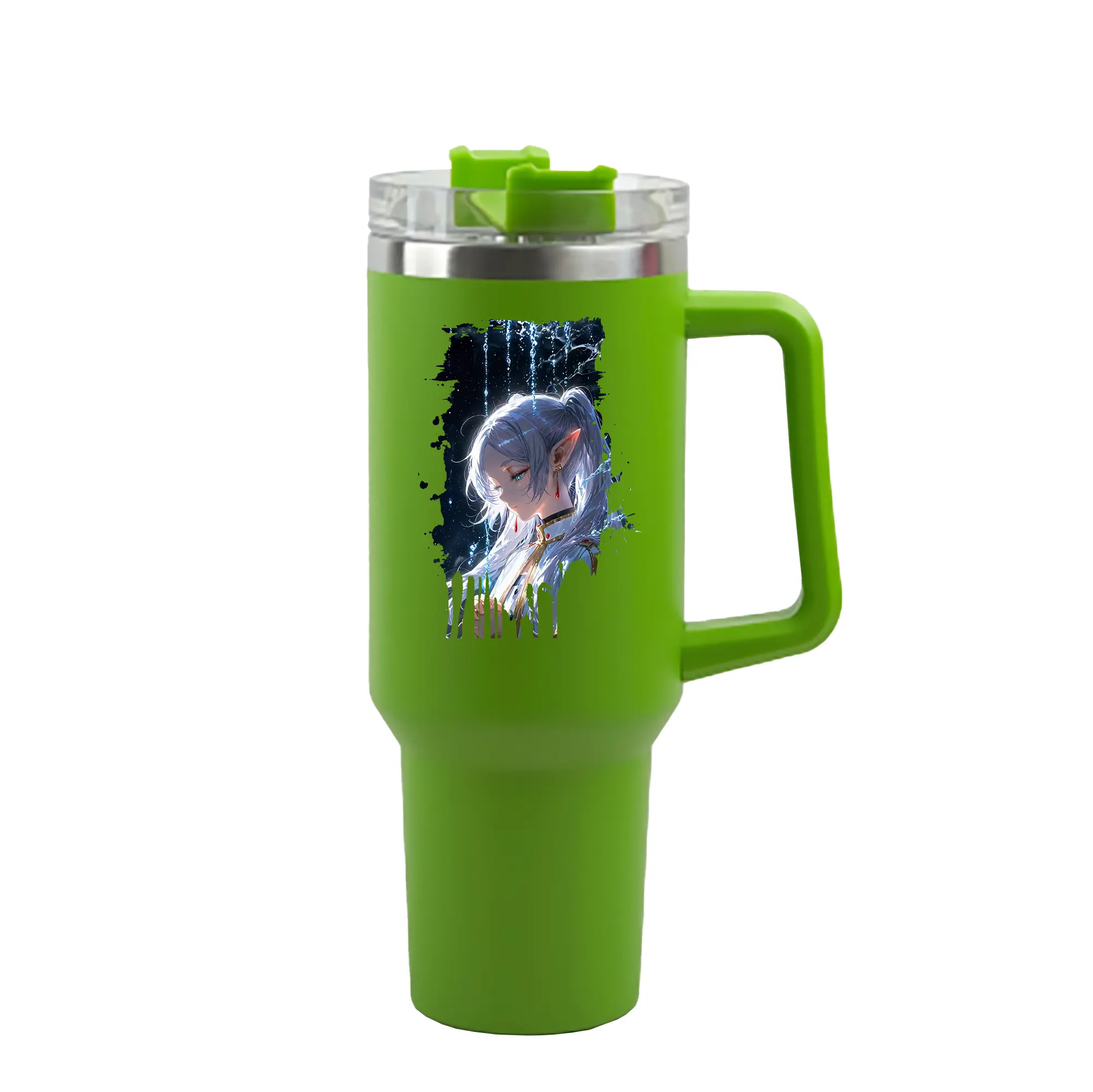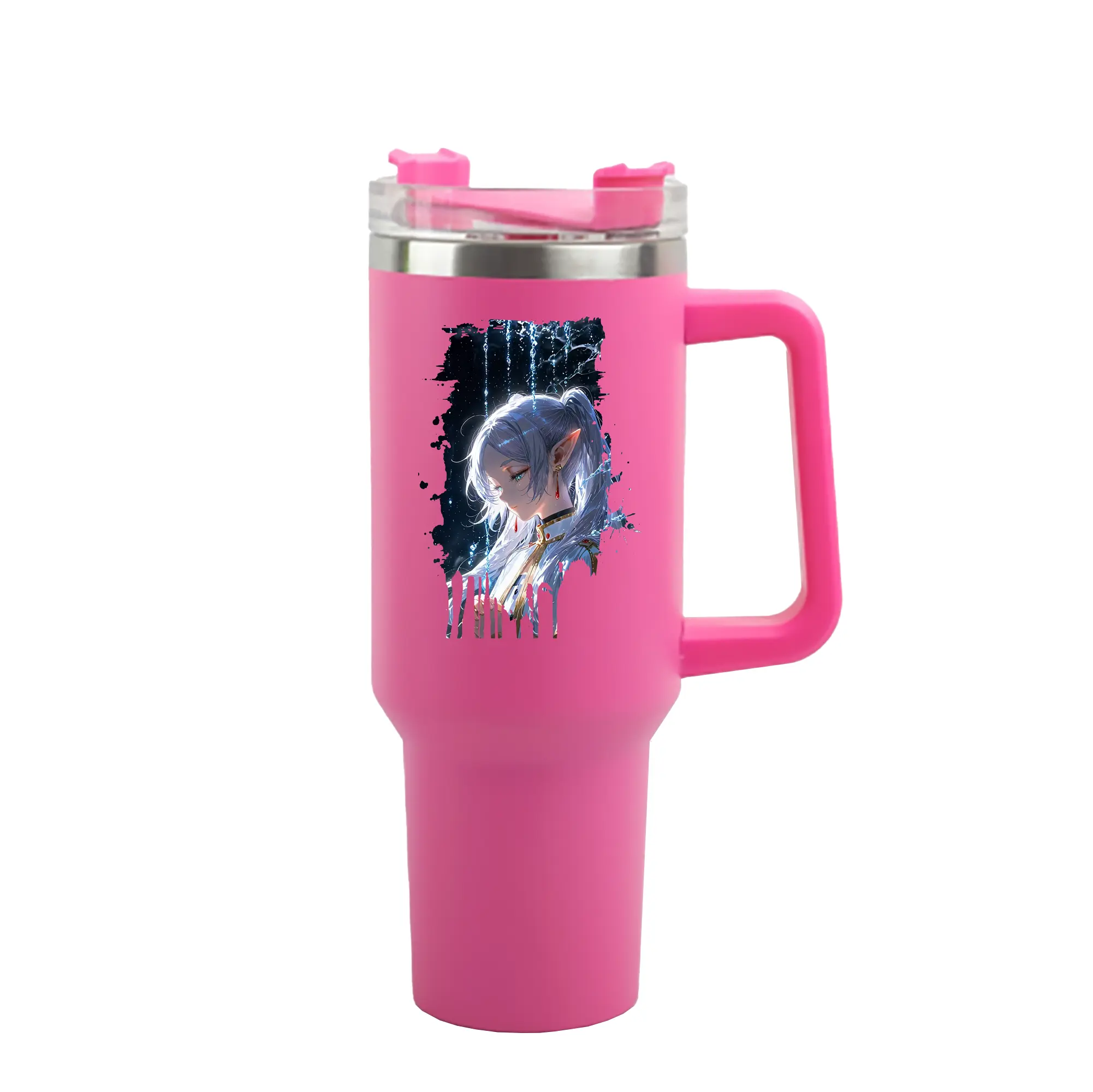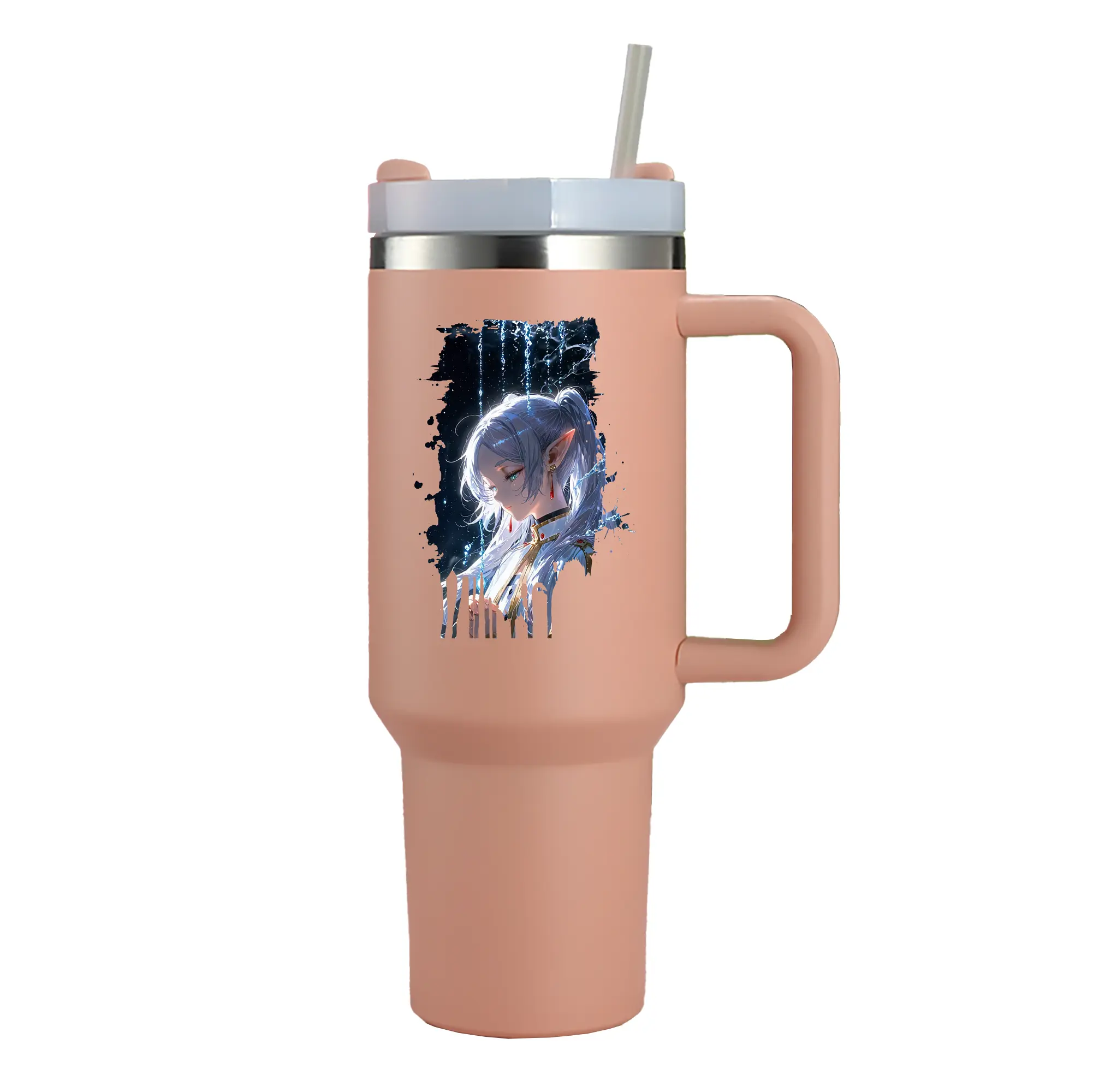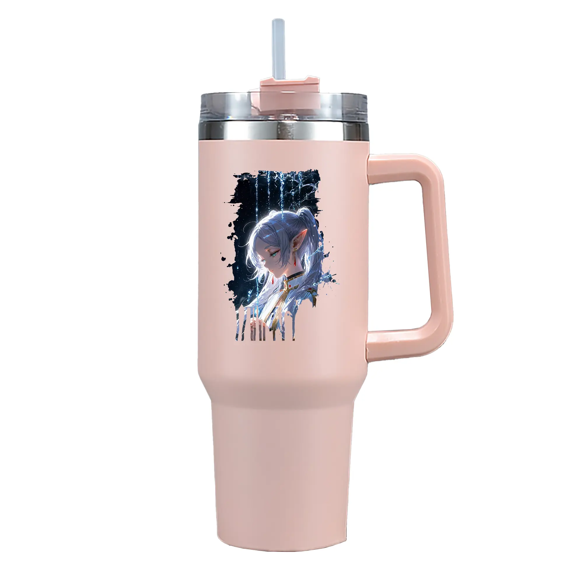 葬送のフリーレン(Frieren) グッズ,フリーレン(Frieren) - 1200mL 車用タンブラー ・ クリスタルステッカー ・ 304ステンレス 内側 ・ 201ステンレス 外側 ・ 保温 保冷 ・ ハンドル&ストロー付き ・ 通勤 ドライブ アウトドア用