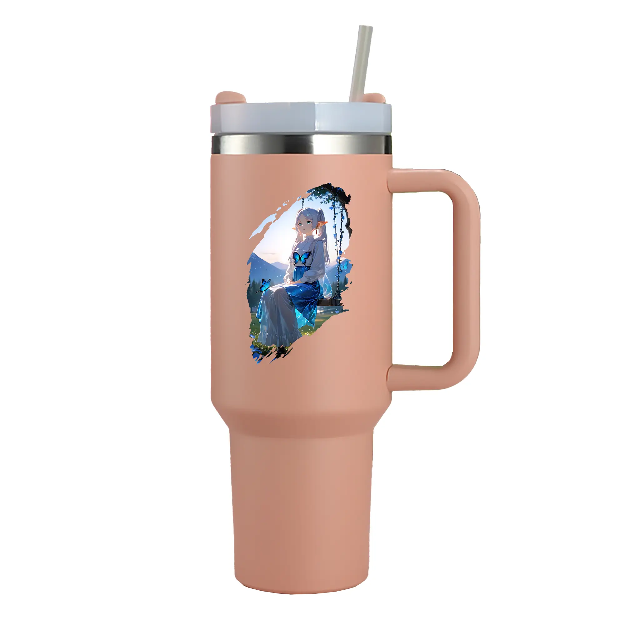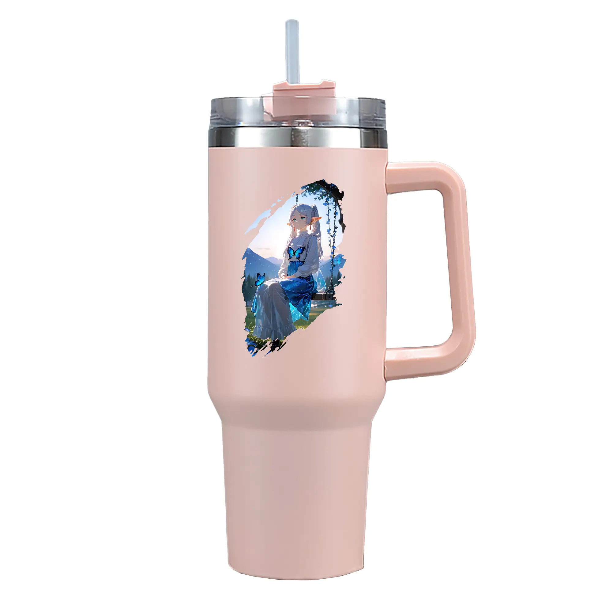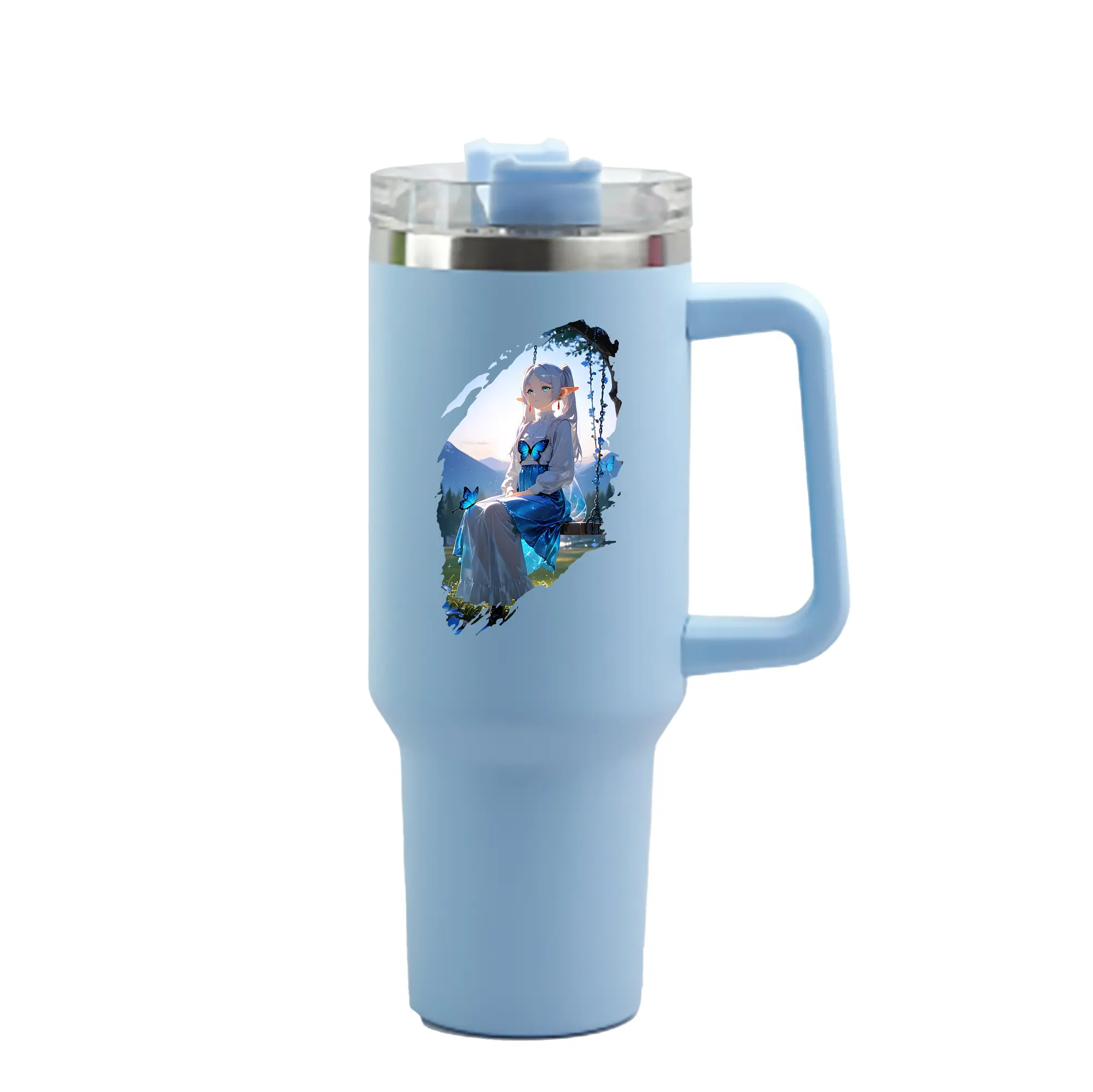 葬送のフリーレン(Frieren) グッズ,フリーレン(Frieren) - 1200mL 車用タンブラー ・ クリスタルステッカー ・ 304ステンレス 内側 ・ 201ステンレス 外側 ・ 保温 保冷 ・ ハンドル&ストロー付き ・ 通勤 ドライブ アウトドア用