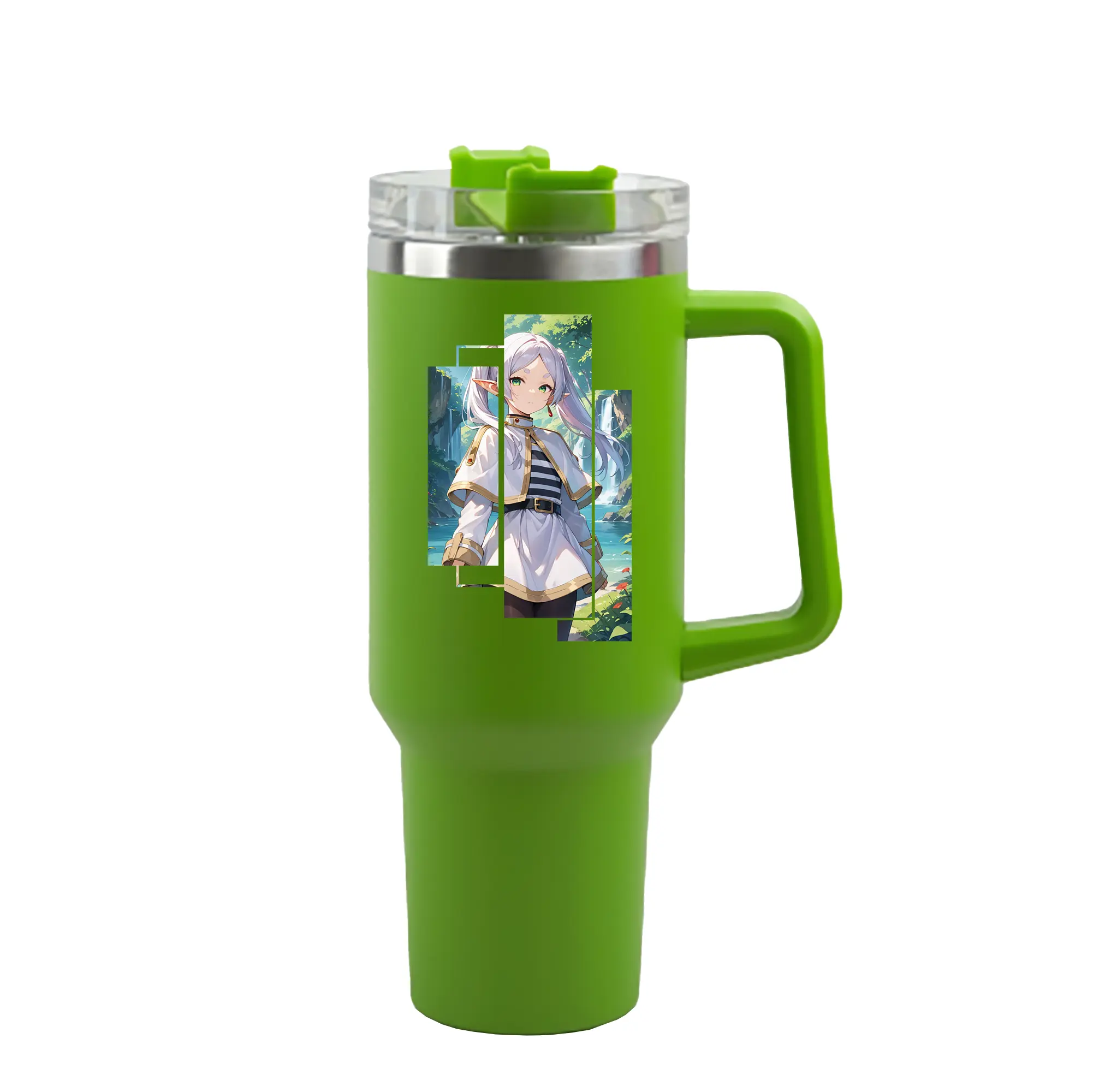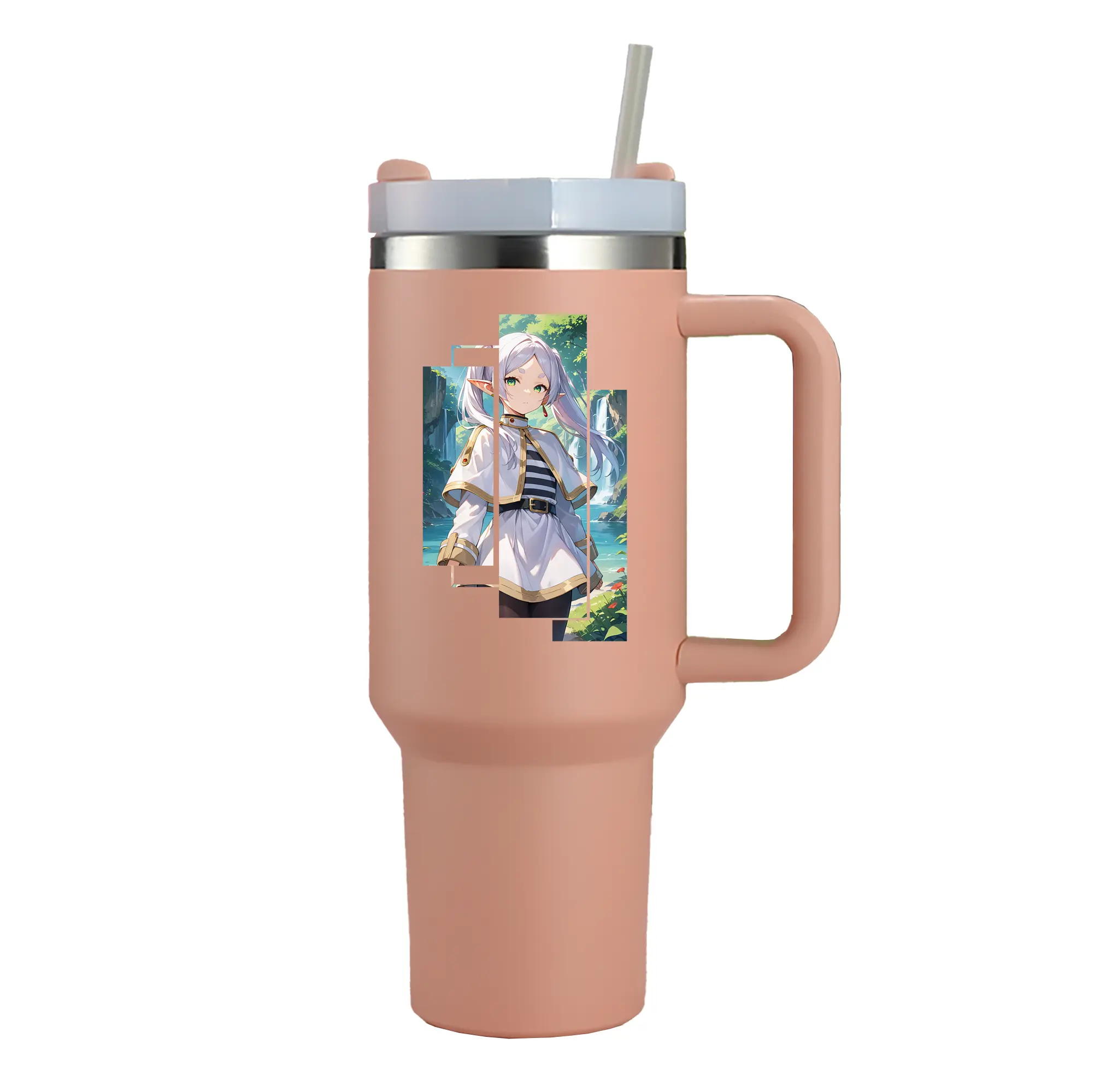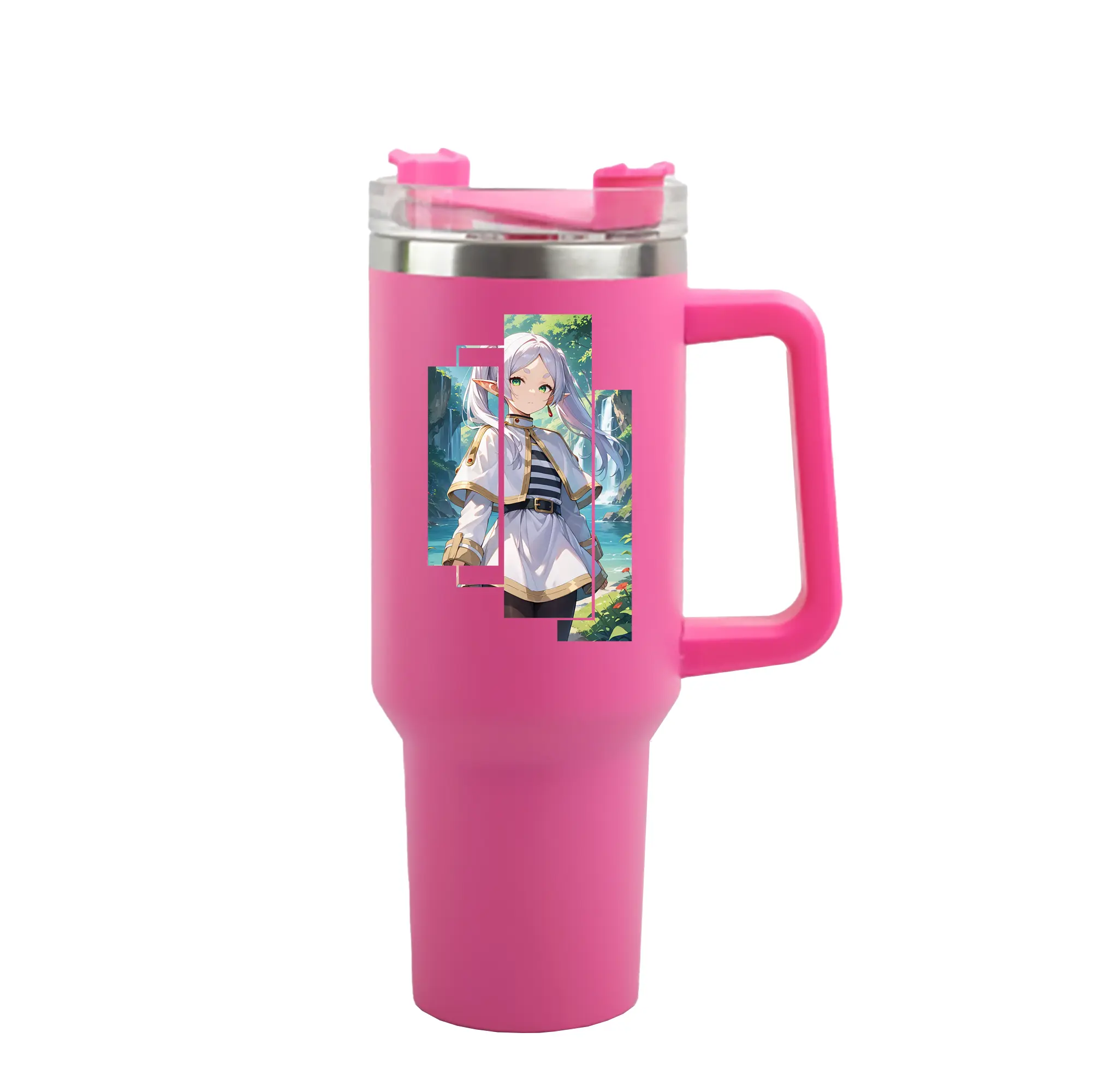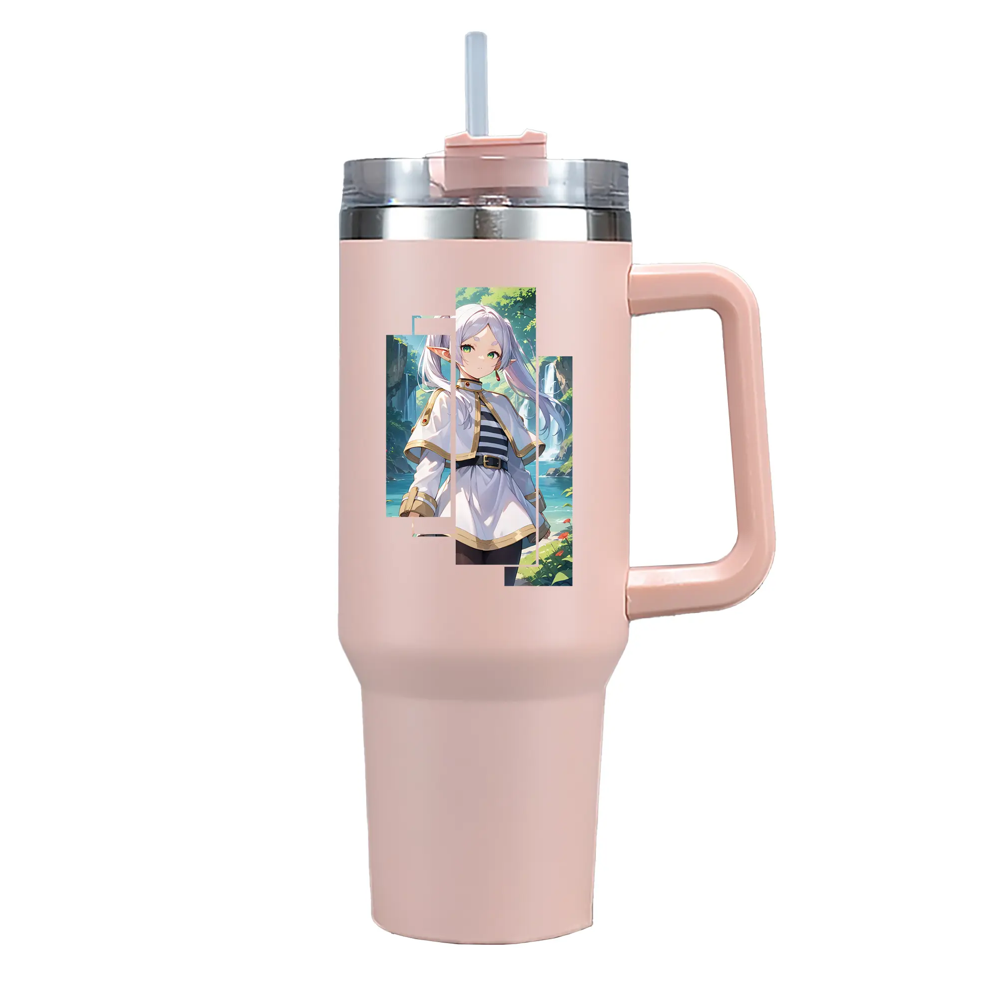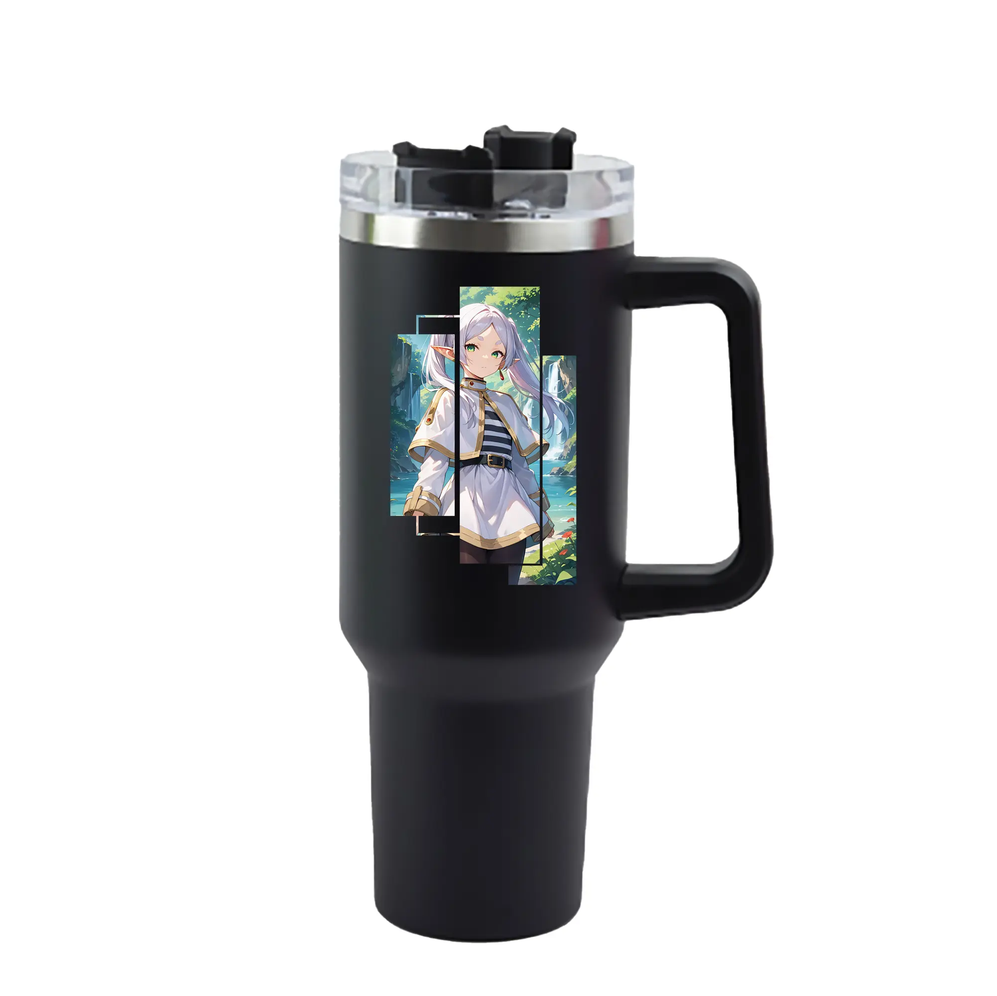 葬送のフリーレン(Frieren) グッズ,フリーレン(Frieren) - 1200mL 車用タンブラー ・ クリスタルステッカー ・ 304ステンレス 内側 ・ 201ステンレス 外側 ・ 保温 保冷 ・ ハンドル&ストロー付き ・ 通勤 ドライブ アウトドア用