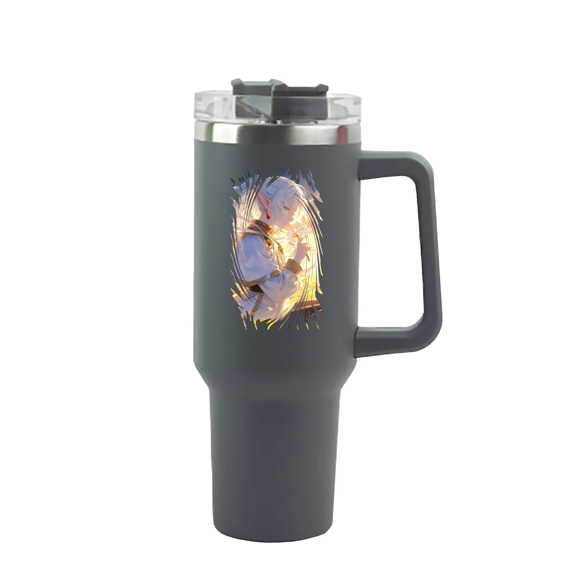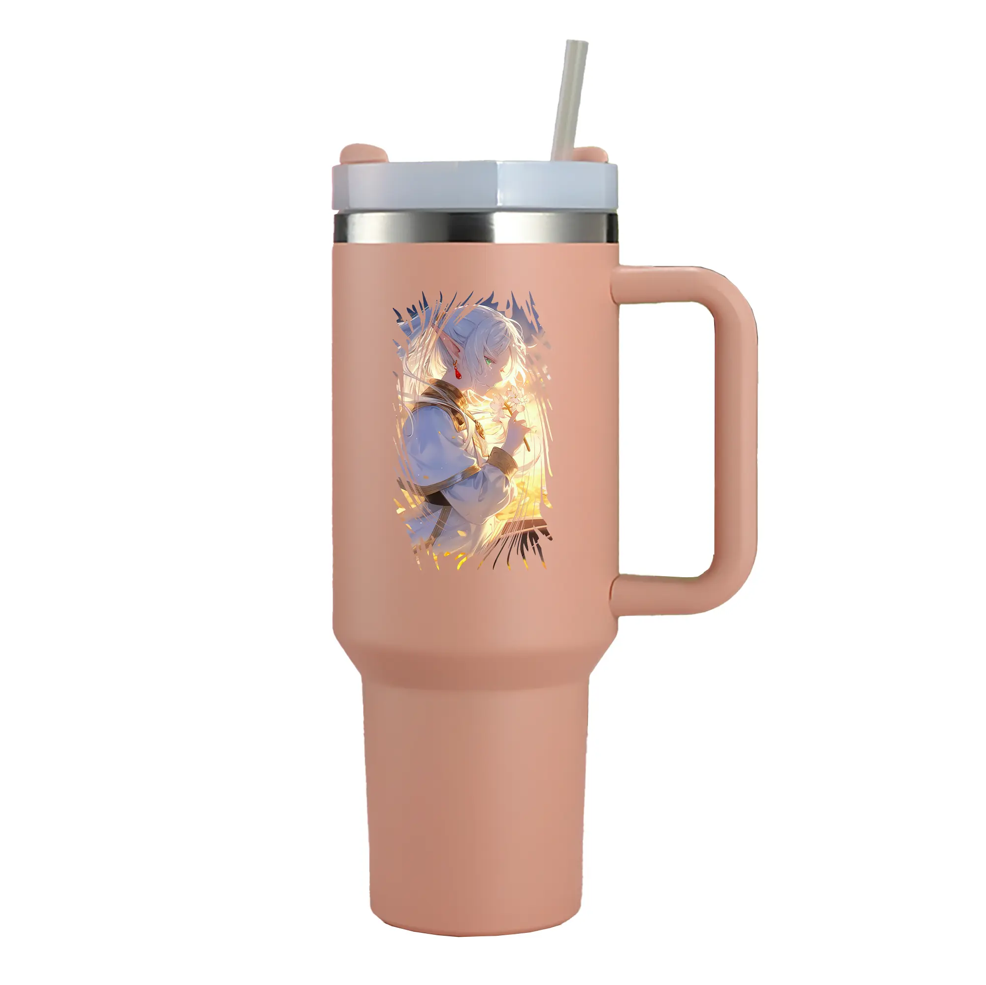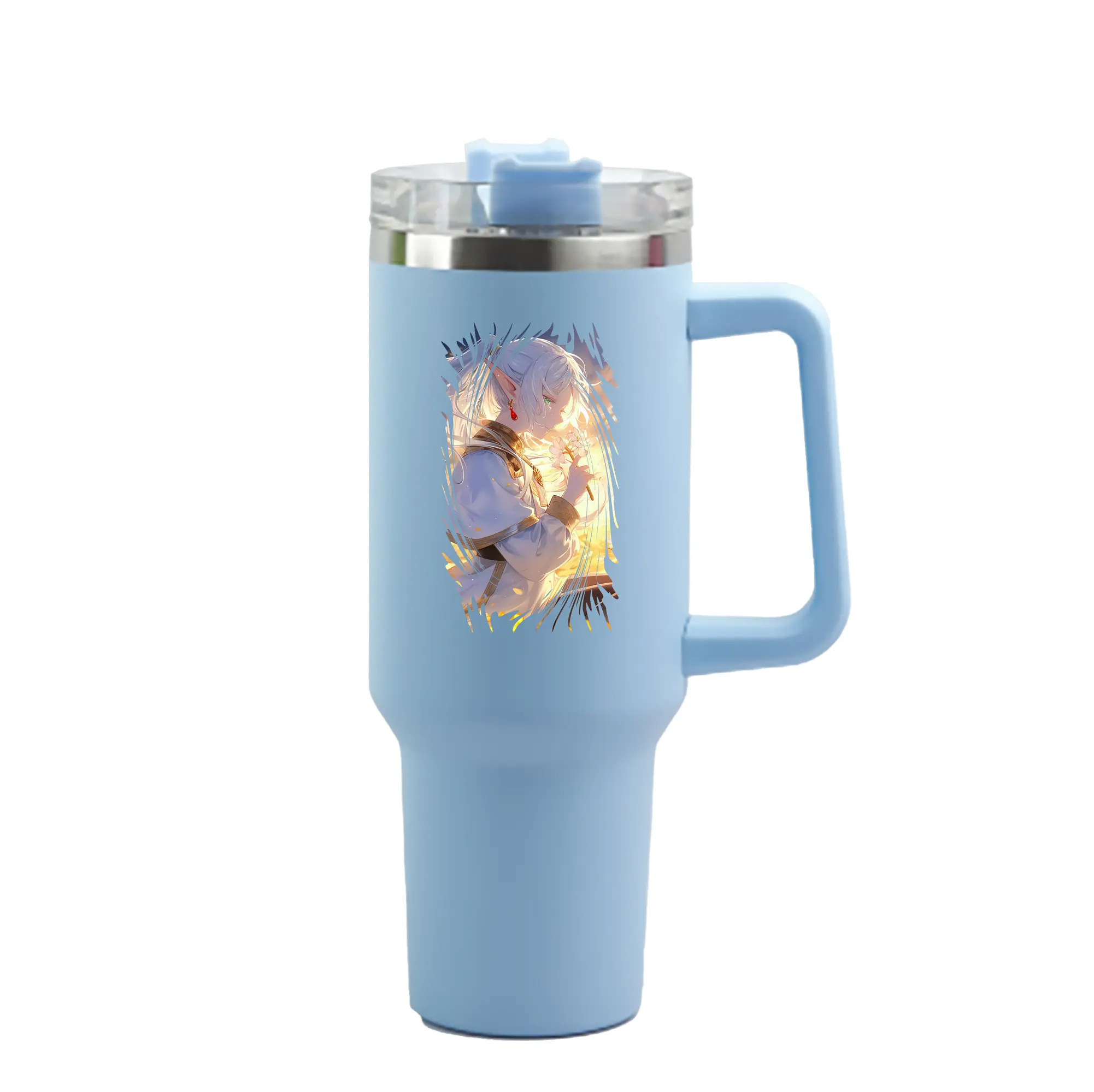 葬送のフリーレン(Frieren) グッズ,フリーレン(Frieren) - 1200mL 車用タンブラー ・ クリスタルステッカー ・ 304ステンレス 内側 ・ 201ステンレス 外側 ・ 保温 保冷 ・ ハンドル&ストロー付き ・ 通勤 ドライブ アウトドア用
