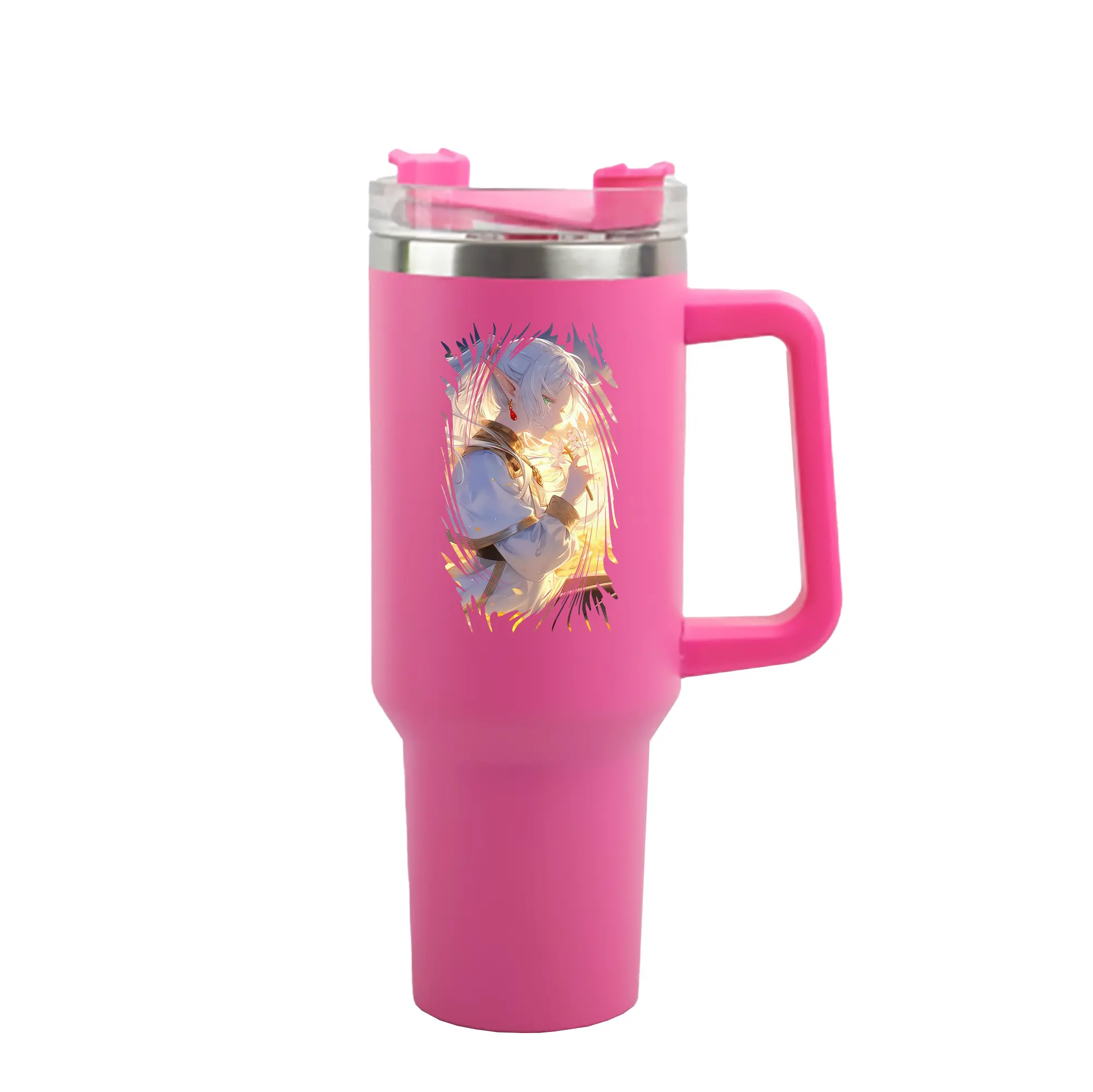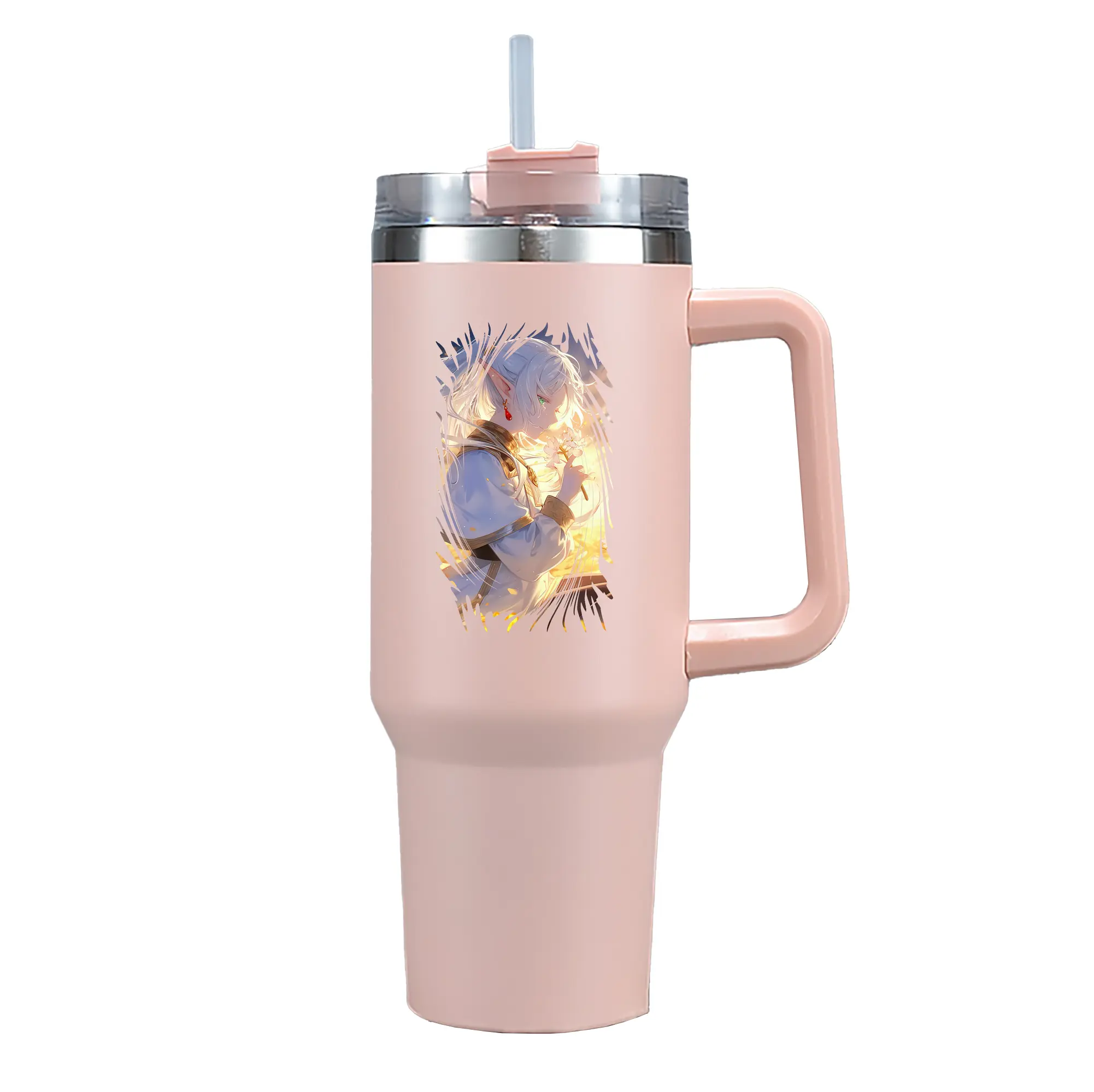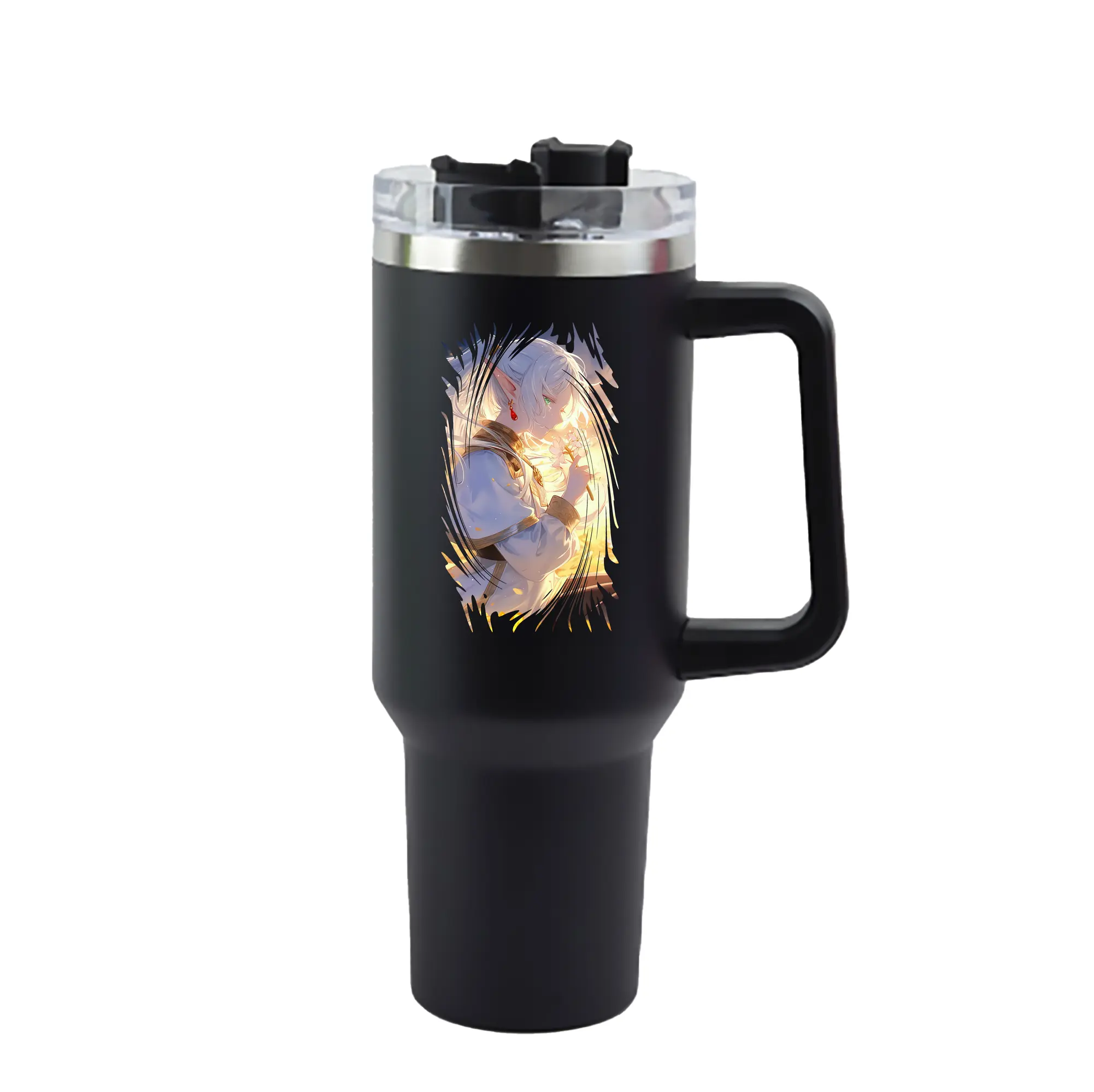 葬送のフリーレン(Frieren) グッズ,フリーレン(Frieren) - 1200mL 車用タンブラー ・ クリスタルステッカー ・ 304ステンレス 内側 ・ 201ステンレス 外側 ・ 保温 保冷 ・ ハンドル&ストロー付き ・ 通勤 ドライブ アウトドア用
