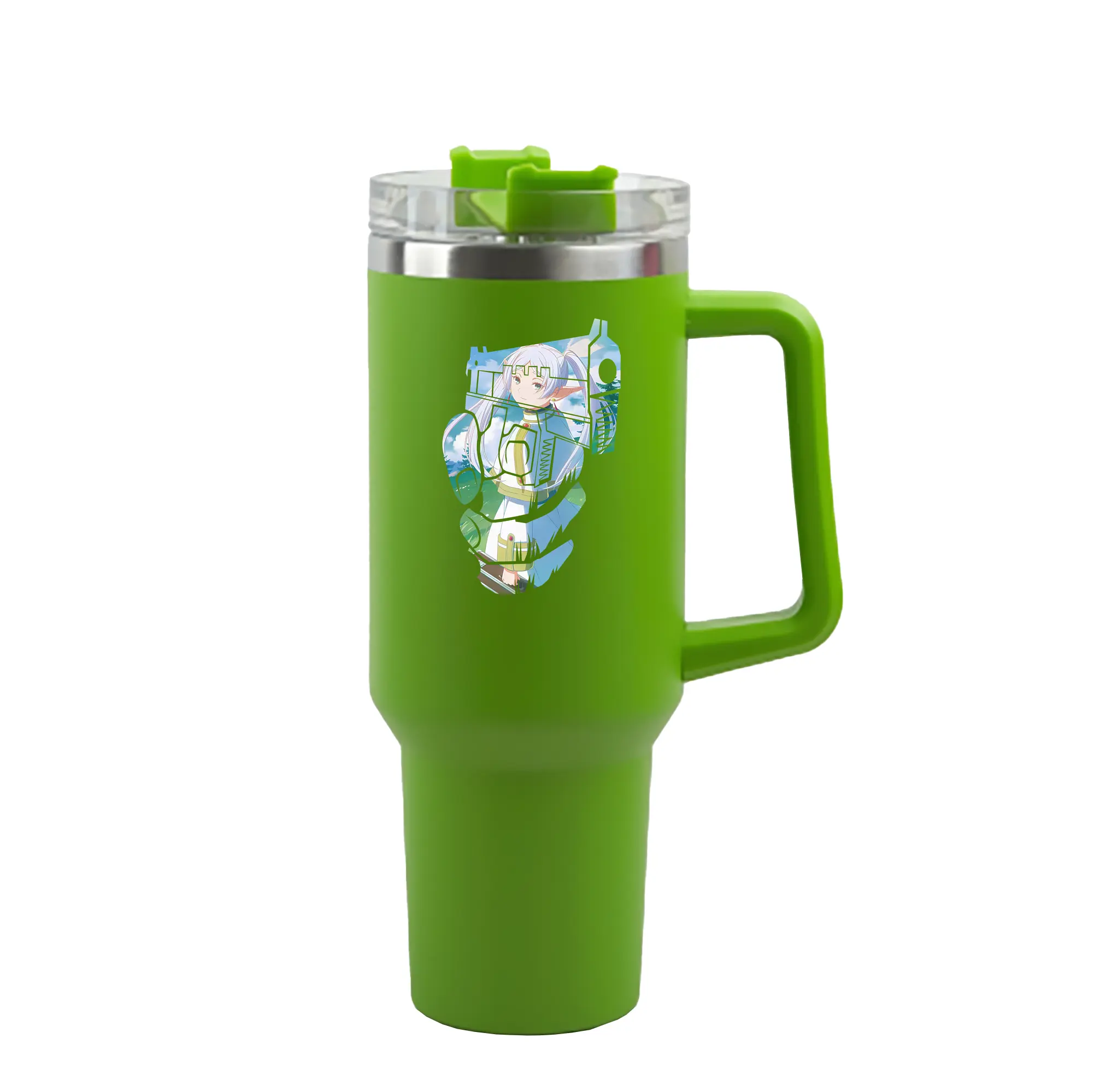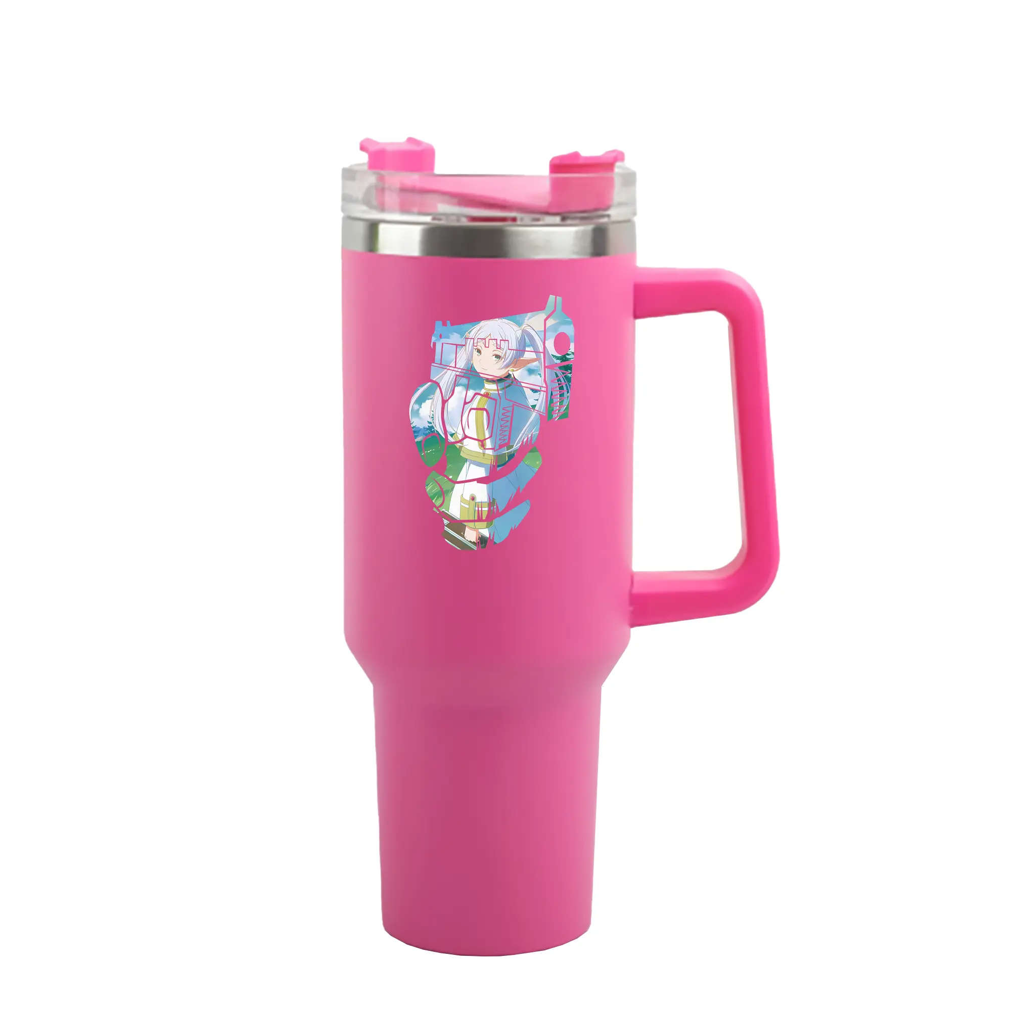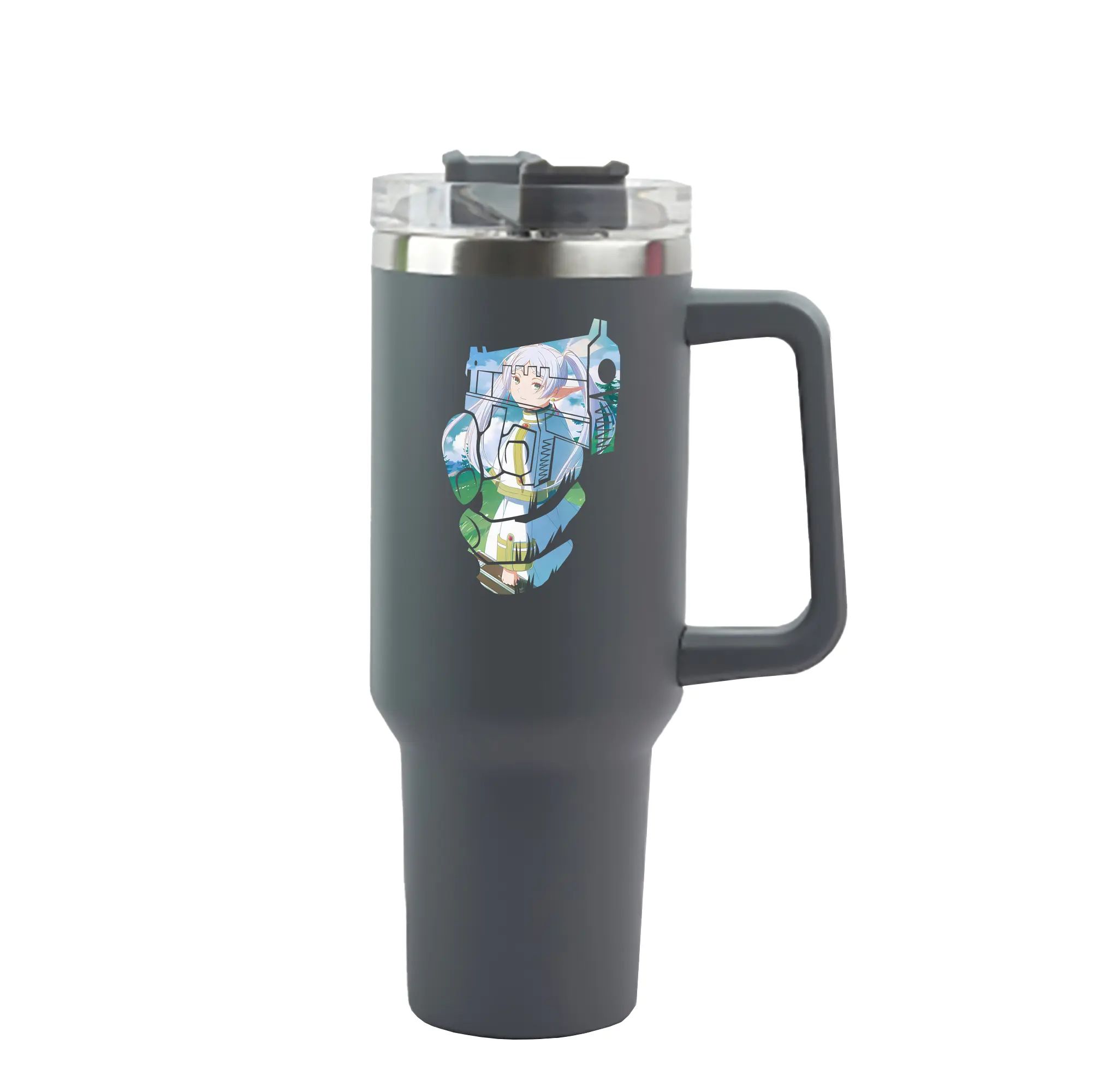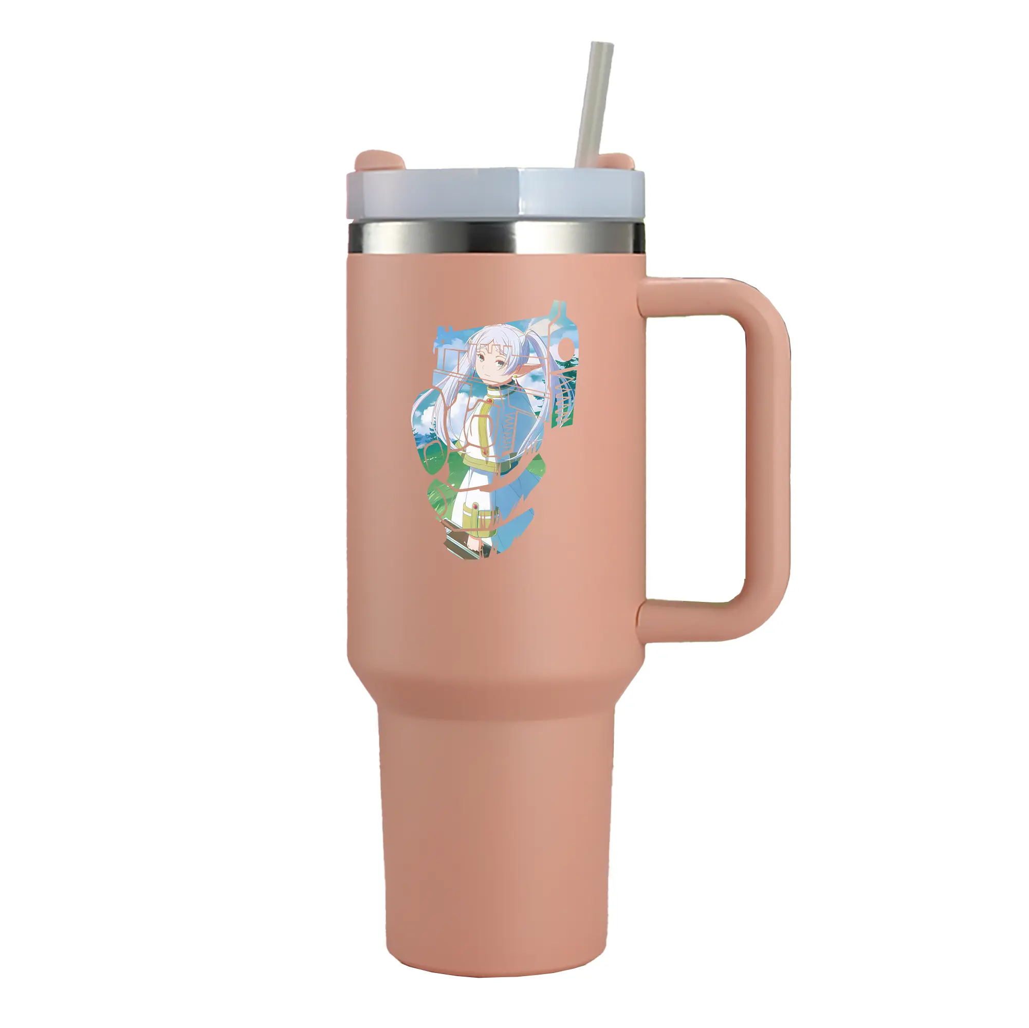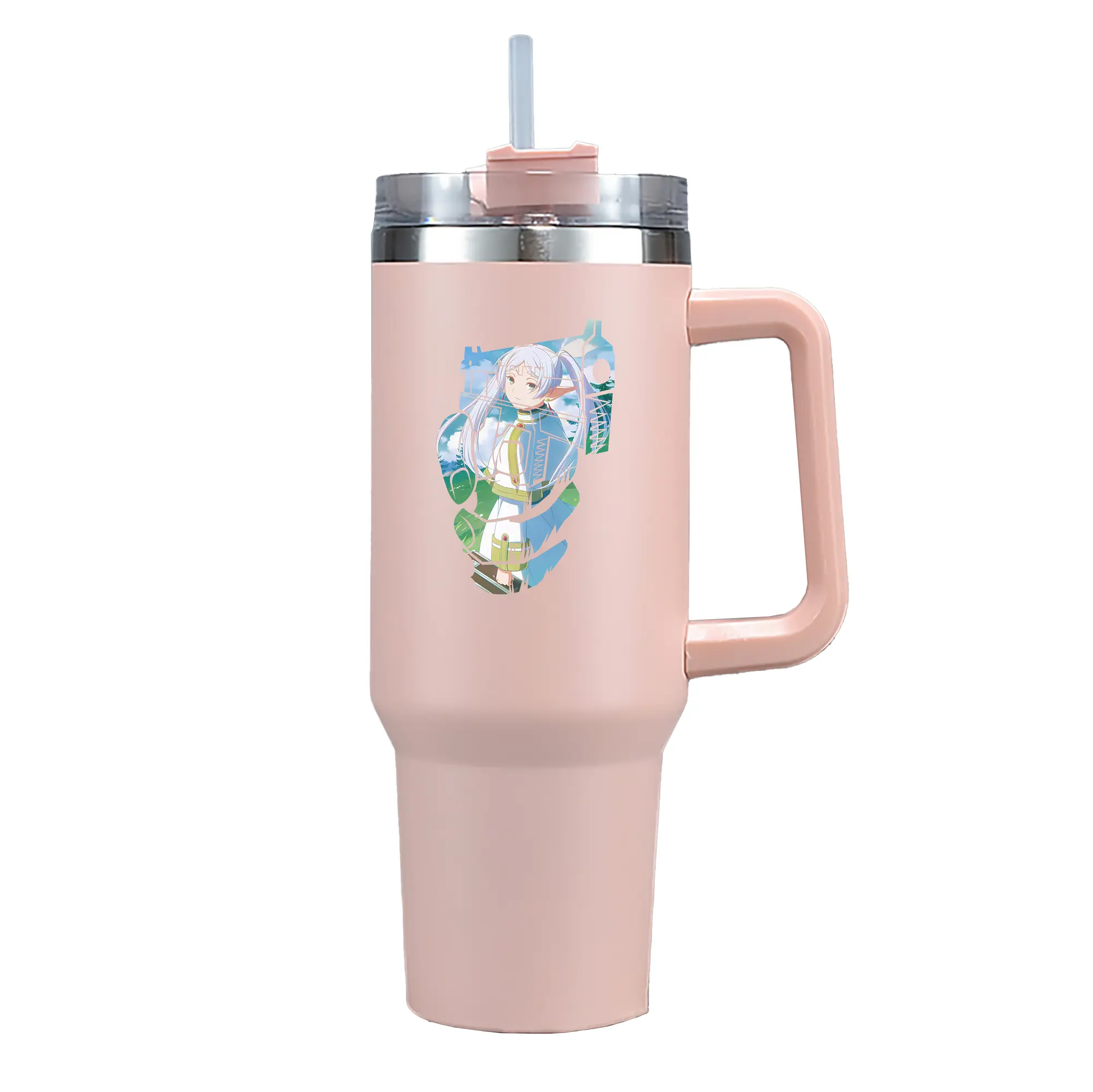葬送のフリーレン(Frieren) グッズ,フリーレン(Frieren) - 1200mL 車用タンブラー ・ クリスタルステッカー ・ 304ステンレス 内側 ・ 201ステンレス 外側 ・ 保温 保冷 ・ ハンドル&ストロー付き ・ 通勤 ドライブ アウトドア用