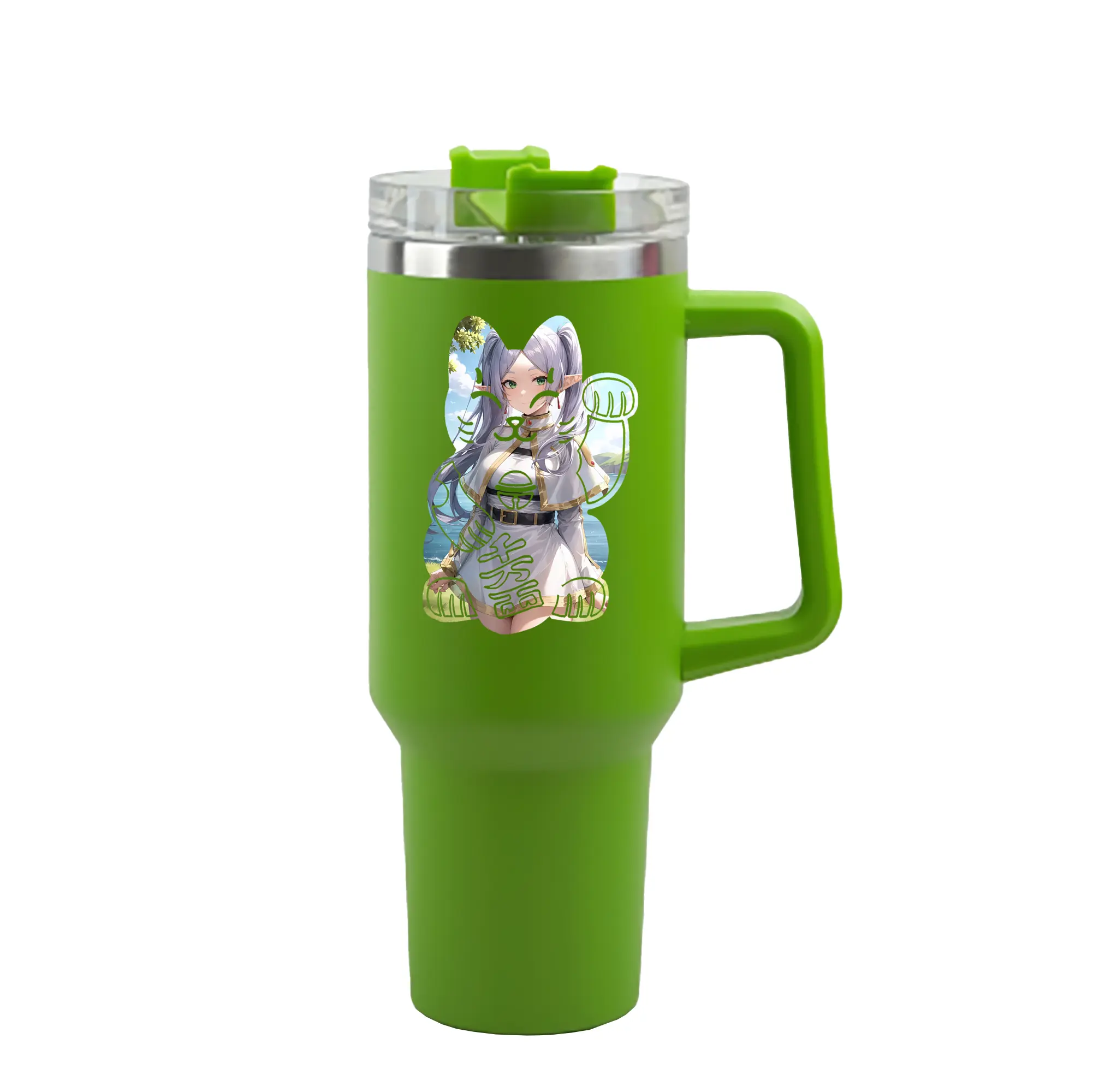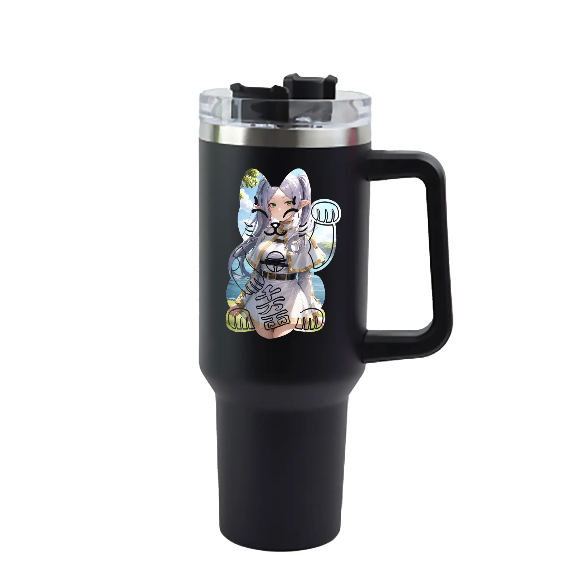 葬送のフリーレン(Frieren) グッズ,フリーレン(Frieren) - 1200mL 車用タンブラー ・ クリスタルステッカー ・ 304ステンレス 内側 ・ 201ステンレス 外側 ・ 保温 保冷 ・ ハンドル&ストロー付き ・ 通勤 ドライブ アウトドア用