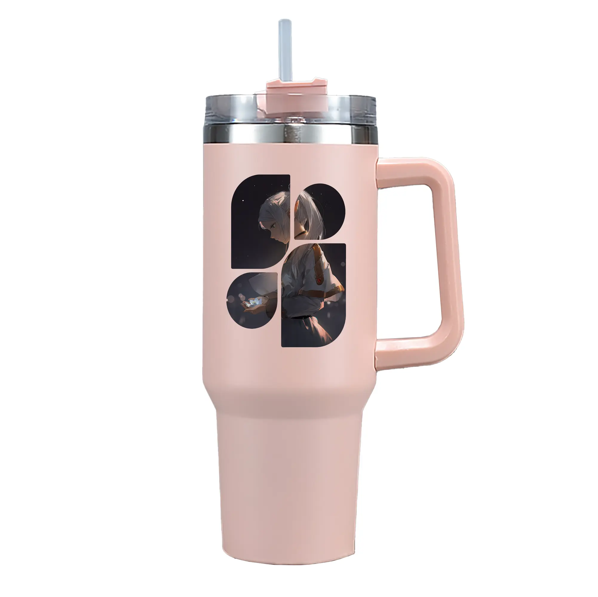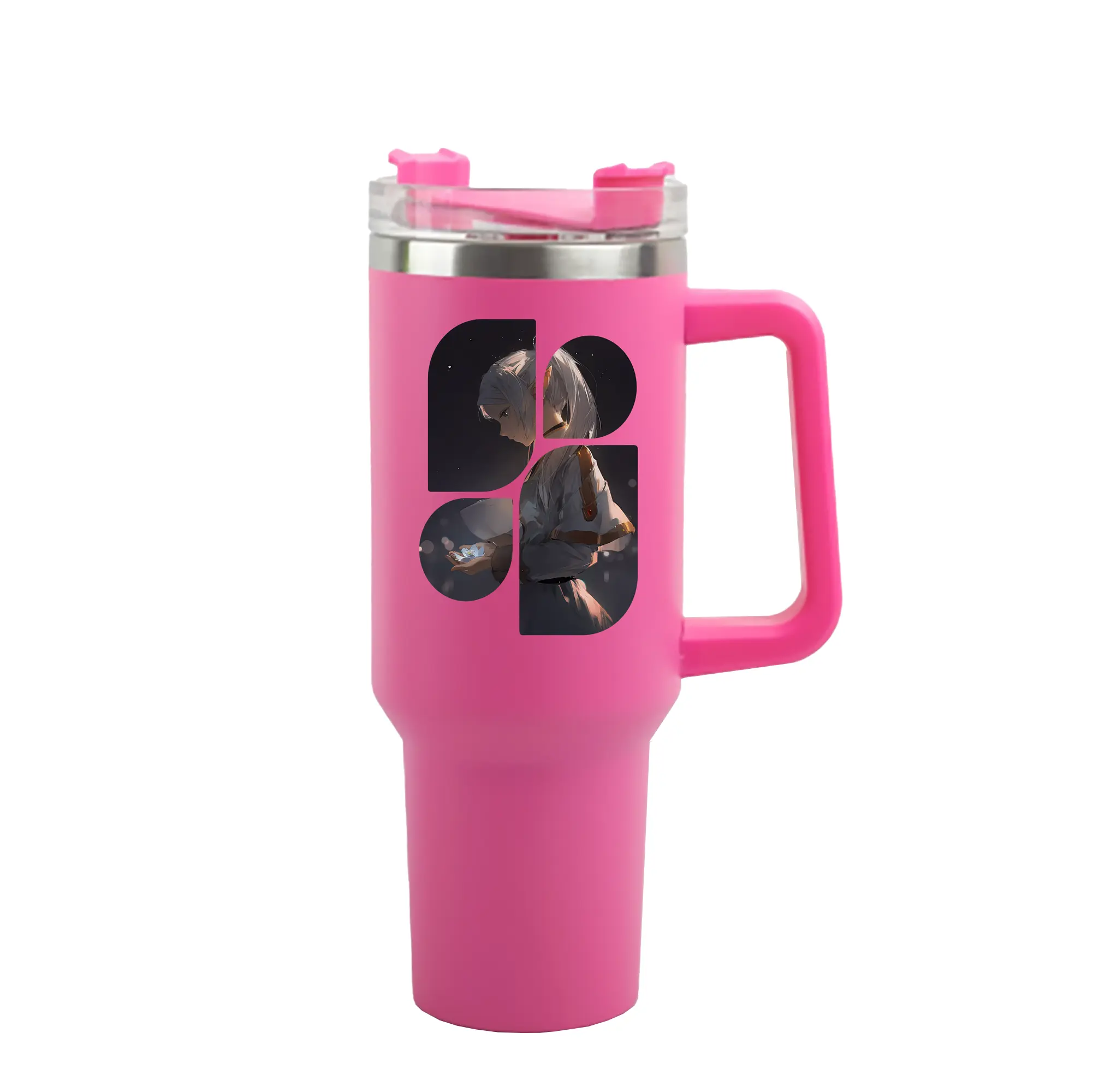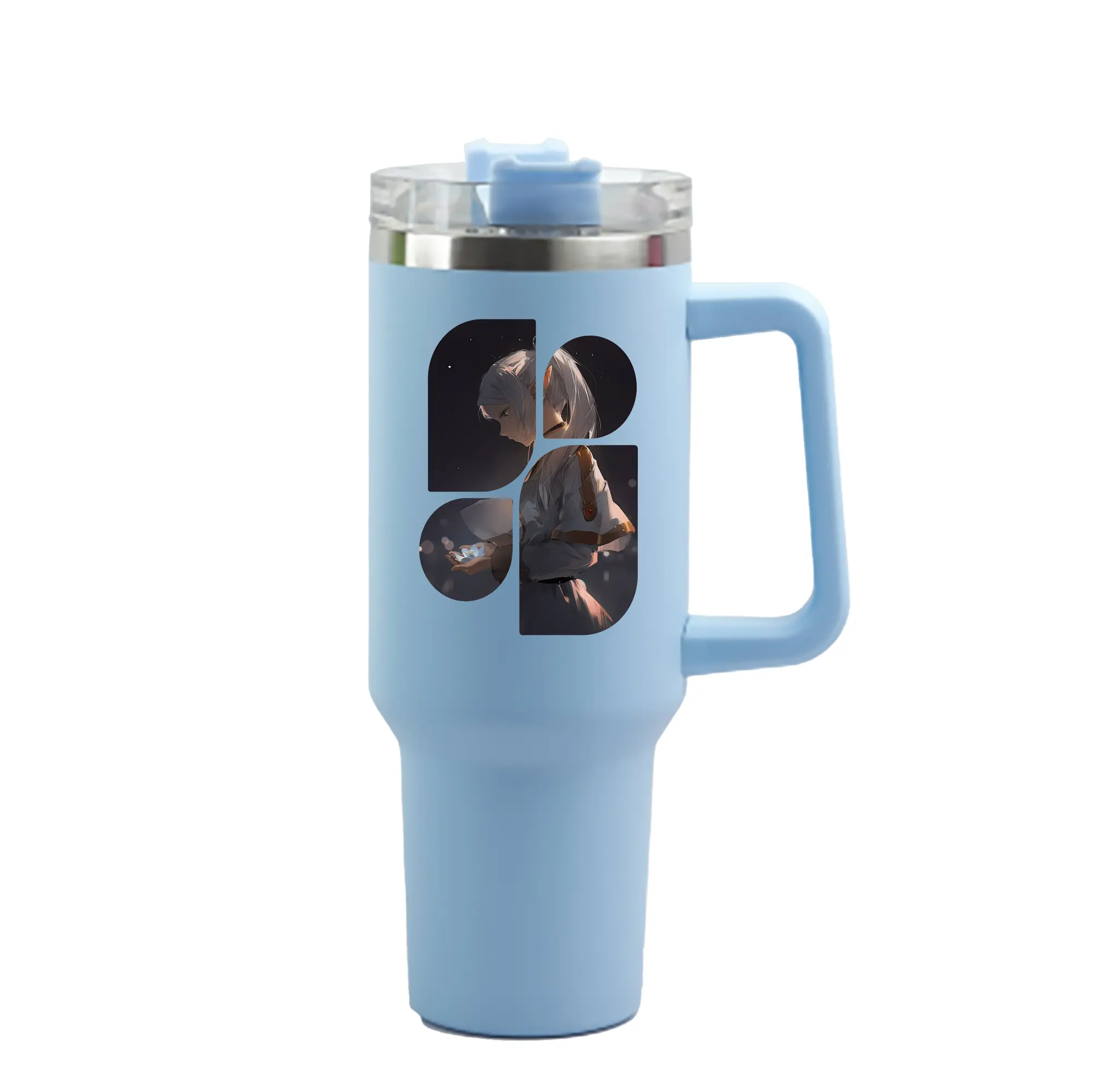 葬送のフリーレン(Frieren) グッズ,フリーレン(Frieren) - 1200mL 車用タンブラー ・ クリスタルステッカー ・ 304ステンレス 内側 ・ 201ステンレス 外側 ・ 保温 保冷 ・ ハンドル&ストロー付き ・ 通勤 ドライブ アウトドア用