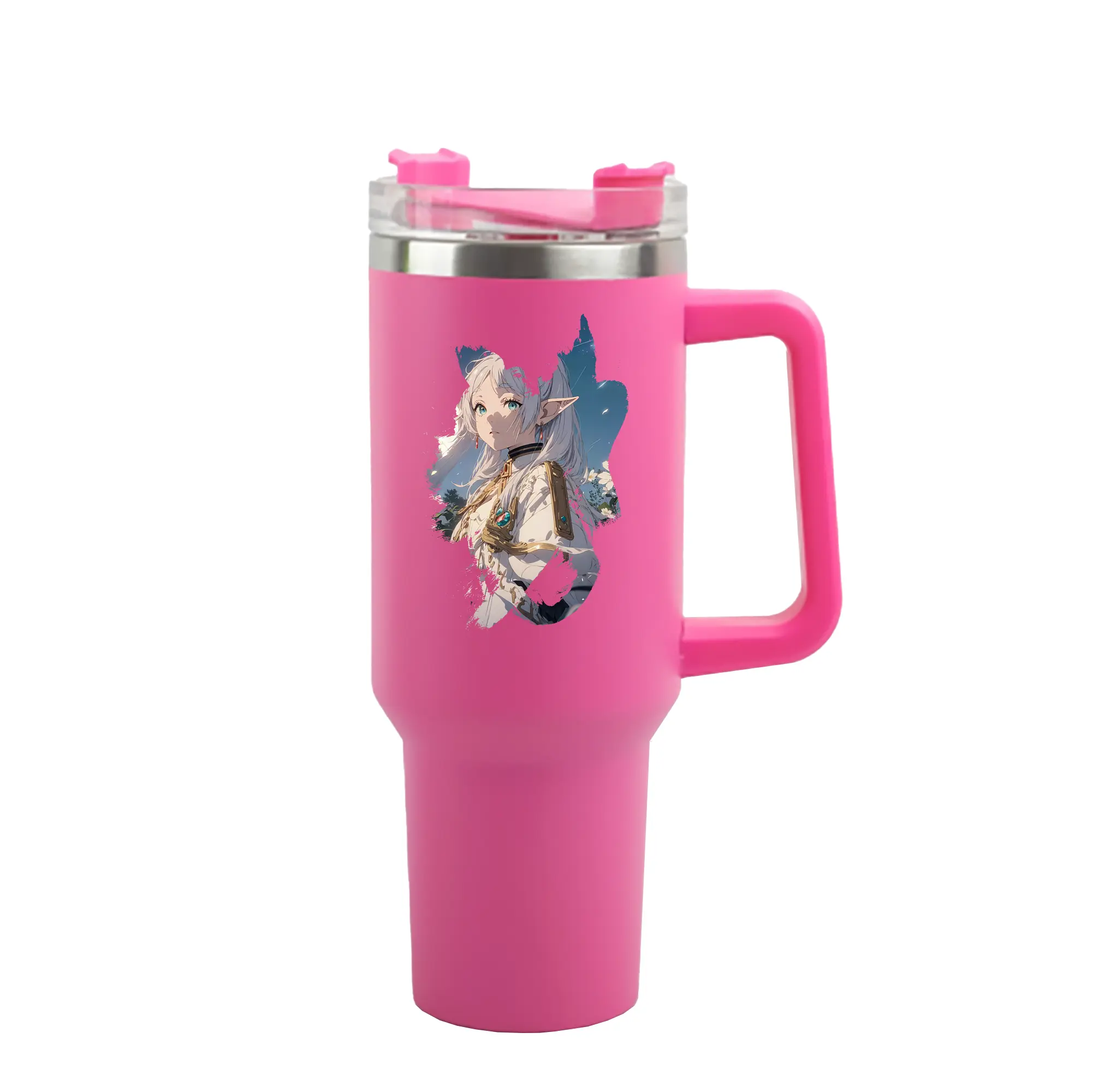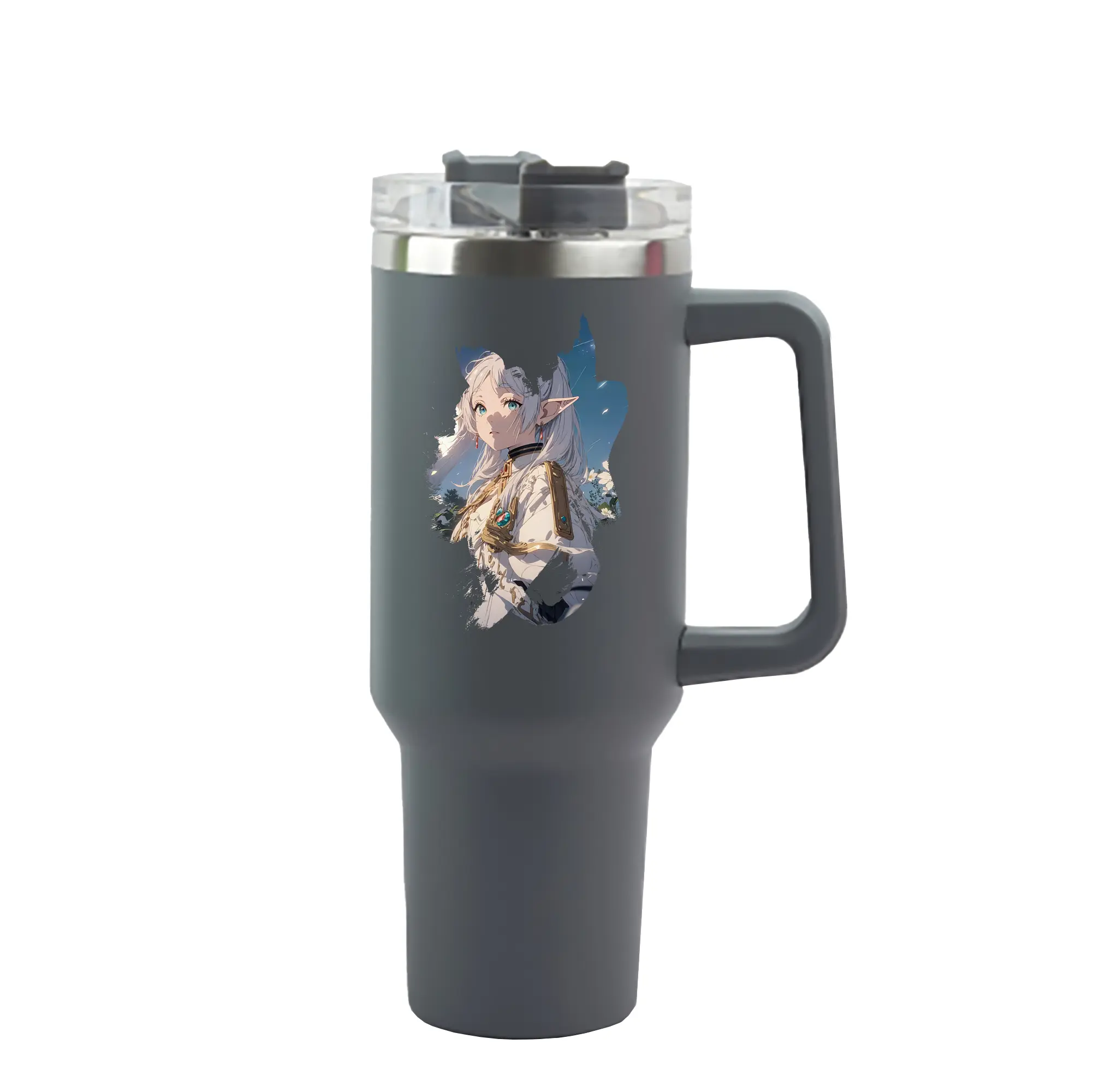 葬送のフリーレン(Frieren) グッズ,フリーレン(Frieren) - 1200mL 車用タンブラー ・ クリスタルステッカー ・ 304ステンレス 内側 ・ 201ステンレス 外側 ・ 保温 保冷 ・ ハンドル&ストロー付き ・ 通勤 ドライブ アウトドア用