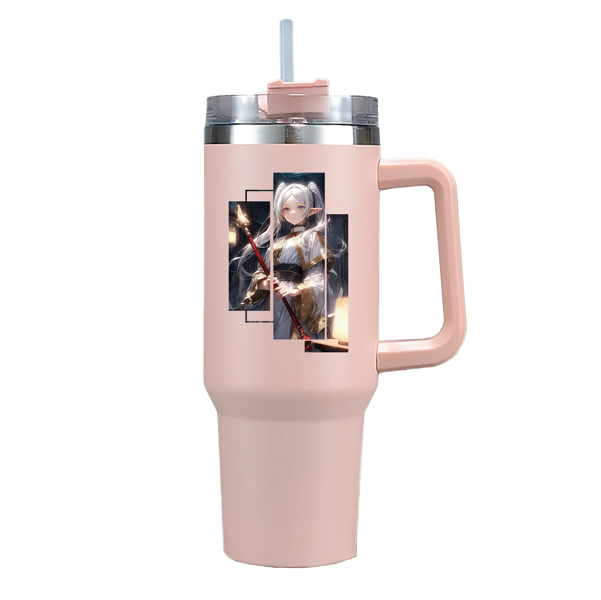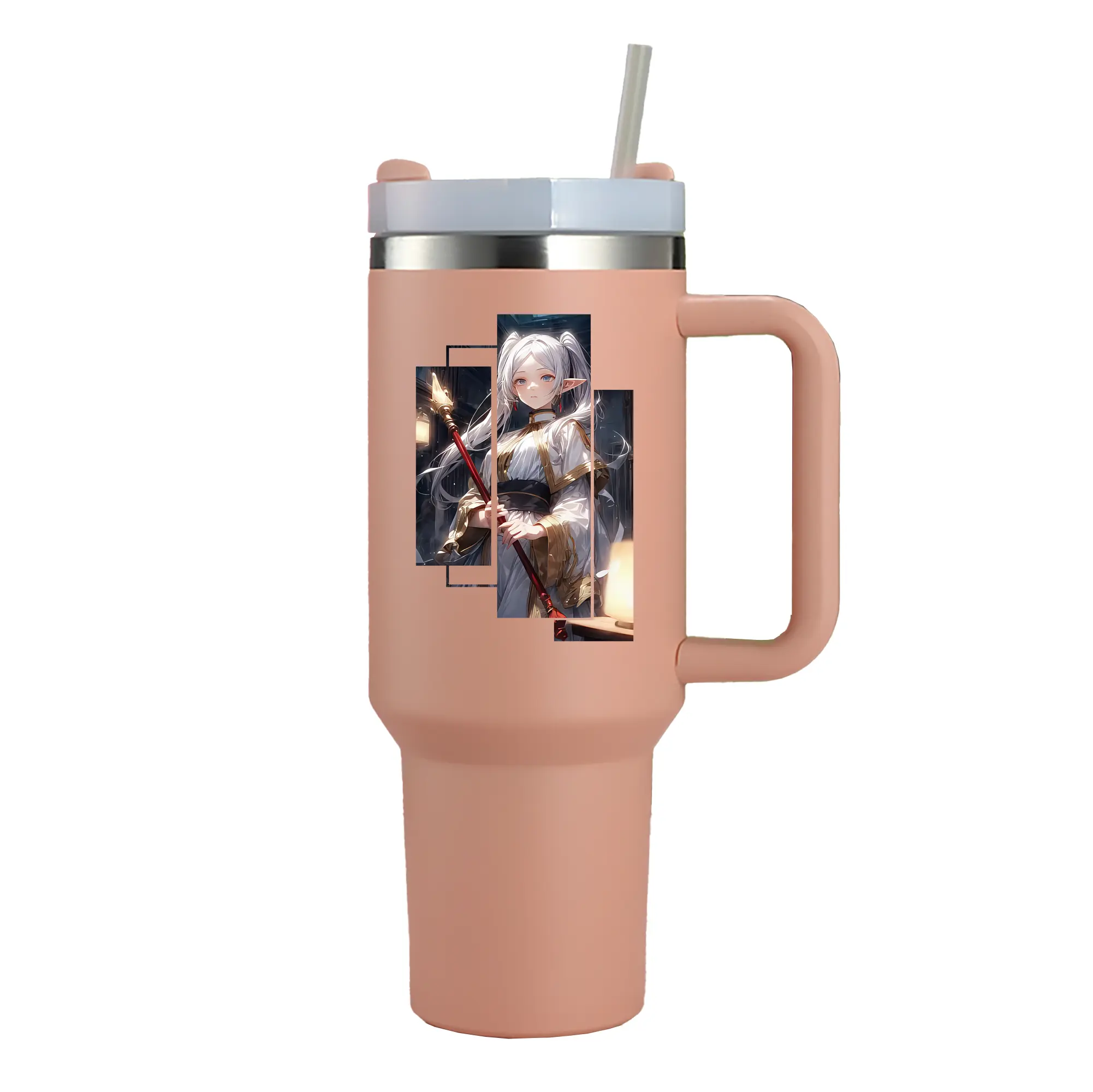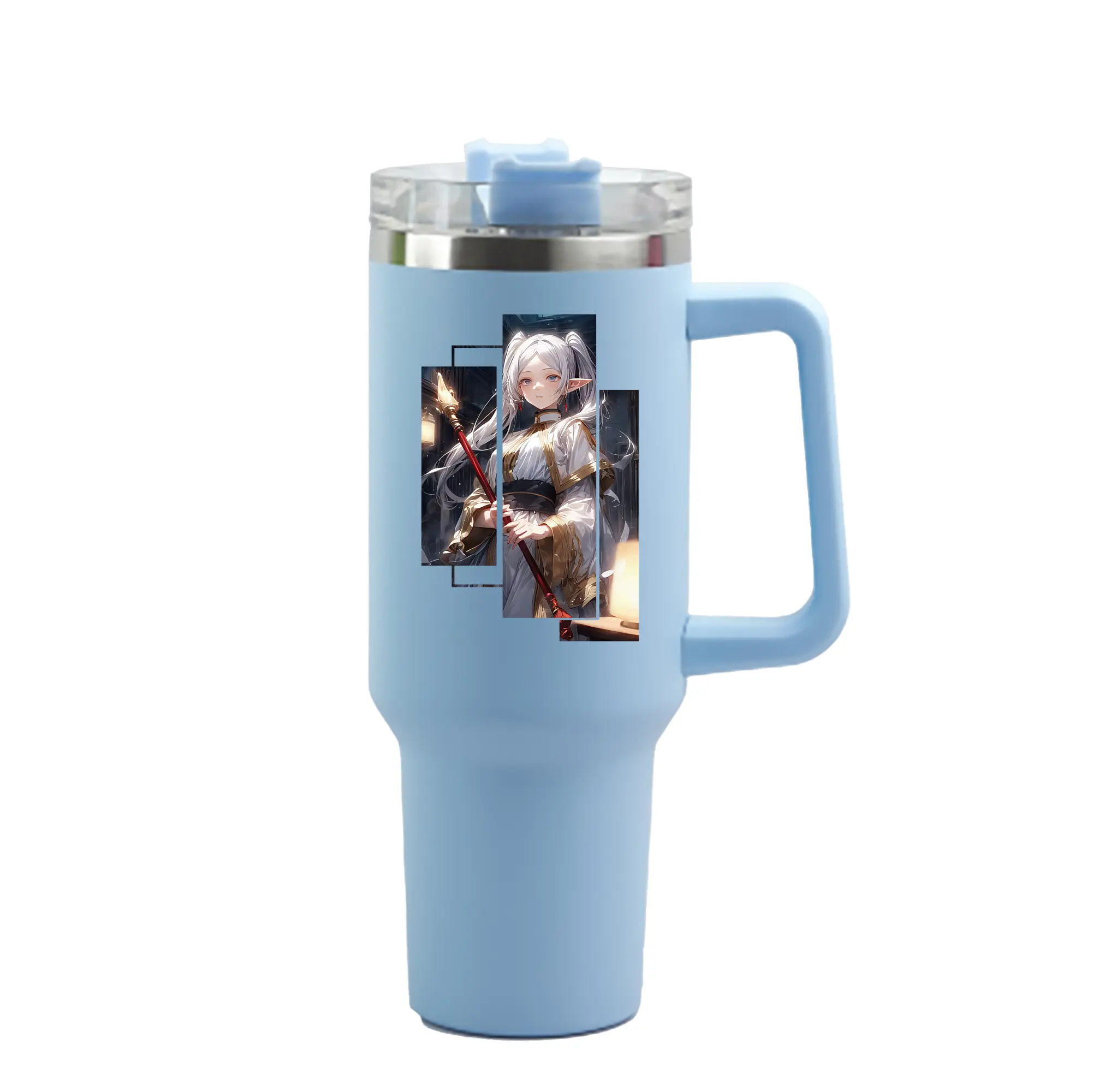 葬送のフリーレン(Frieren) グッズ,フリーレン(Frieren) - 1200mL 車用タンブラー ・ クリスタルステッカー ・ 304ステンレス 内側 ・ 201ステンレス 外側 ・ 保温 保冷 ・ ハンドル&ストロー付き ・ 通勤 ドライブ アウトドア用