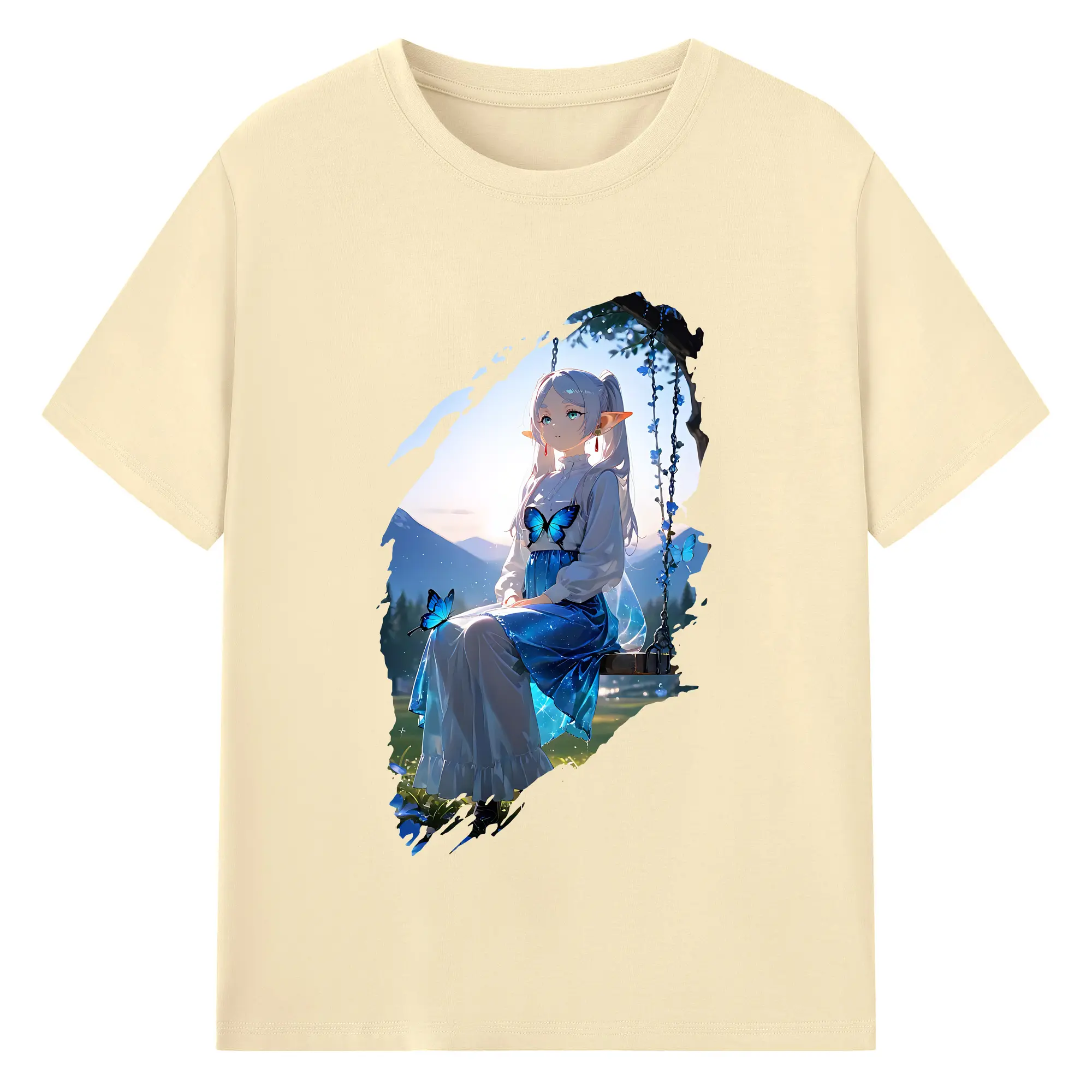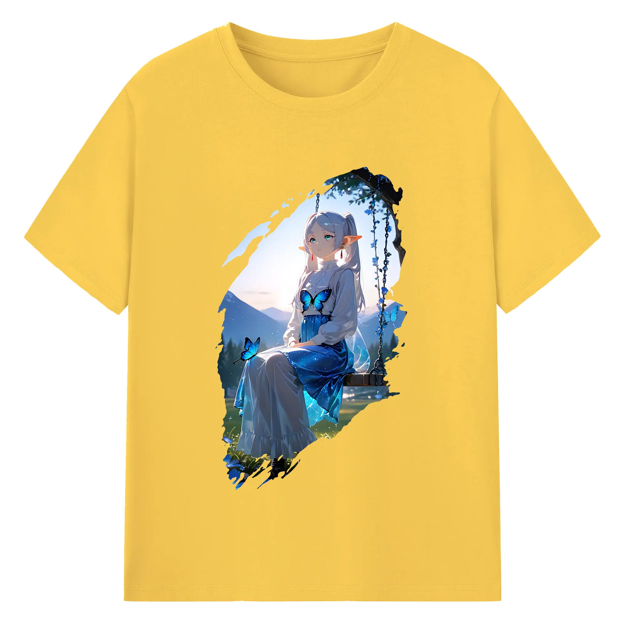 葬送のフリーレン(Frieren) グッズ,フリーレン(Frieren) - 綿100% 半袖Tシャツ ・ バックプリント ・ 快適 通気性 ・ 日常使い 散歩 スポーツ用