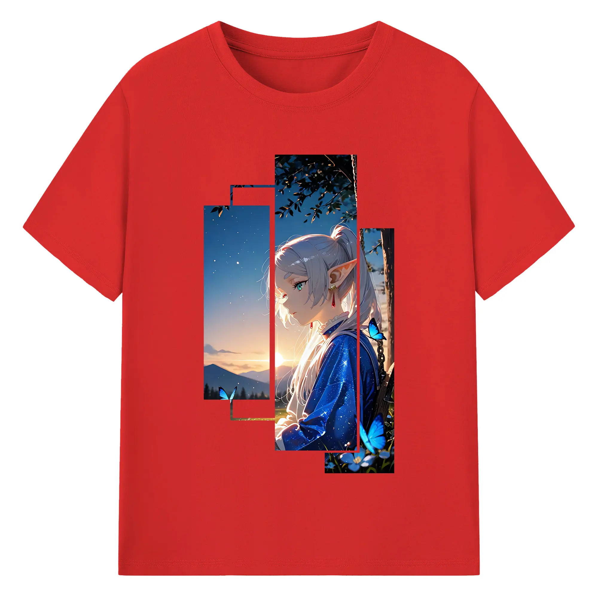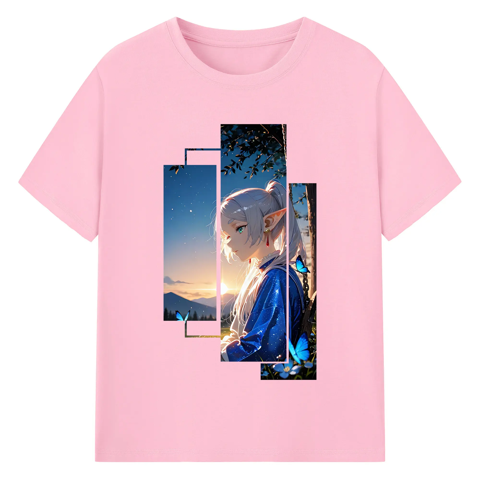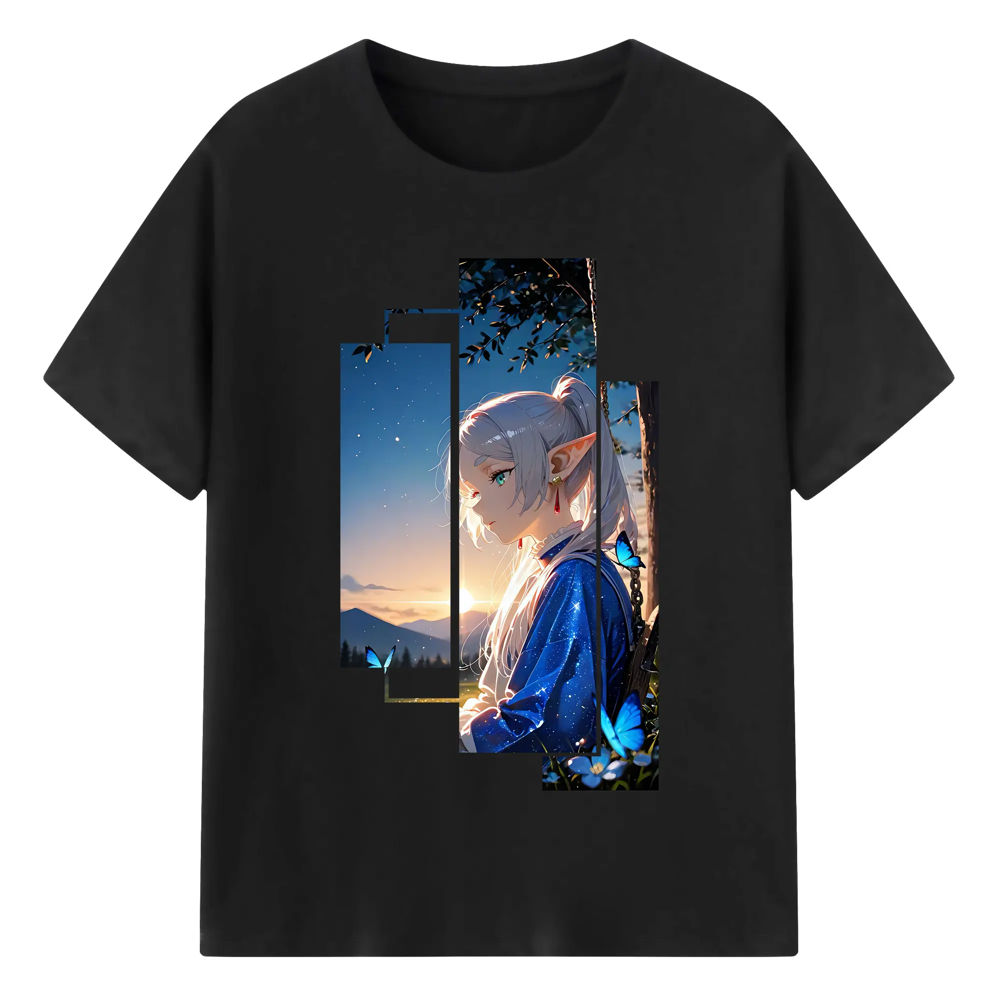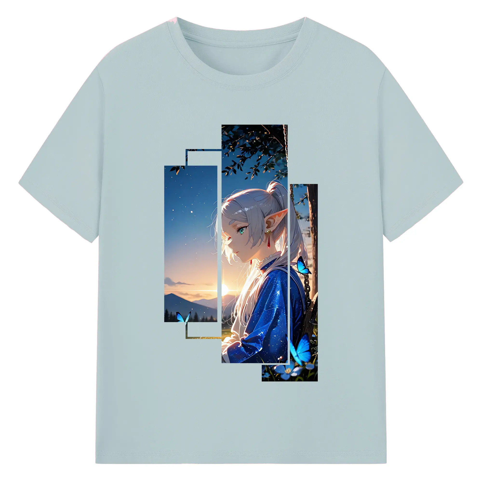 葬送のフリーレン(Frieren) グッズ,フリーレン(Frieren) - 綿100% 半袖Tシャツ ・ バックプリント ・ 快適 通気性 ・ 日常使い 散歩 スポーツ用