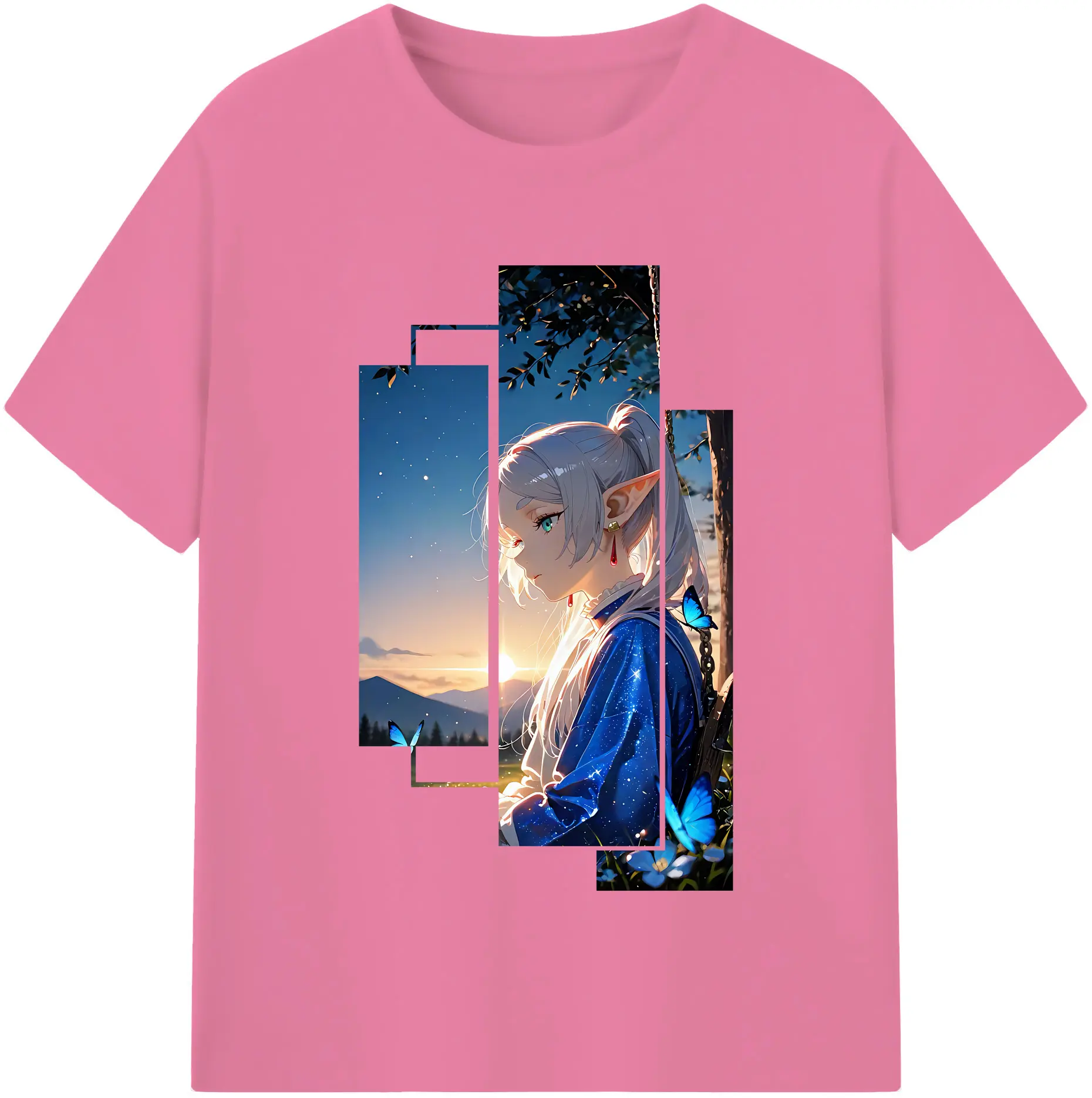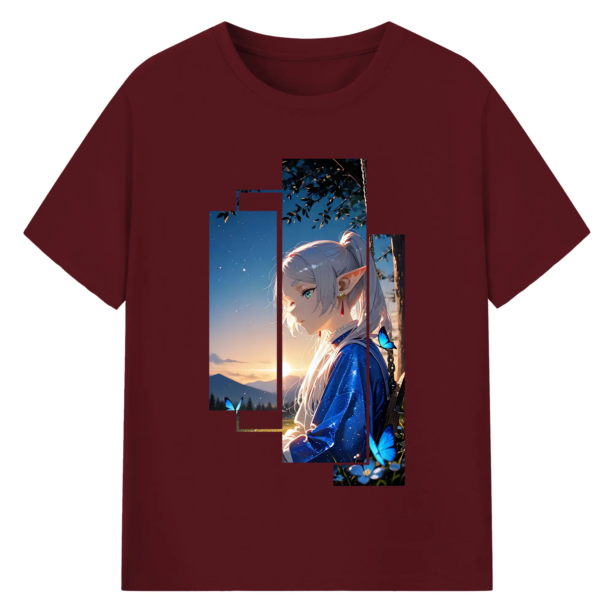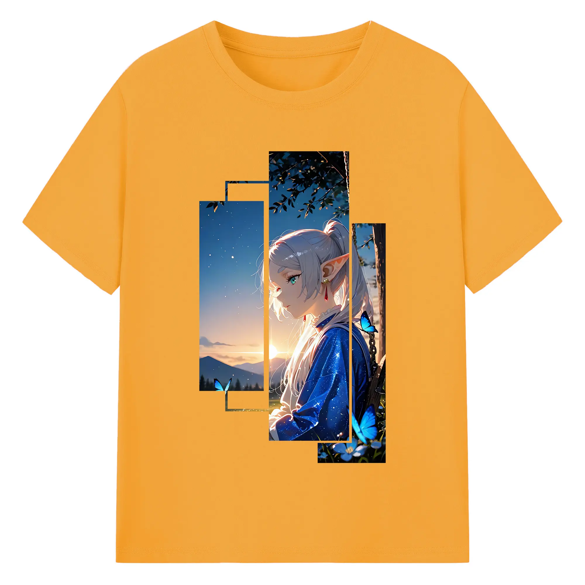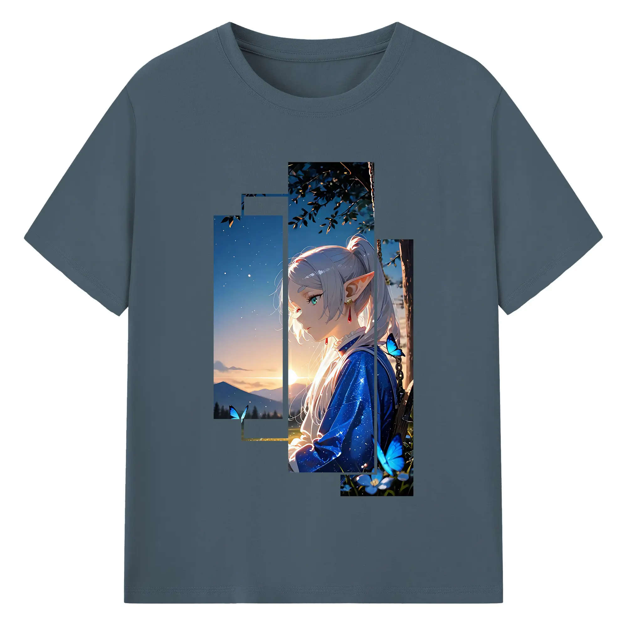 葬送のフリーレン(Frieren) グッズ,フリーレン(Frieren) - 綿100% 半袖Tシャツ ・ バックプリント ・ 快適 通気性 ・ 日常使い 散歩 スポーツ用