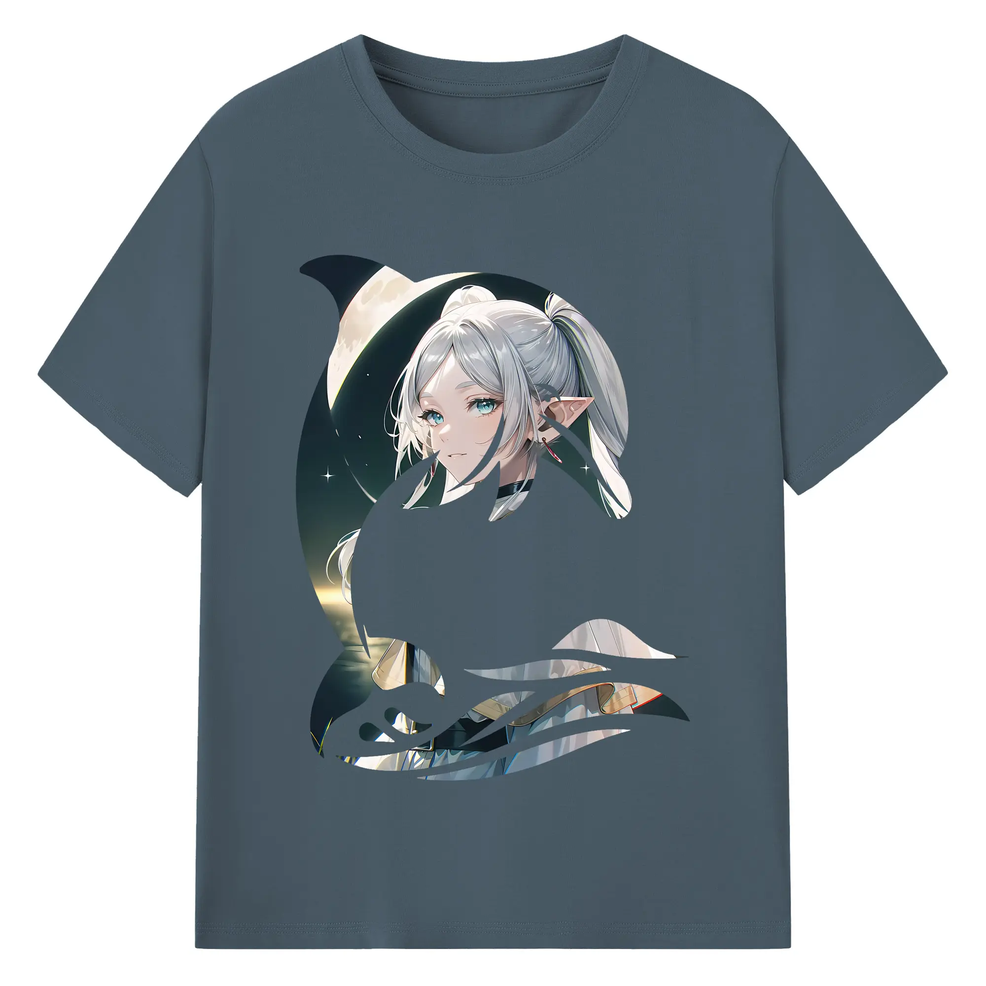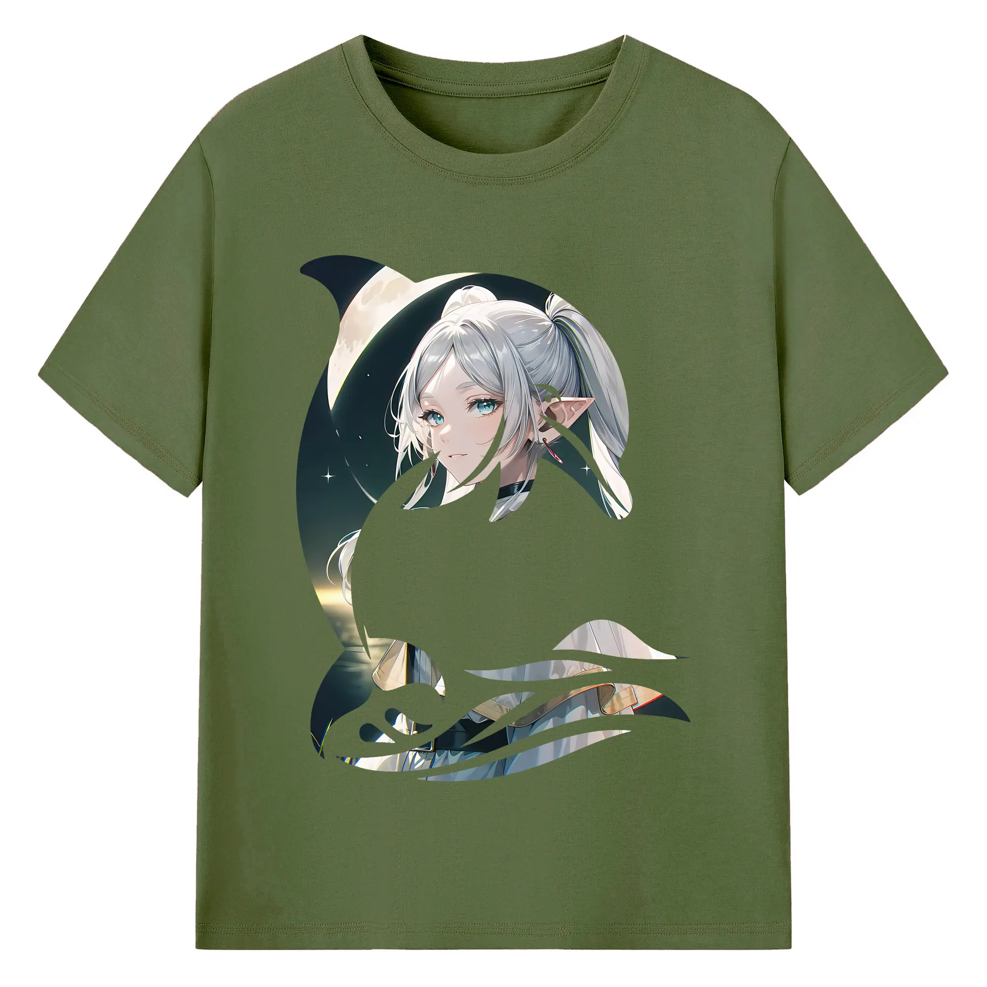 葬送のフリーレン(Frieren) グッズ,フリーレン(Frieren) - 綿100% 半袖Tシャツ ・ バックプリント ・ 快適 通気性 ・ 日常使い 散歩 スポーツ用