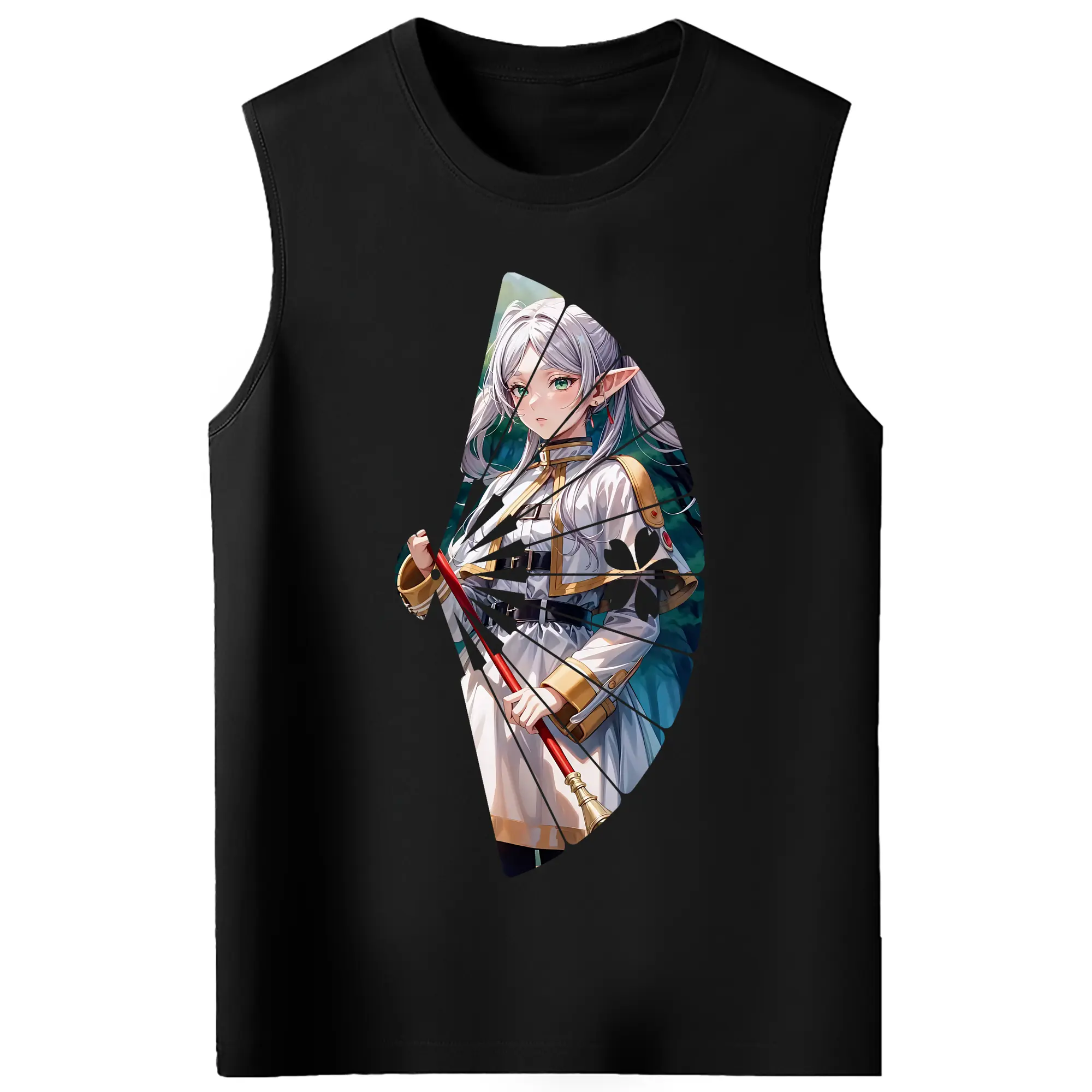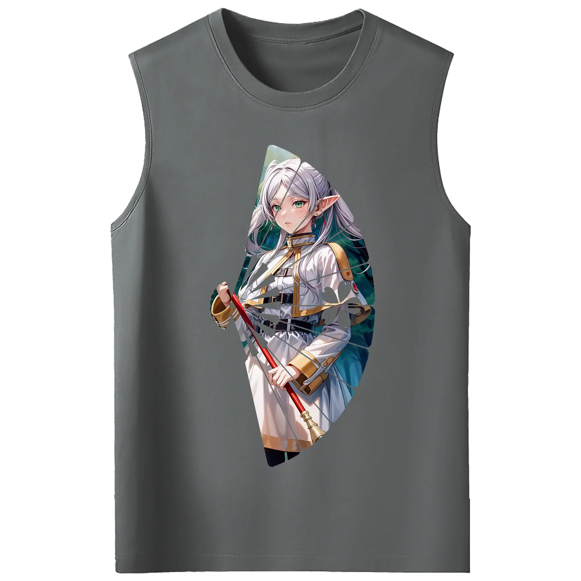 葬送のフリーレン(Frieren) グッズ,フリーレン(Frieren) - コットン100% タンクトップ ・ フロントプリント ・ タイトフィット ・ 快適 通気性 ・ スポーツ カジュアル 散歩用