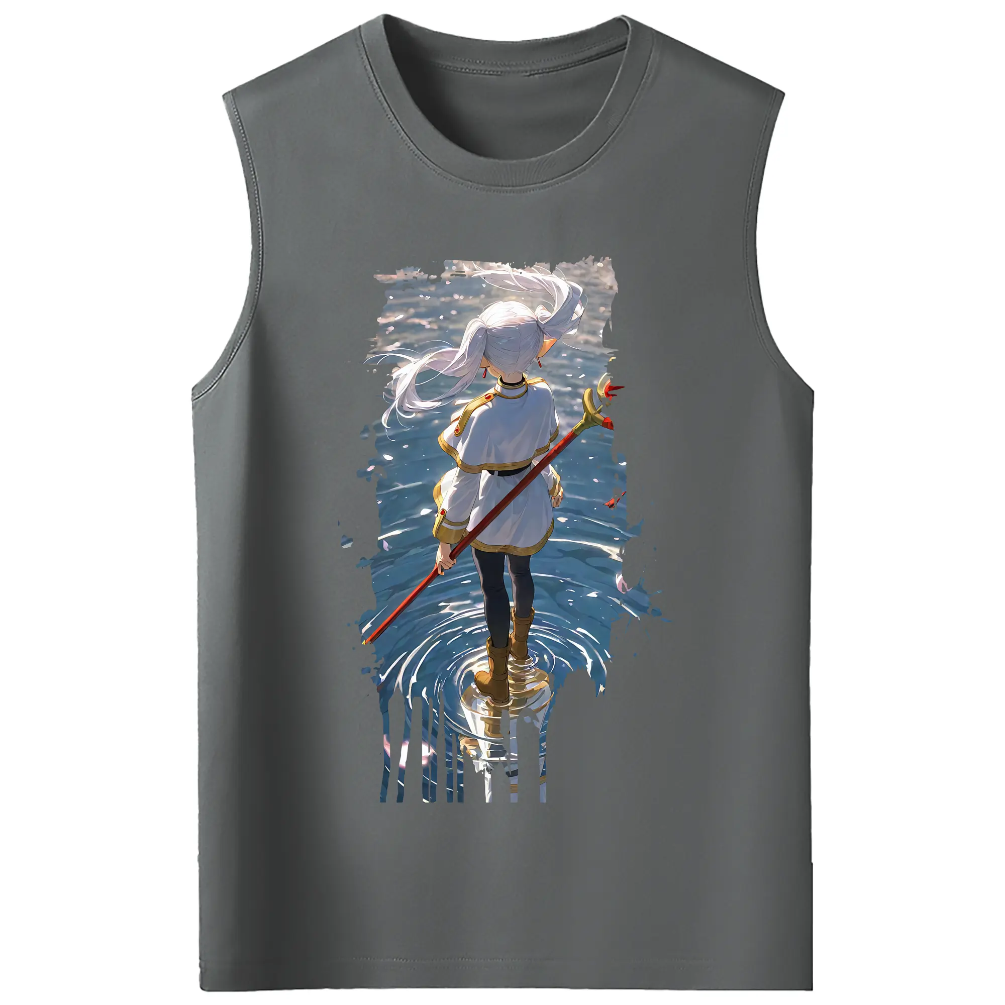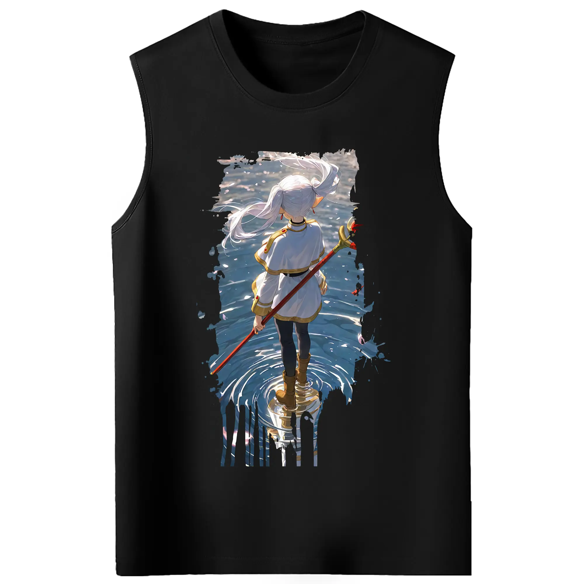 葬送のフリーレン(Frieren) グッズ,フリーレン(Frieren) - コットン100% タンクトップ ・ フロントプリント ・ タイトフィット ・ 快適 通気性 ・ スポーツ カジュアル 散歩用
