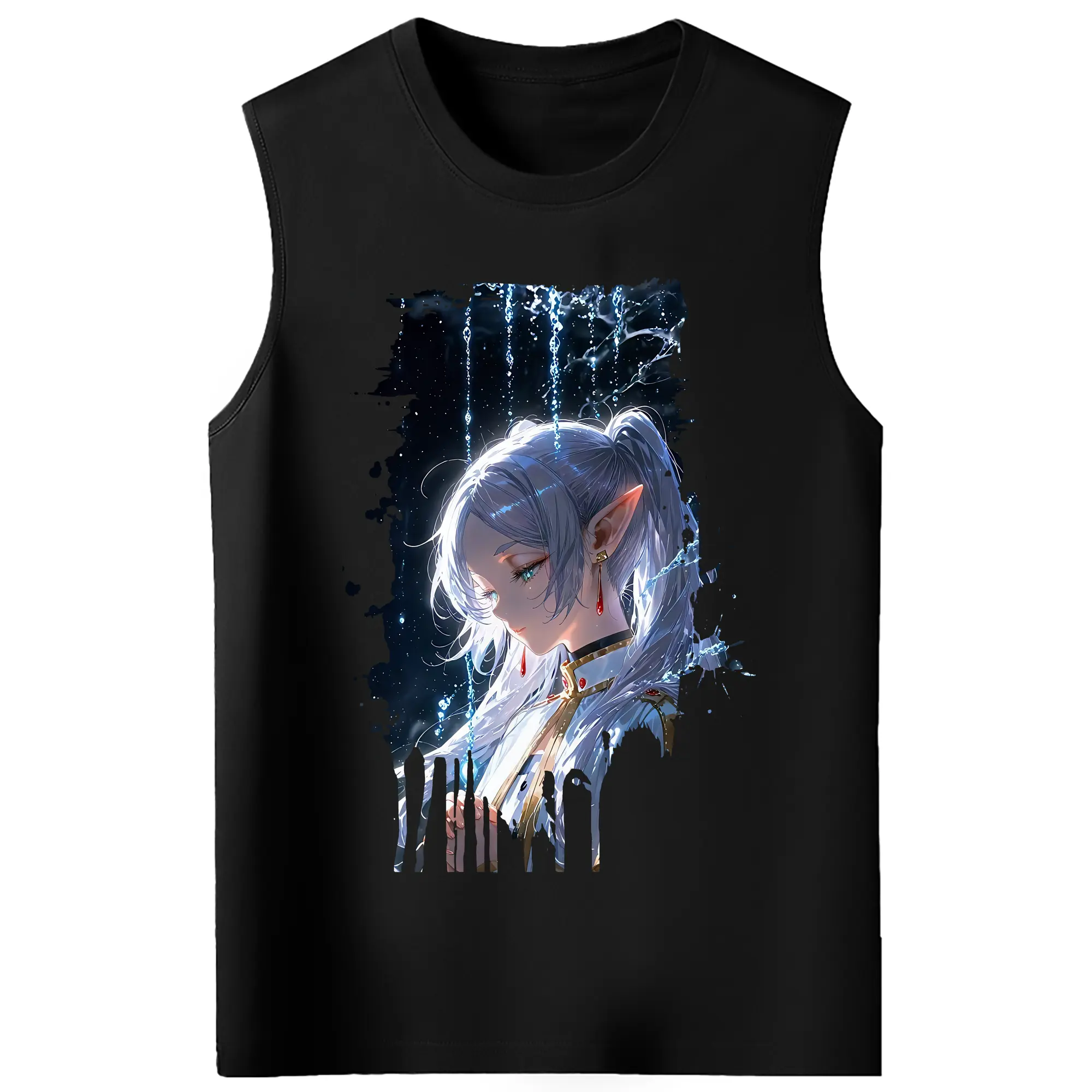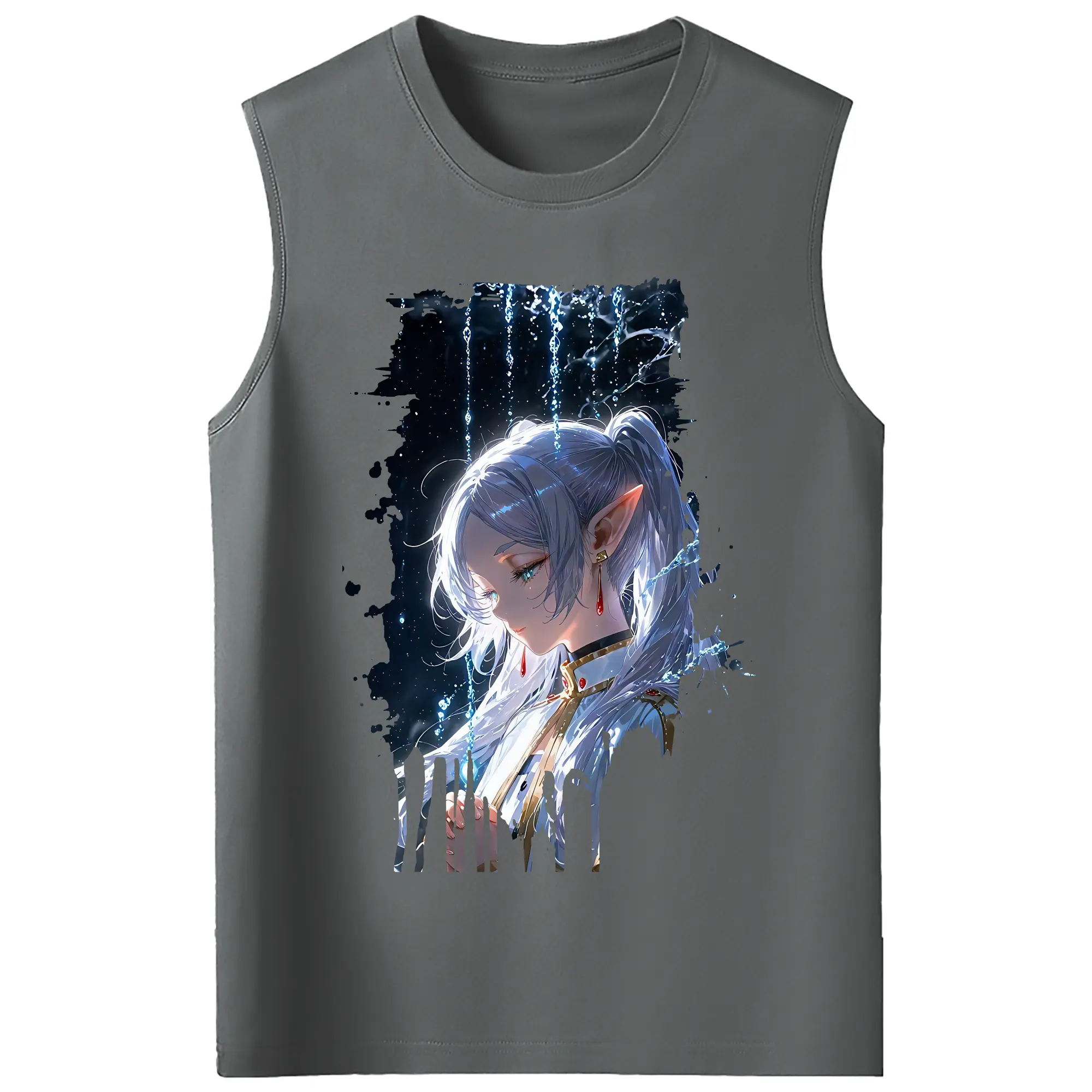 葬送のフリーレン(Frieren) グッズ,フリーレン(Frieren) - コットン100% タンクトップ ・ フロントプリント ・ タイトフィット ・ 快適 通気性 ・ スポーツ カジュアル 散歩用