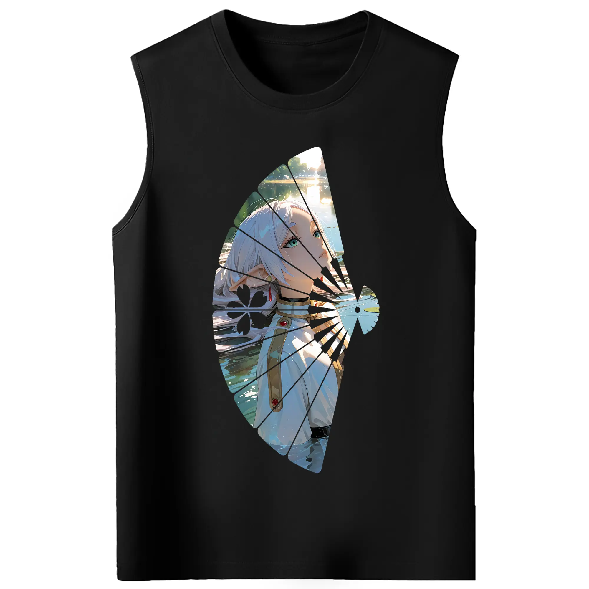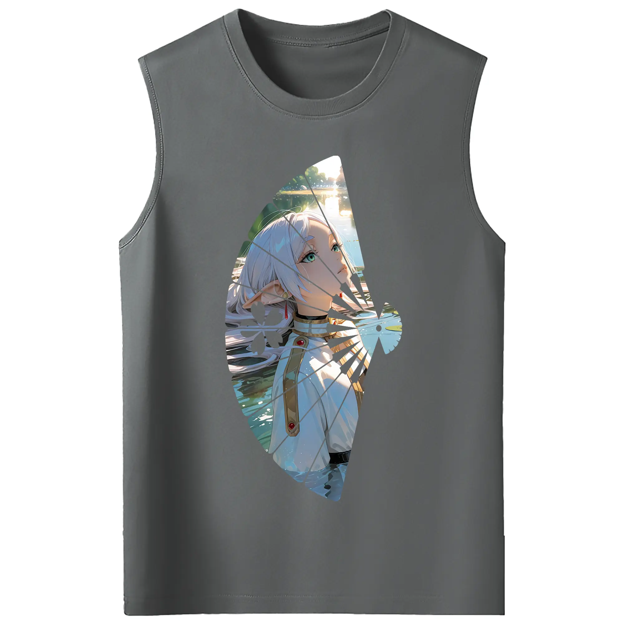 葬送のフリーレン(Frieren) グッズ,フリーレン(Frieren) - コットン100% タンクトップ ・ フロントプリント ・ タイトフィット ・ 快適 通気性 ・ スポーツ カジュアル 散歩用