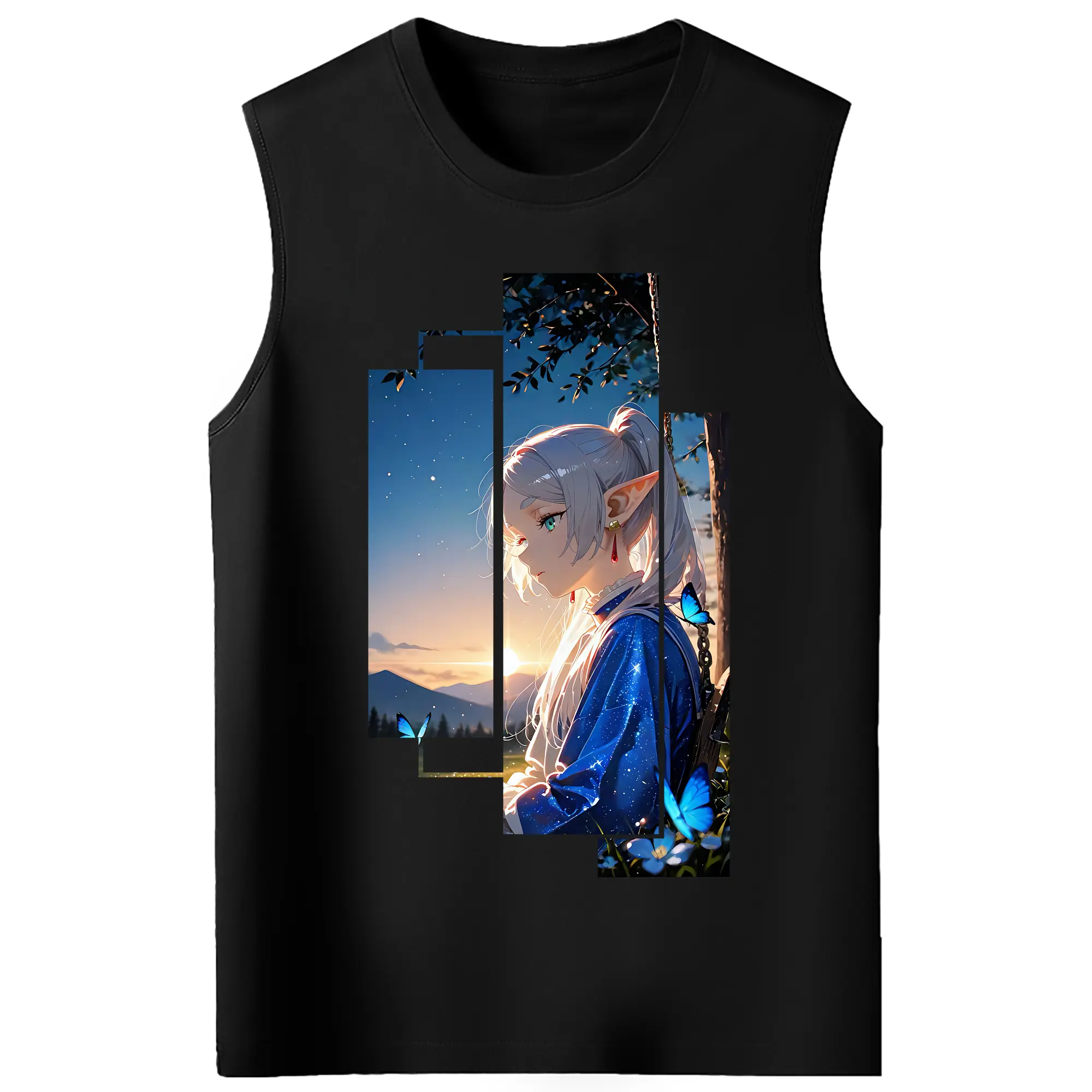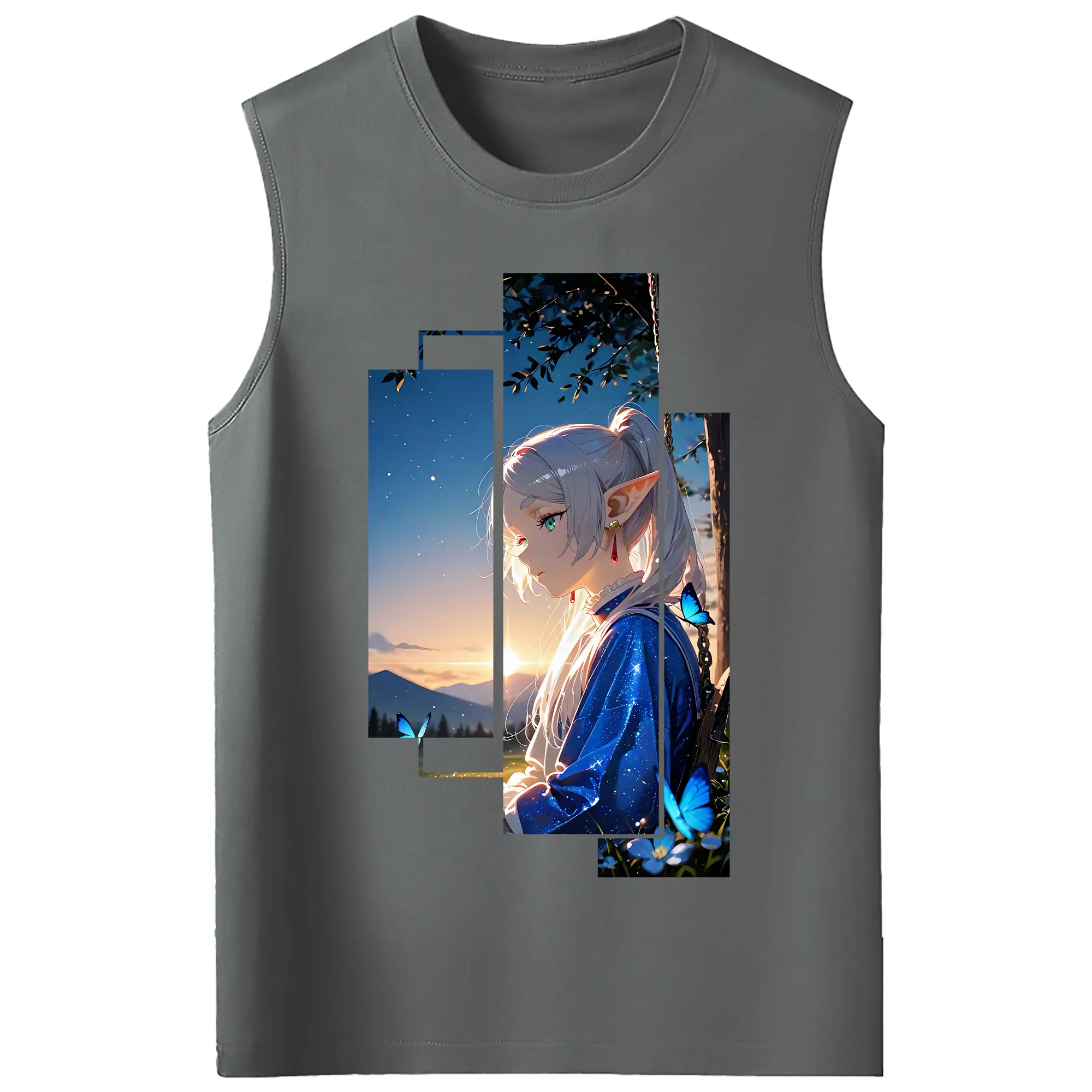 葬送のフリーレン(Frieren) グッズ,フリーレン(Frieren) - コットン100% タンクトップ ・ フロントプリント ・ タイトフィット ・ 快適 通気性 ・ スポーツ カジュアル 散歩用