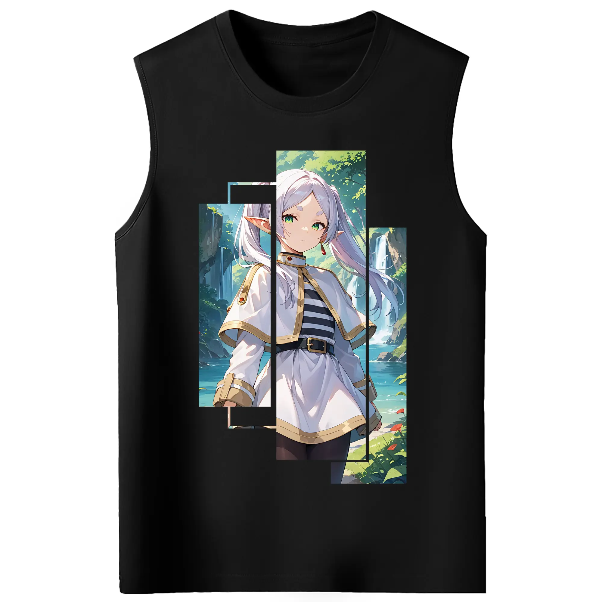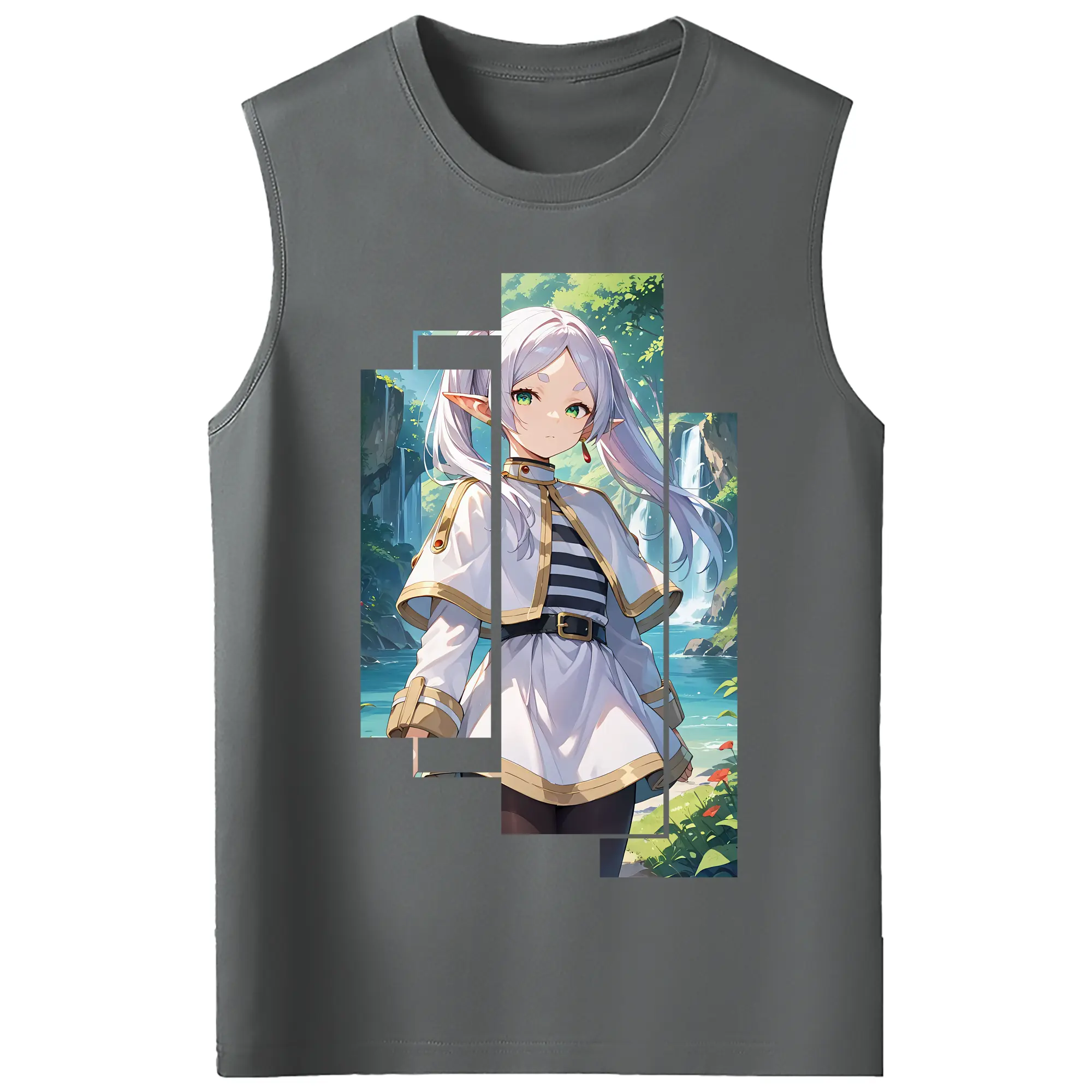 葬送のフリーレン(Frieren) グッズ,フリーレン(Frieren) - コットン100% タンクトップ ・ フロントプリント ・ タイトフィット ・ 快適 通気性 ・ スポーツ カジュアル 散歩用