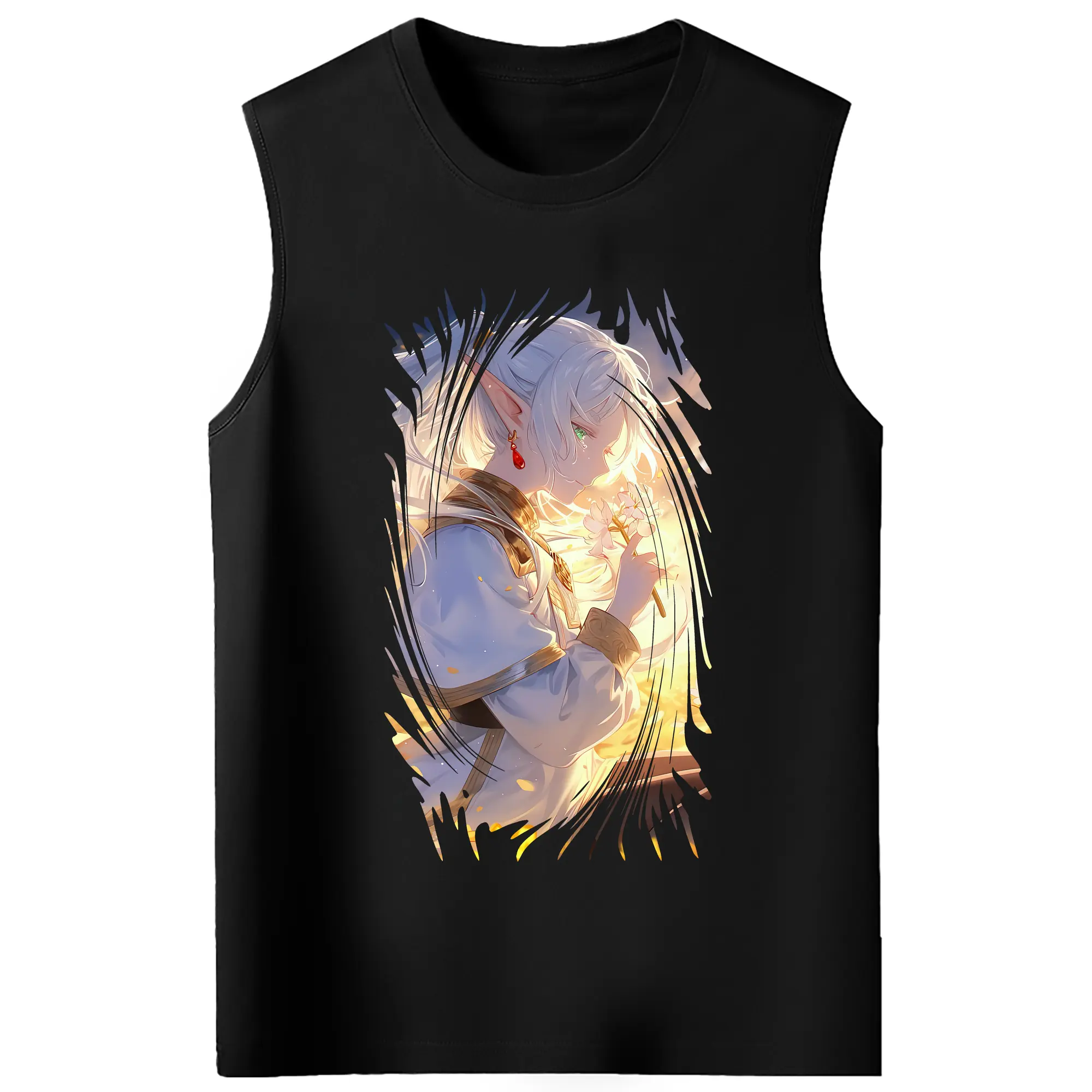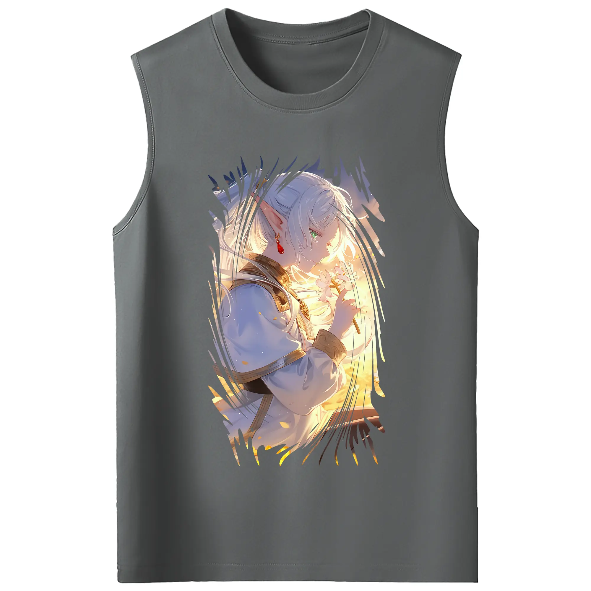 葬送のフリーレン(Frieren) グッズ,フリーレン(Frieren) - コットン100% タンクトップ ・ フロントプリント ・ タイトフィット ・ 快適 通気性 ・ スポーツ カジュアル 散歩用
