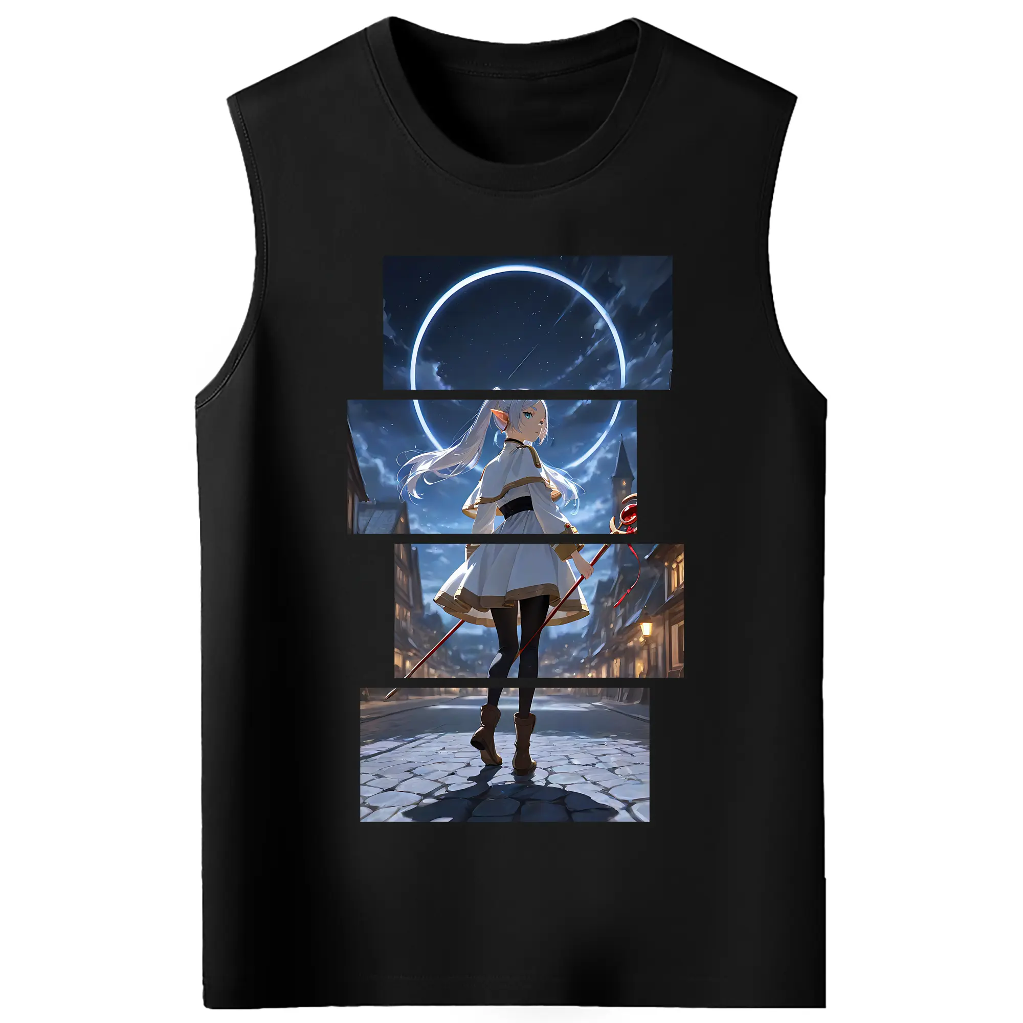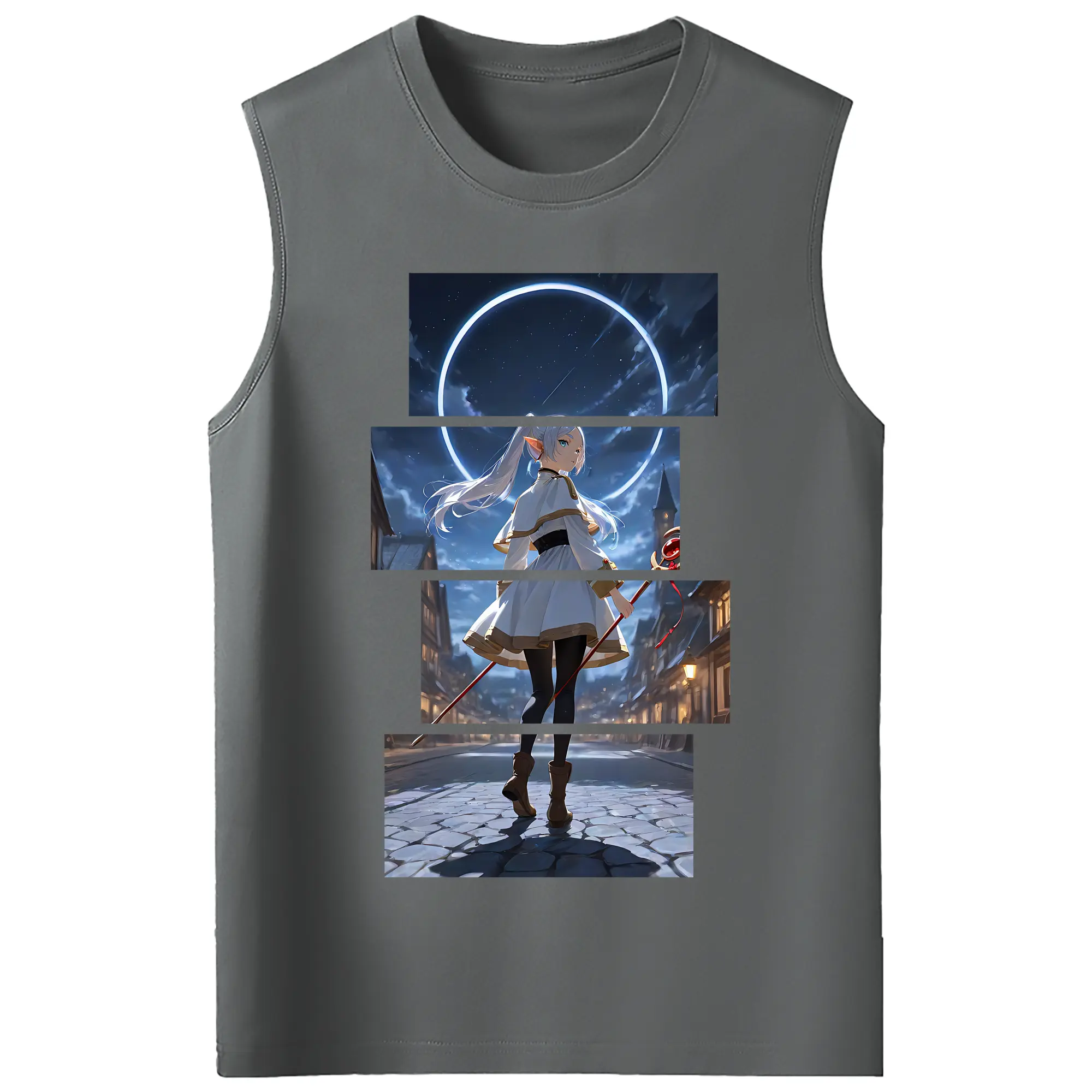葬送のフリーレン(Frieren) グッズ,フリーレン(Frieren) - コットン100% タンクトップ ・ フロントプリント ・ タイトフィット ・ 快適 通気性 ・ スポーツ カジュアル 散歩用