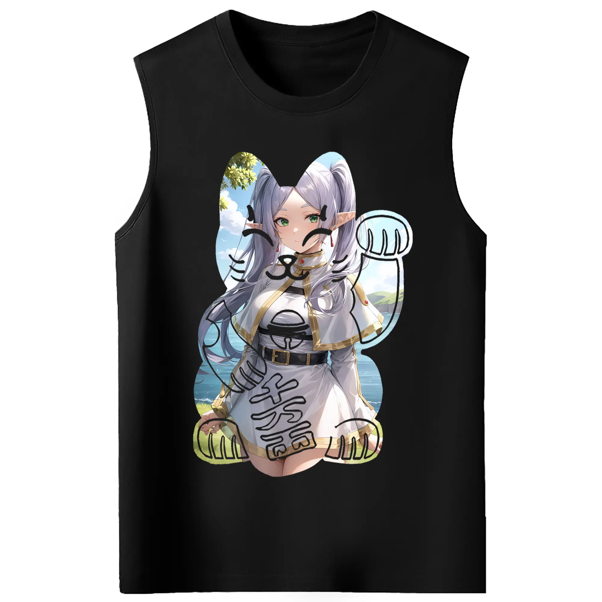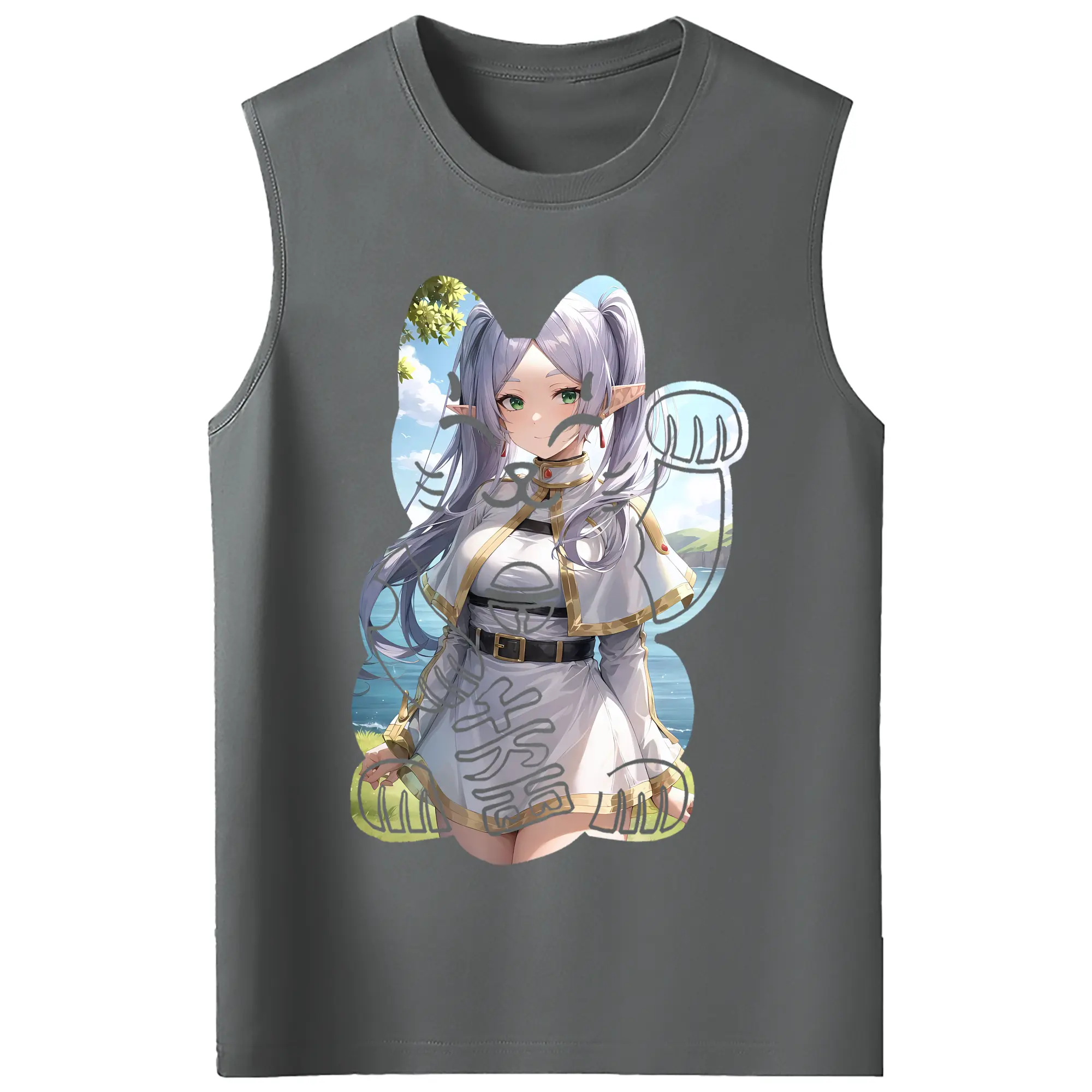 葬送のフリーレン(Frieren) グッズ,フリーレン(Frieren) - コットン100% タンクトップ ・ フロントプリント ・ タイトフィット ・ 快適 通気性 ・ スポーツ カジュアル 散歩用