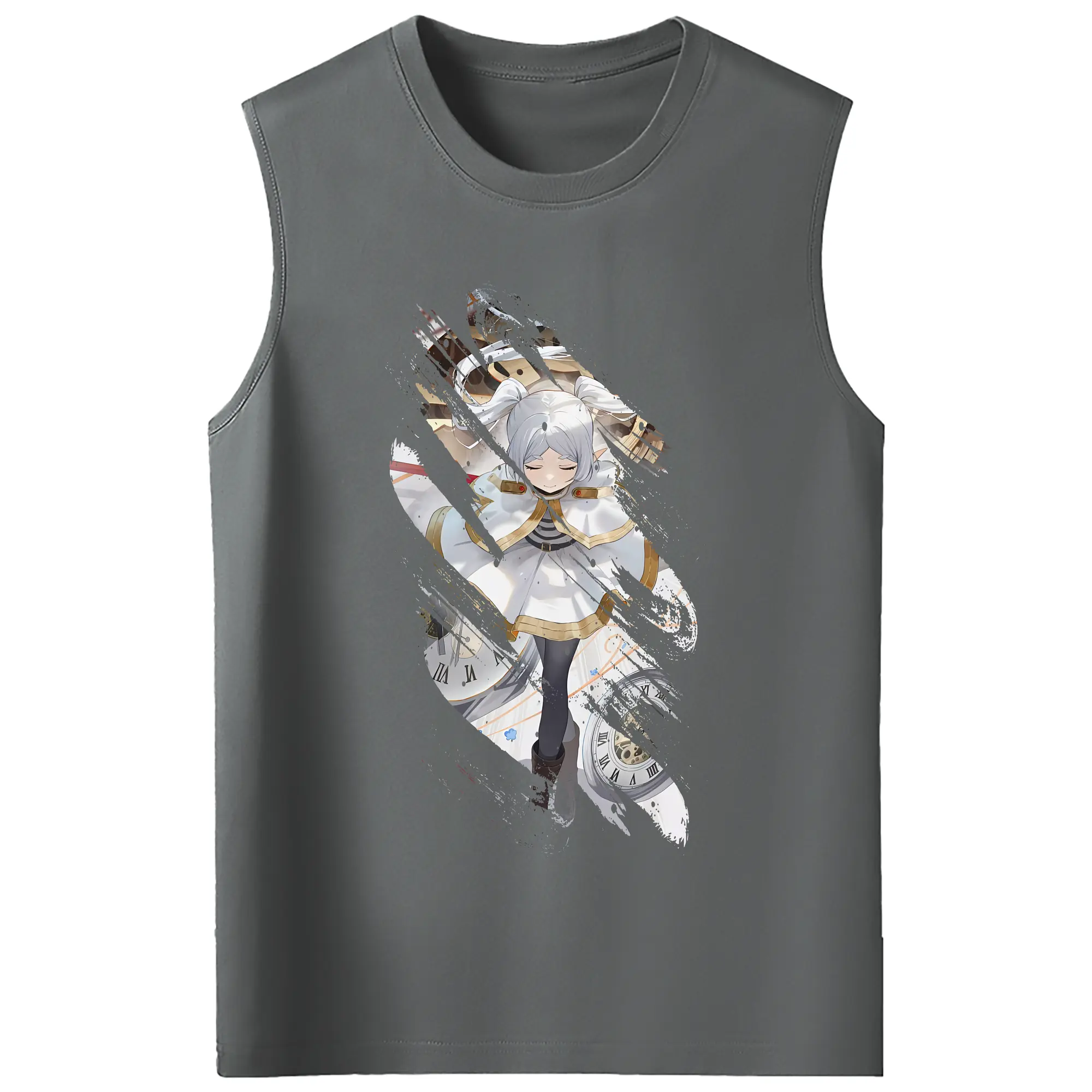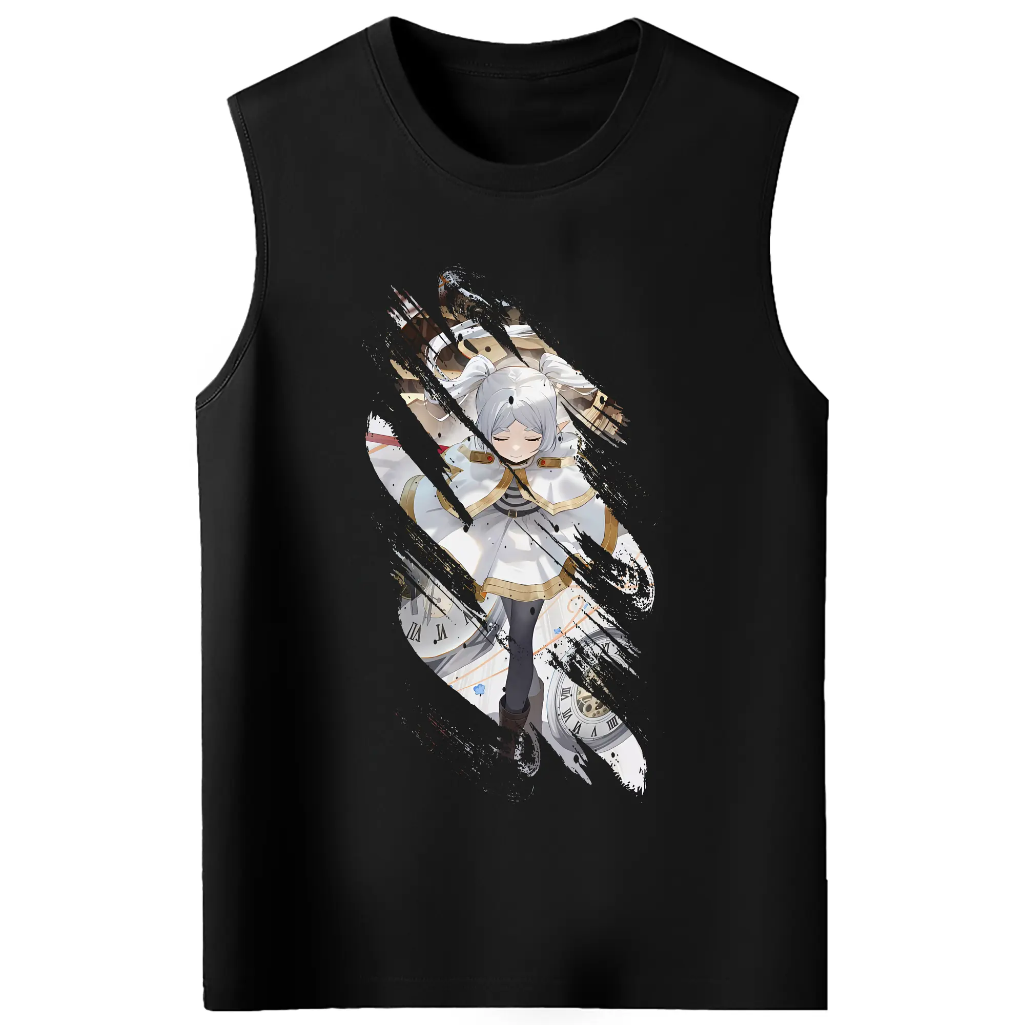 葬送のフリーレン(Frieren) グッズ,フリーレン(Frieren) - コットン100% タンクトップ ・ フロントプリント ・ タイトフィット ・ 快適 通気性 ・ スポーツ カジュアル 散歩用