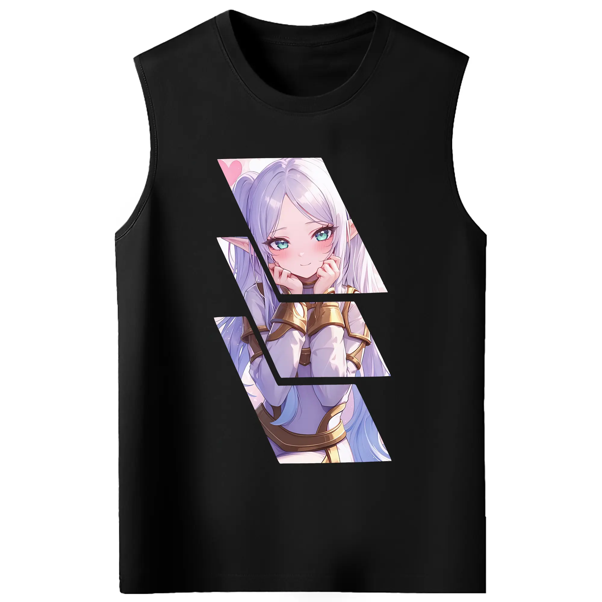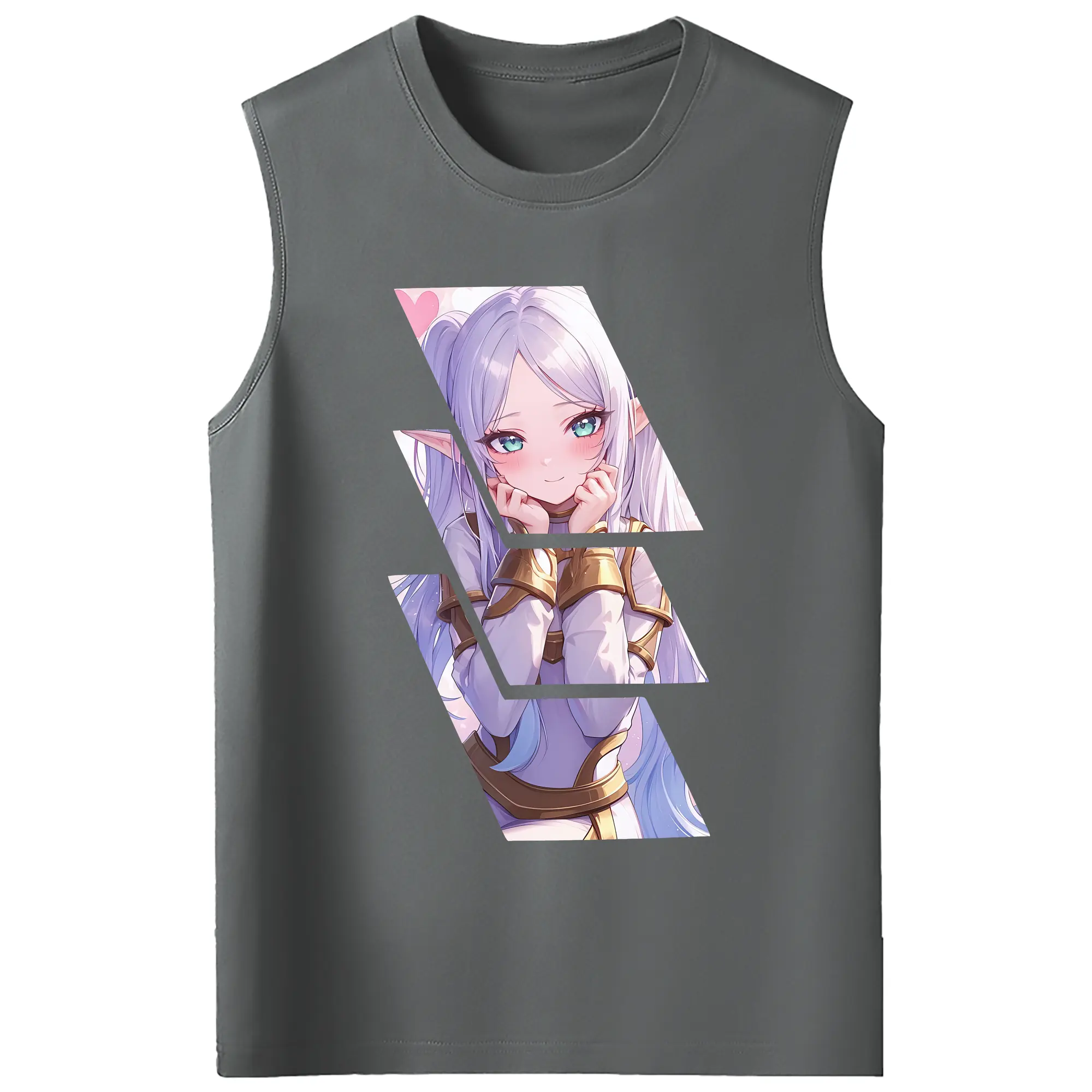 葬送のフリーレン(Frieren) グッズ,フリーレン(Frieren) - コットン100% タンクトップ ・ フロントプリント ・ タイトフィット ・ 快適 通気性 ・ スポーツ カジュアル 散歩用