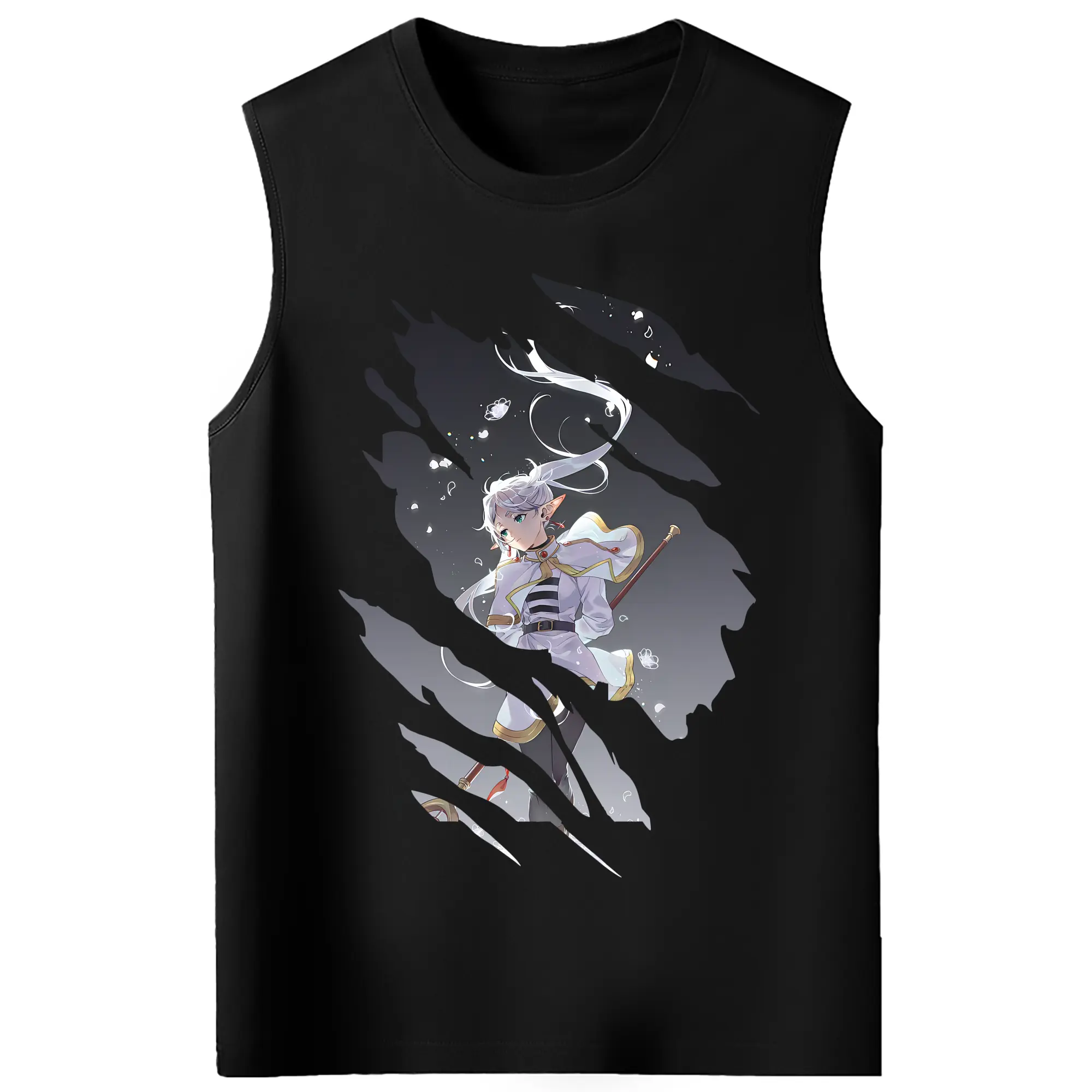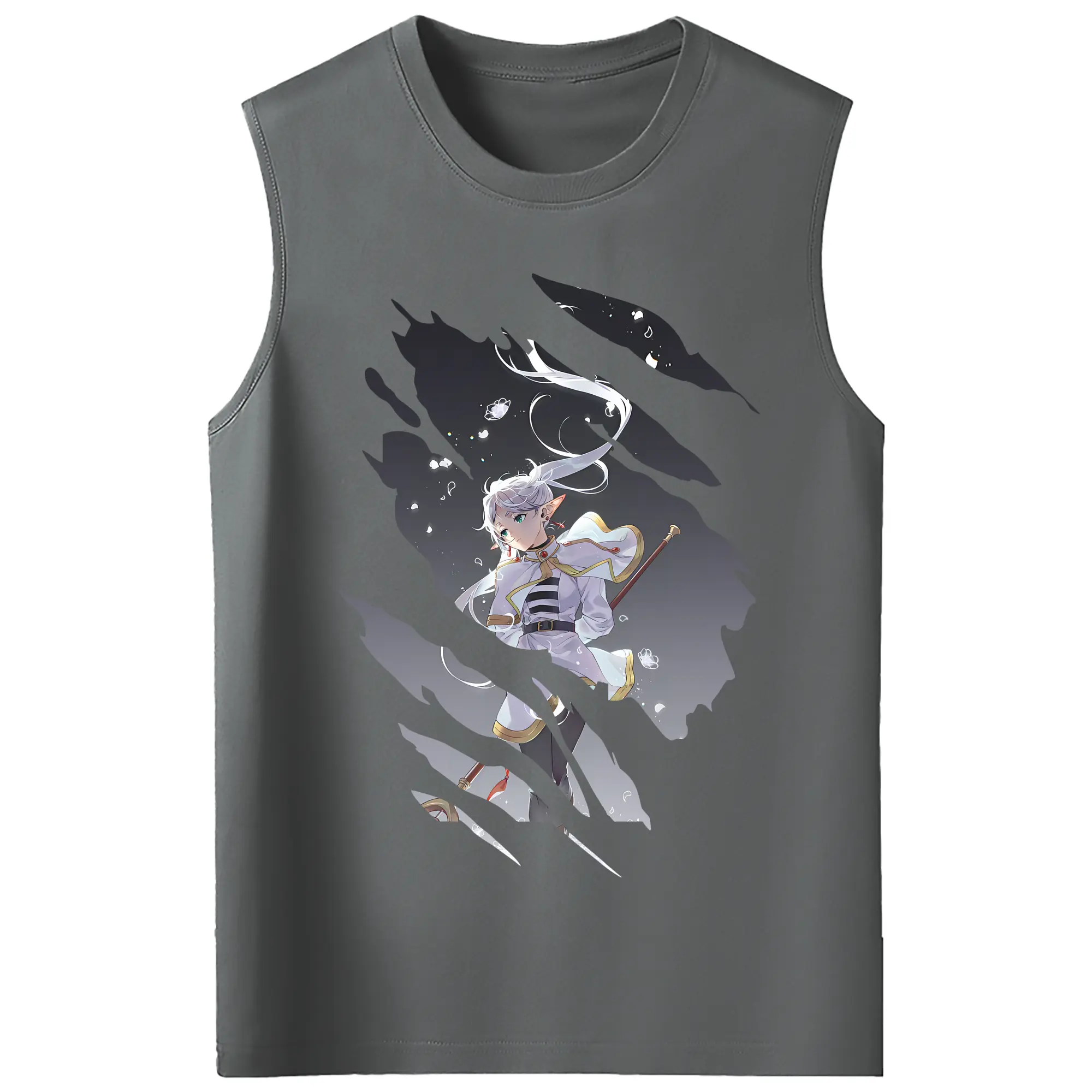 葬送のフリーレン(Frieren) グッズ,フリーレン(Frieren) - コットン100% タンクトップ ・ フロントプリント ・ タイトフィット ・ 快適 通気性 ・ スポーツ カジュアル 散歩用