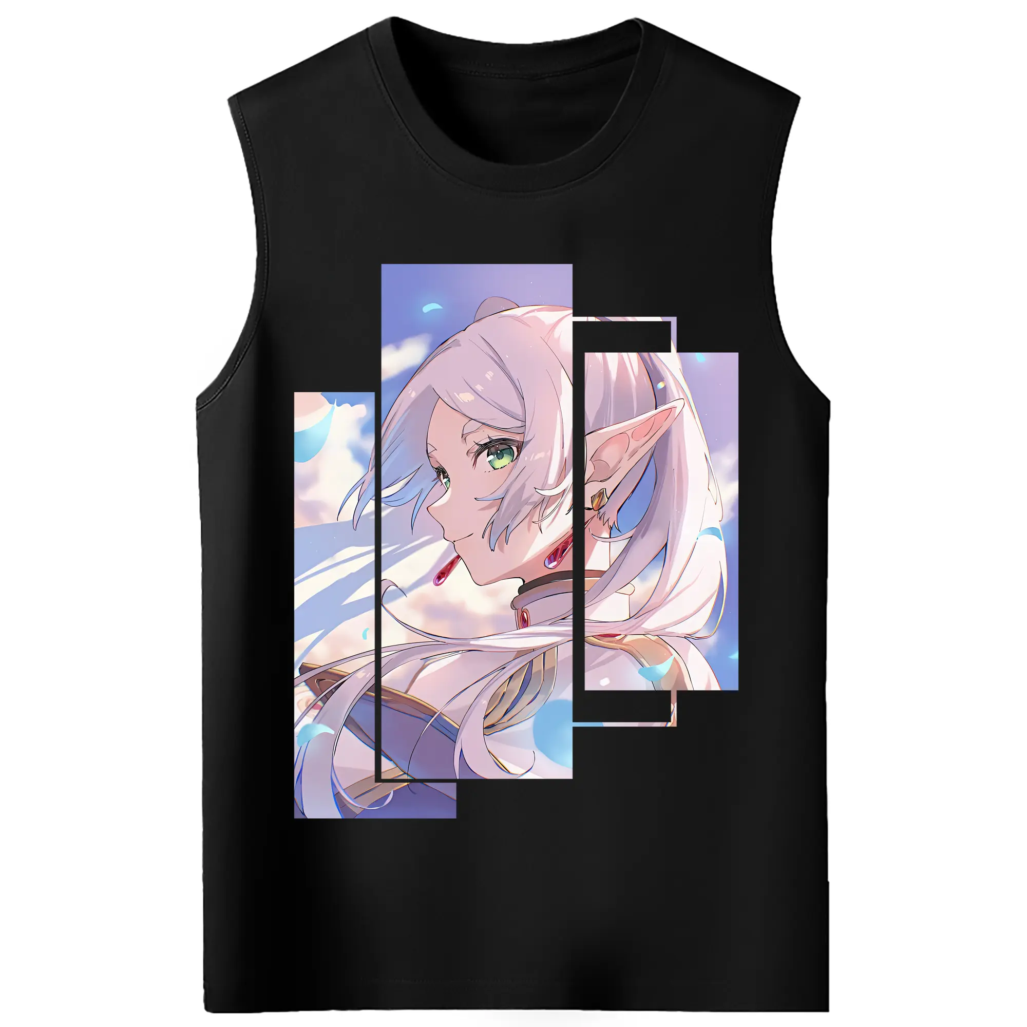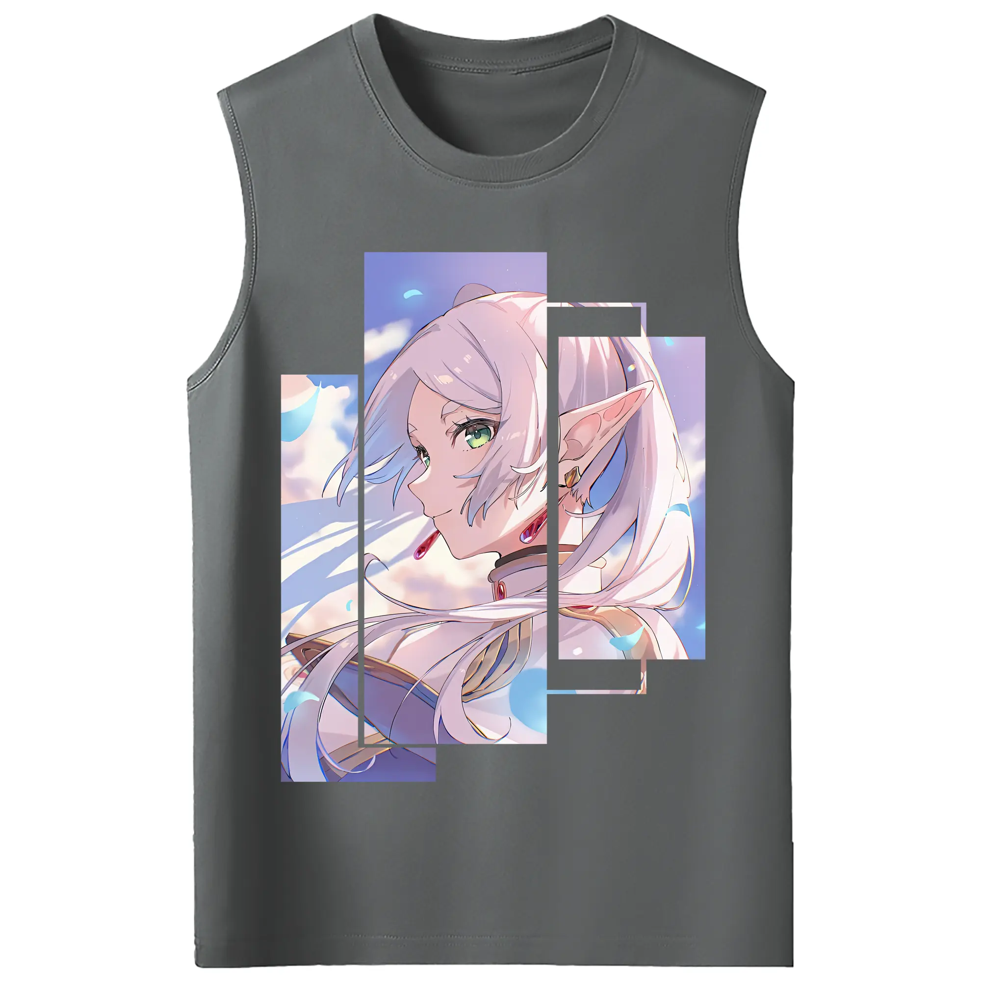 葬送のフリーレン(Frieren) グッズ,フリーレン(Frieren) - コットン100% タンクトップ ・ フロントプリント ・ タイトフィット ・ 快適 通気性 ・ スポーツ カジュアル 散歩用