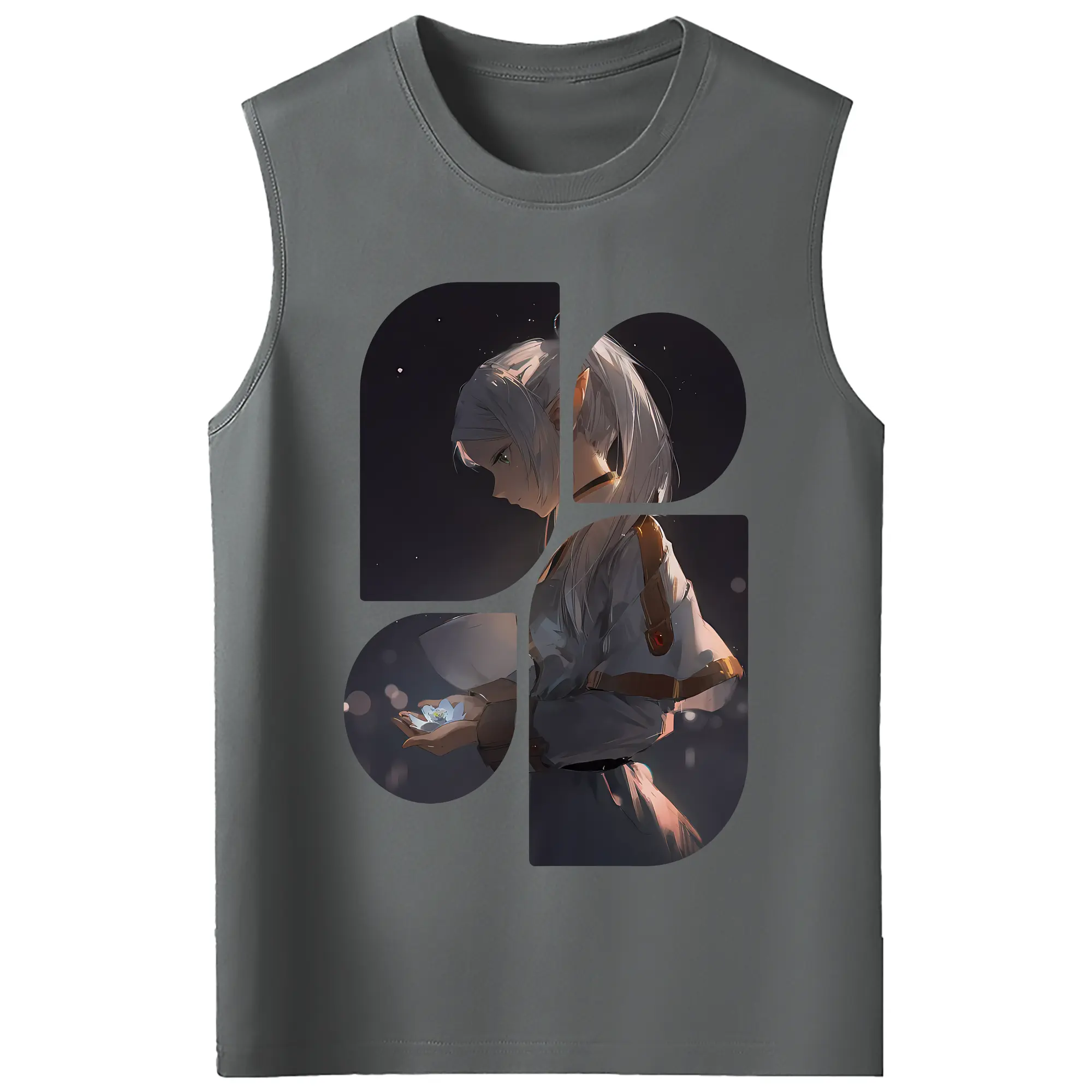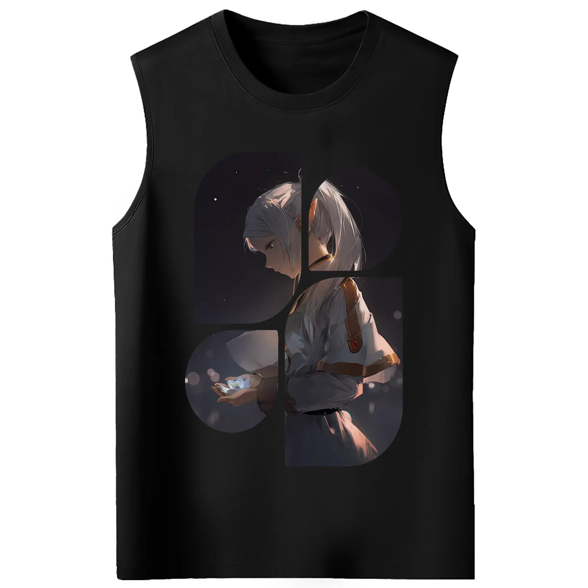 葬送のフリーレン(Frieren) グッズ,フリーレン(Frieren) - コットン100% タンクトップ ・ フロントプリント ・ タイトフィット ・ 快適 通気性 ・ スポーツ カジュアル 散歩用