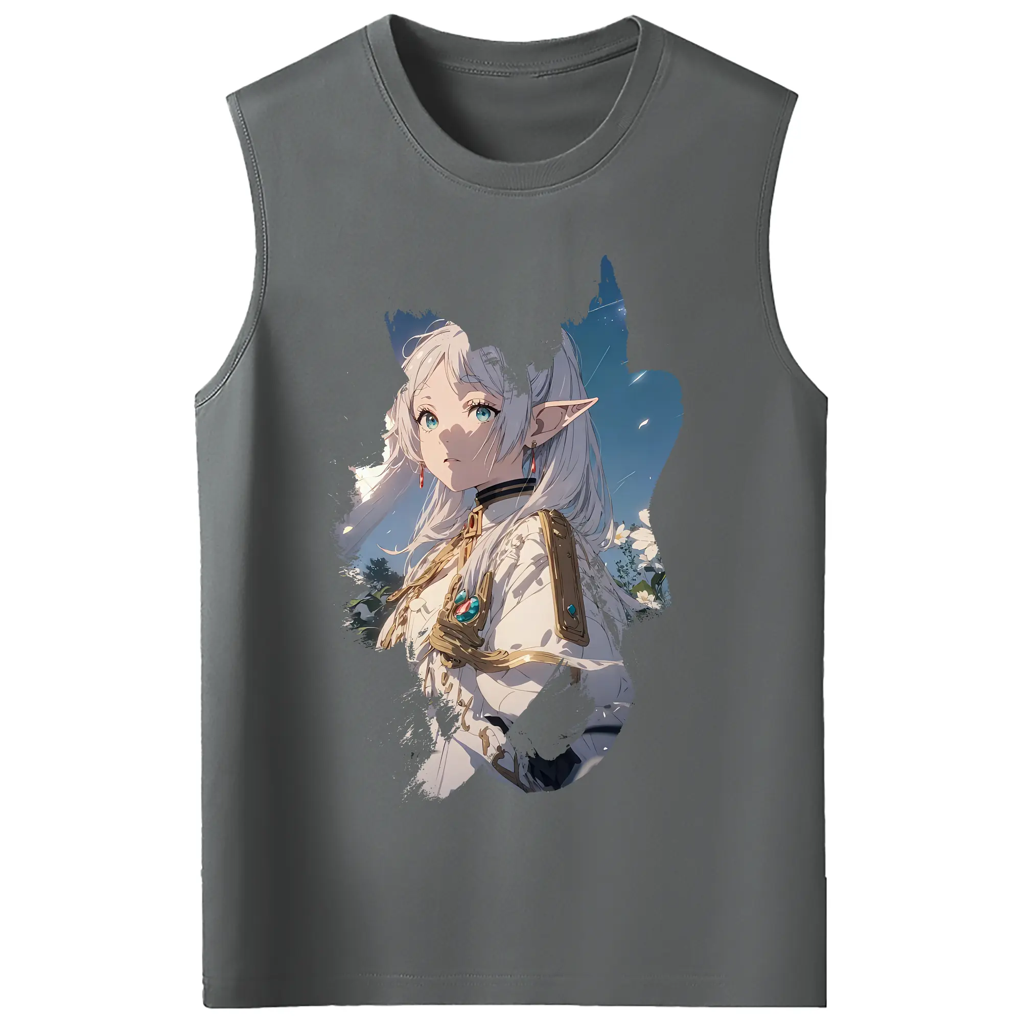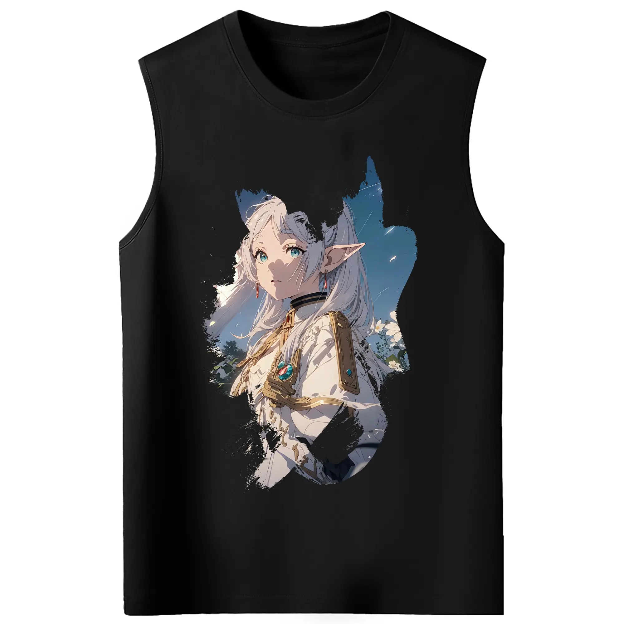 葬送のフリーレン(Frieren) グッズ,フリーレン(Frieren) - コットン100% タンクトップ ・ フロントプリント ・ タイトフィット ・ 快適 通気性 ・ スポーツ カジュアル 散歩用