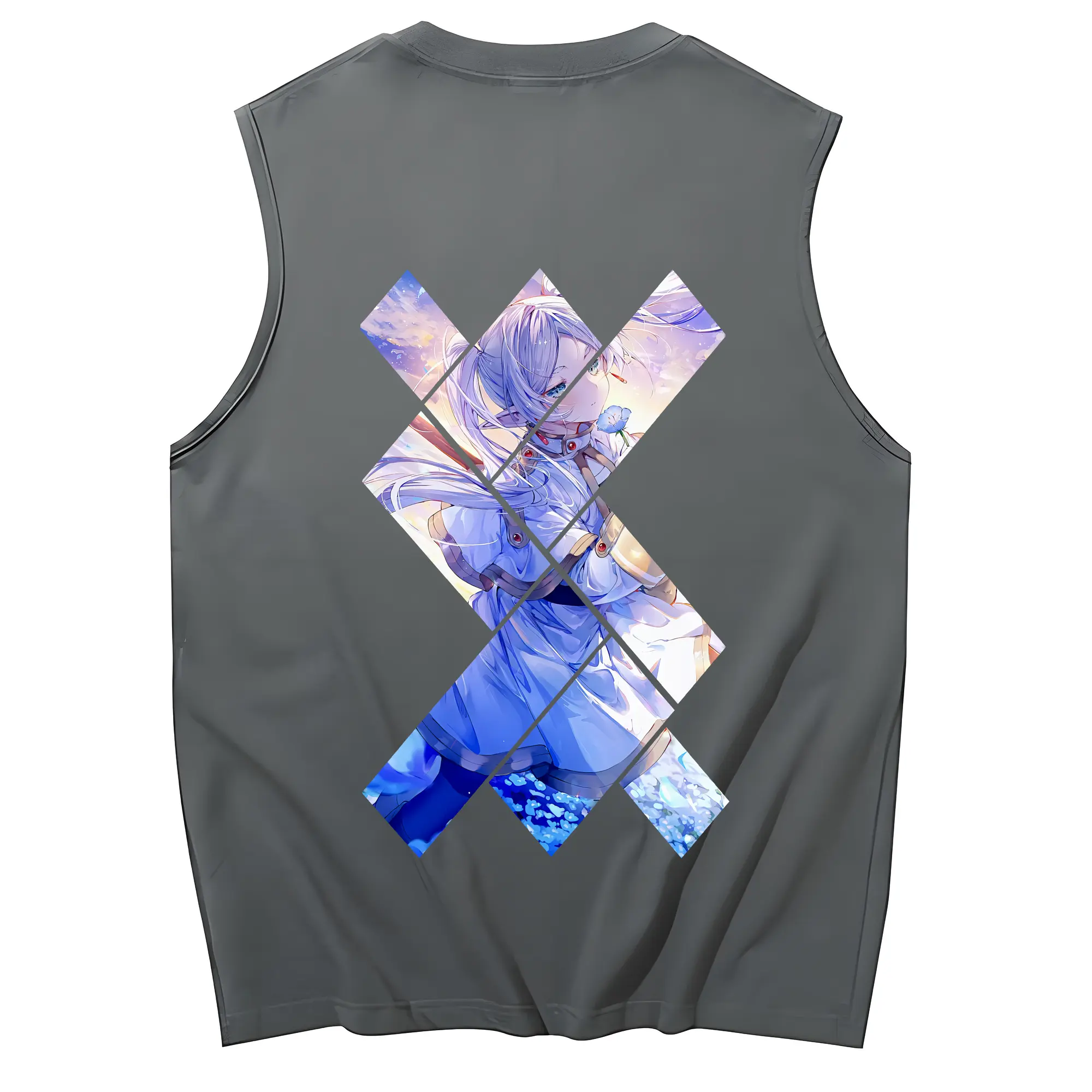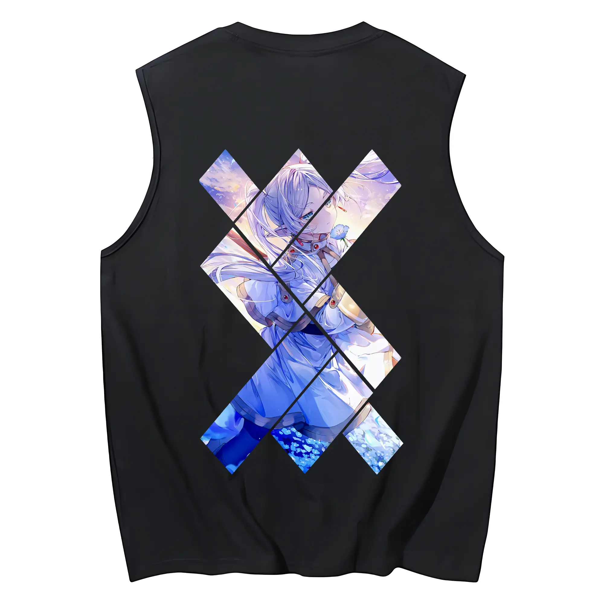 葬送のフリーレン(Frieren) グッズ,フリーレン(Frieren) - コットン100% タンクトップ ・ 背面プリント ・ タイトシルエット ・ 快適 通気性 ・ スポーツ カジュアル 散歩用