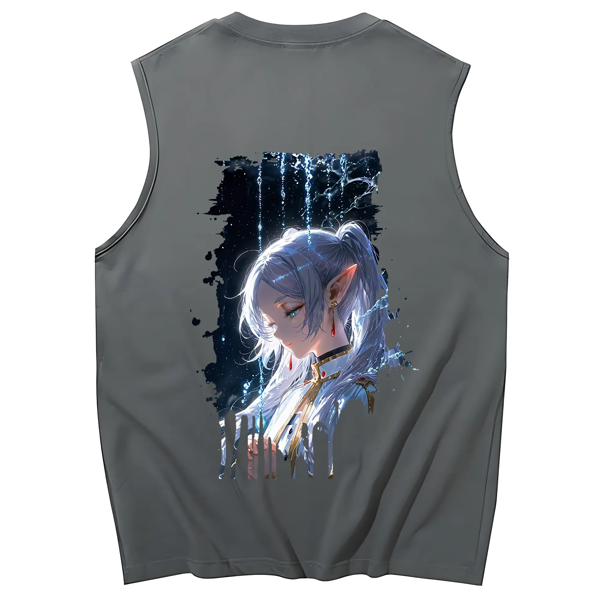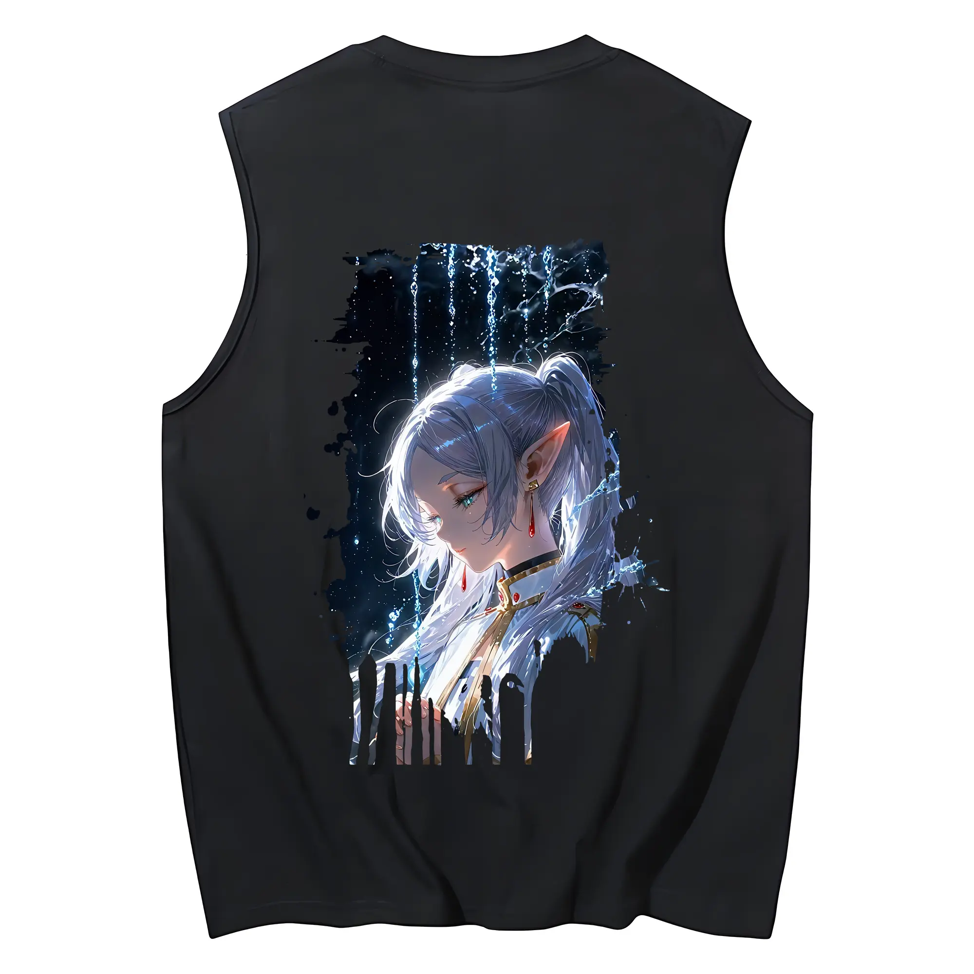 葬送のフリーレン(Frieren) グッズ,フリーレン(Frieren) - コットン100% タンクトップ ・ 背面プリント ・ タイトシルエット ・ 快適 通気性 ・ スポーツ カジュアル 散歩用