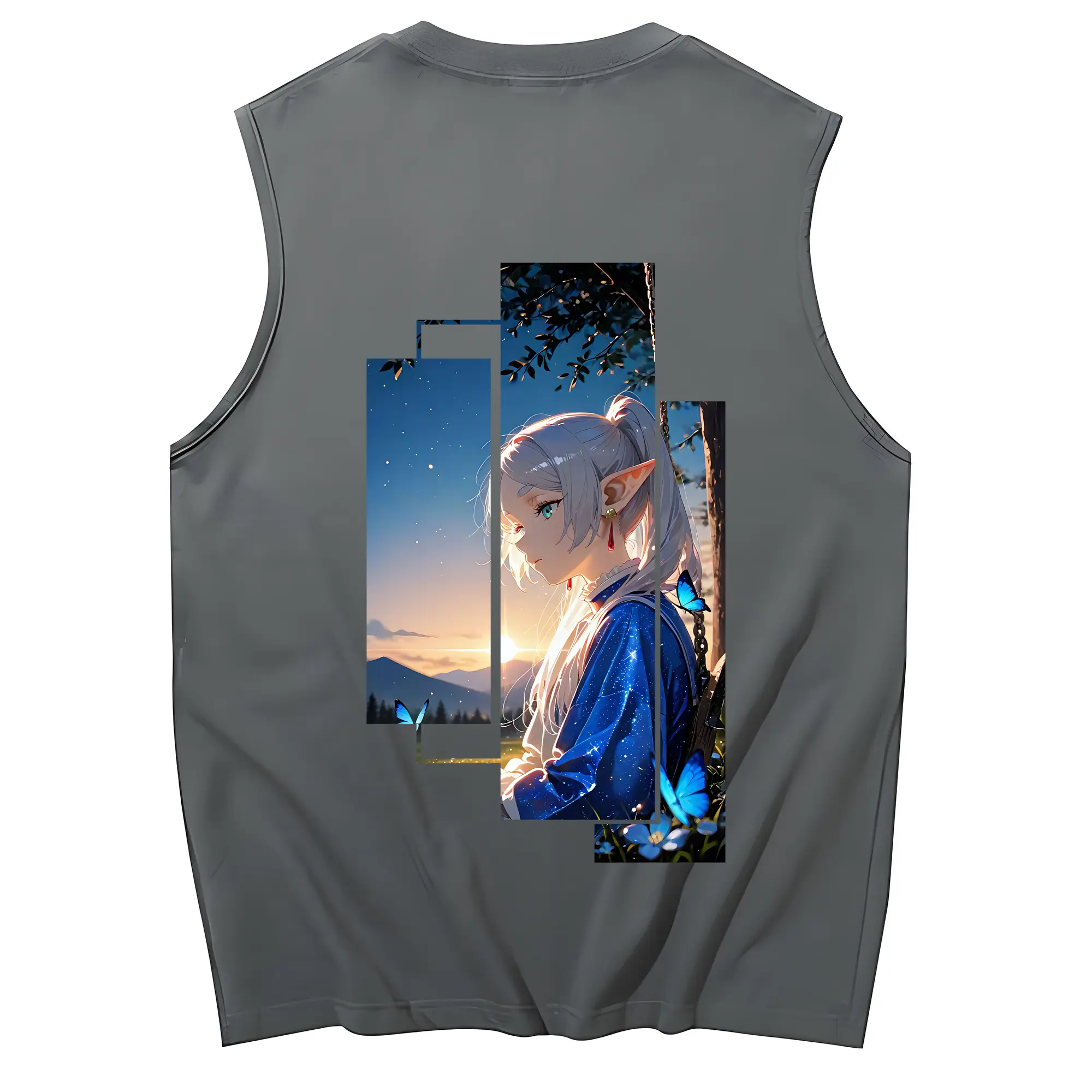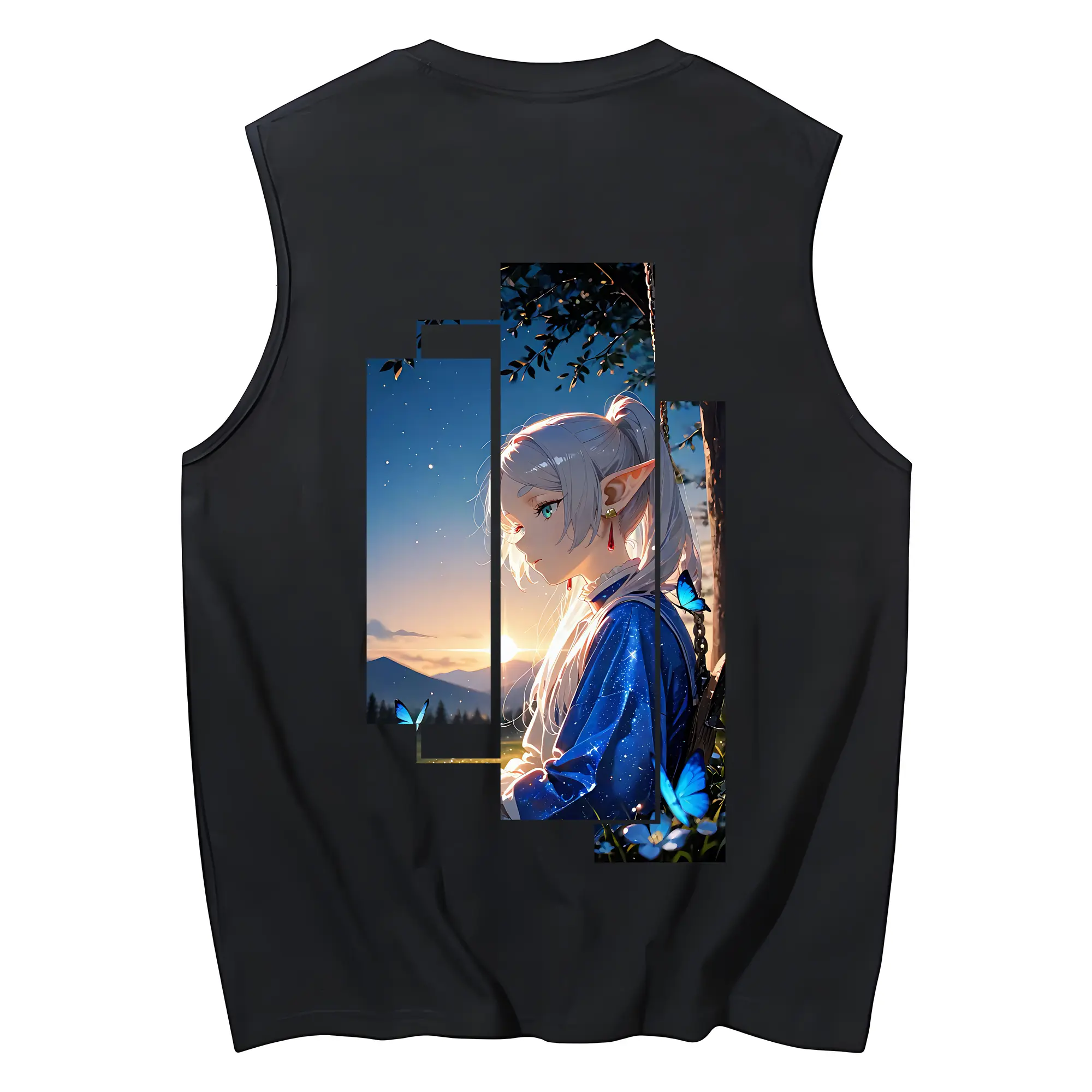 葬送のフリーレン(Frieren) グッズ,フリーレン(Frieren) - コットン100% タンクトップ ・ 背面プリント ・ タイトシルエット ・ 快適 通気性 ・ スポーツ カジュアル 散歩用