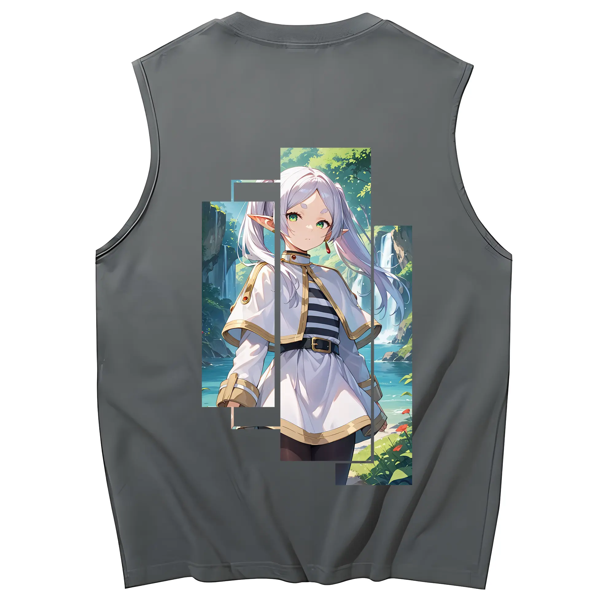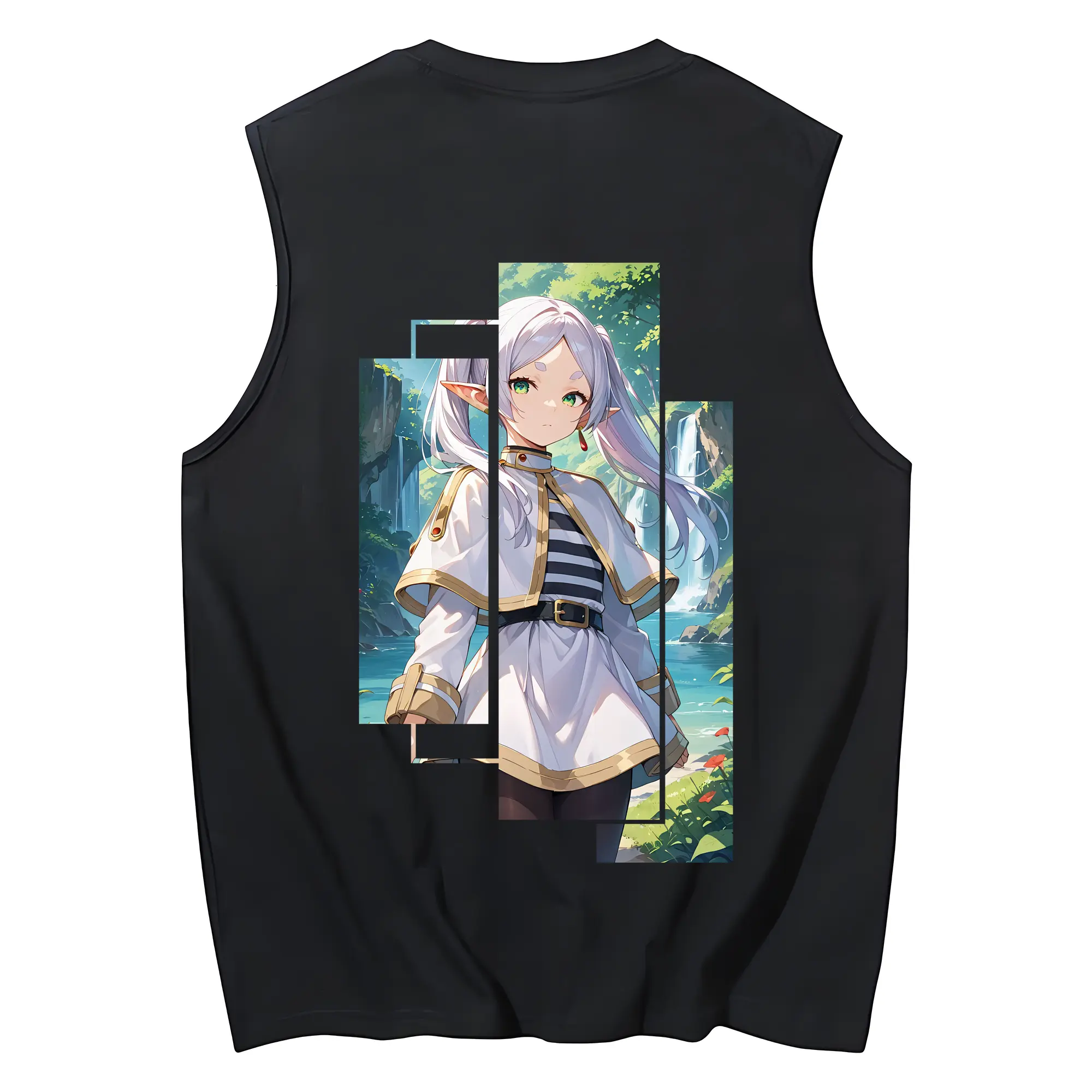 葬送のフリーレン(Frieren) グッズ,フリーレン(Frieren) - コットン100% タンクトップ ・ 背面プリント ・ タイトシルエット ・ 快適 通気性 ・ スポーツ カジュアル 散歩用
