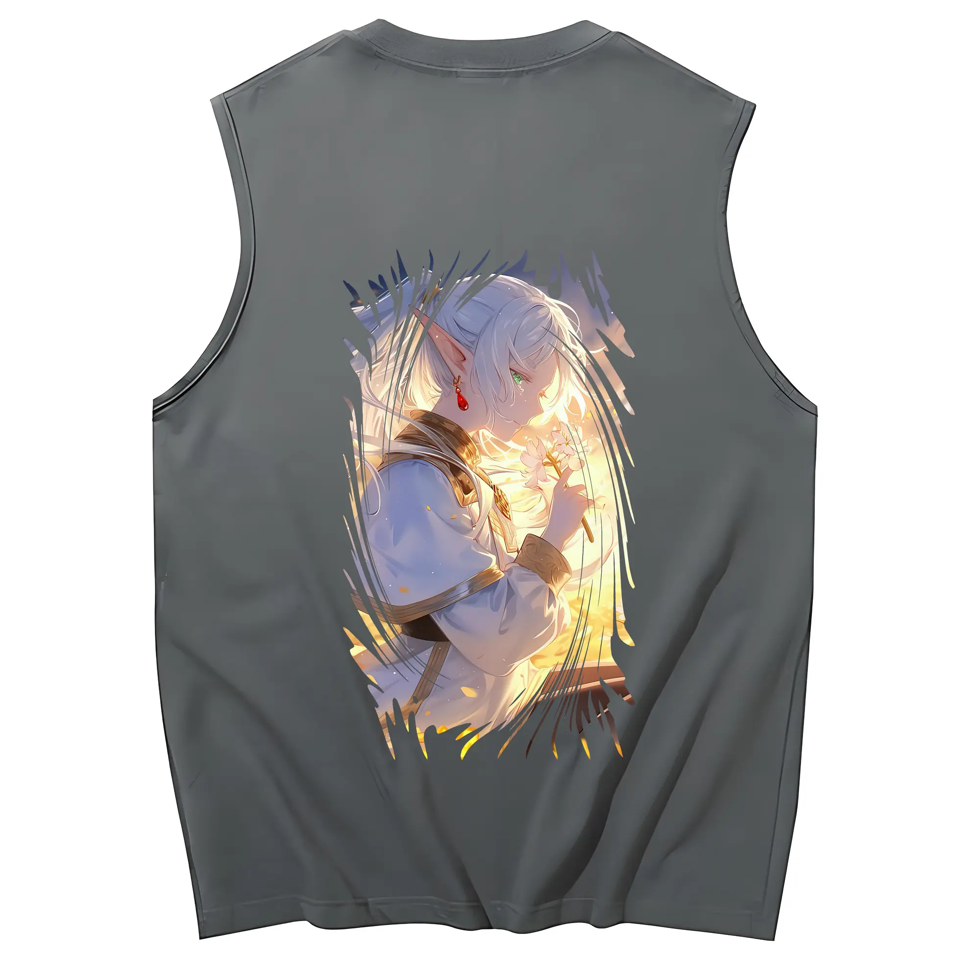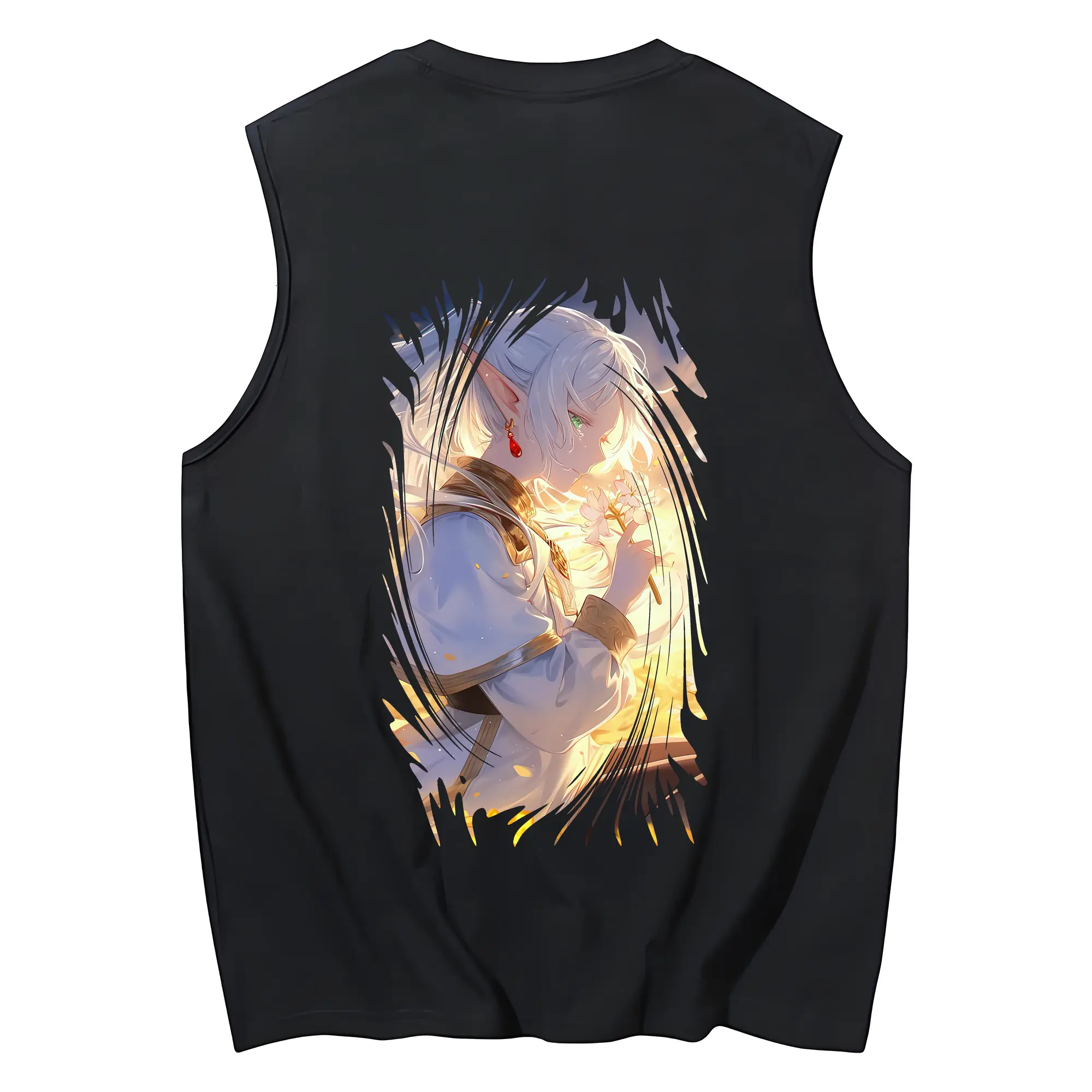 葬送のフリーレン(Frieren) グッズ,フリーレン(Frieren) - コットン100% タンクトップ ・ 背面プリント ・ タイトシルエット ・ 快適 通気性 ・ スポーツ カジュアル 散歩用