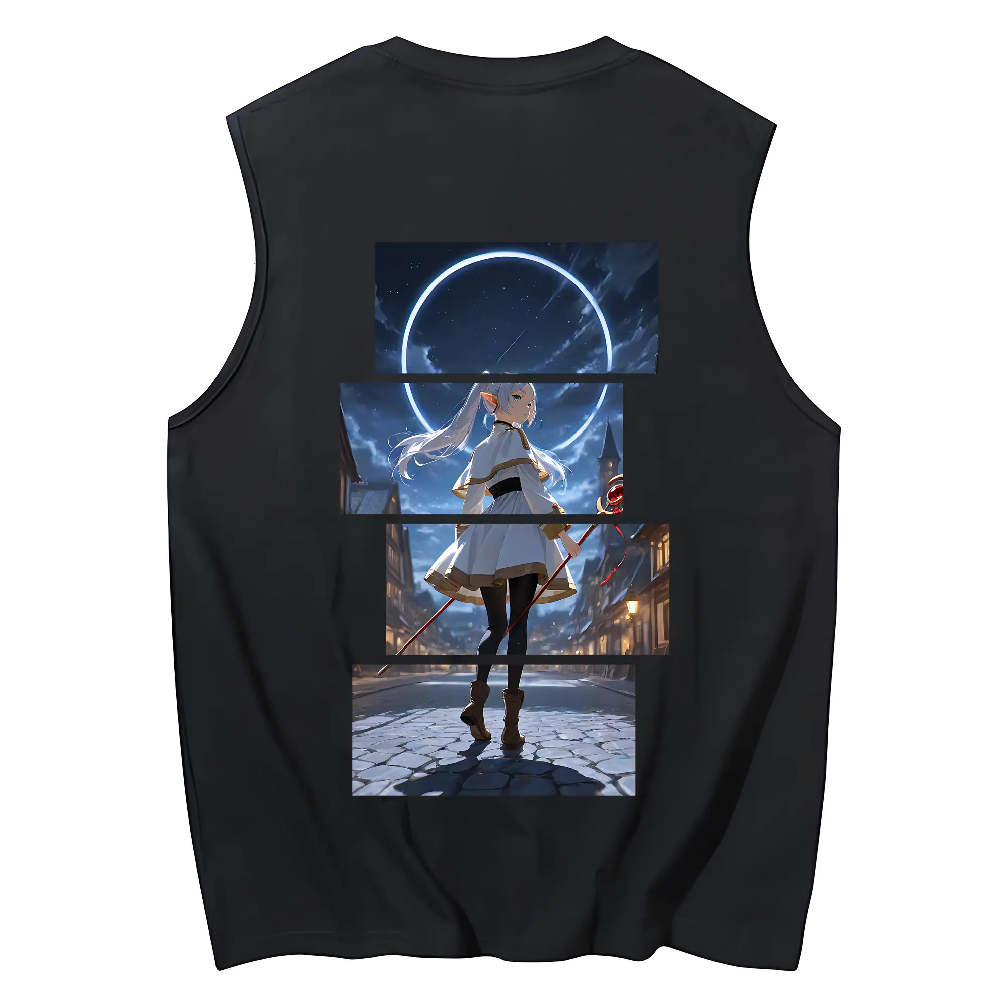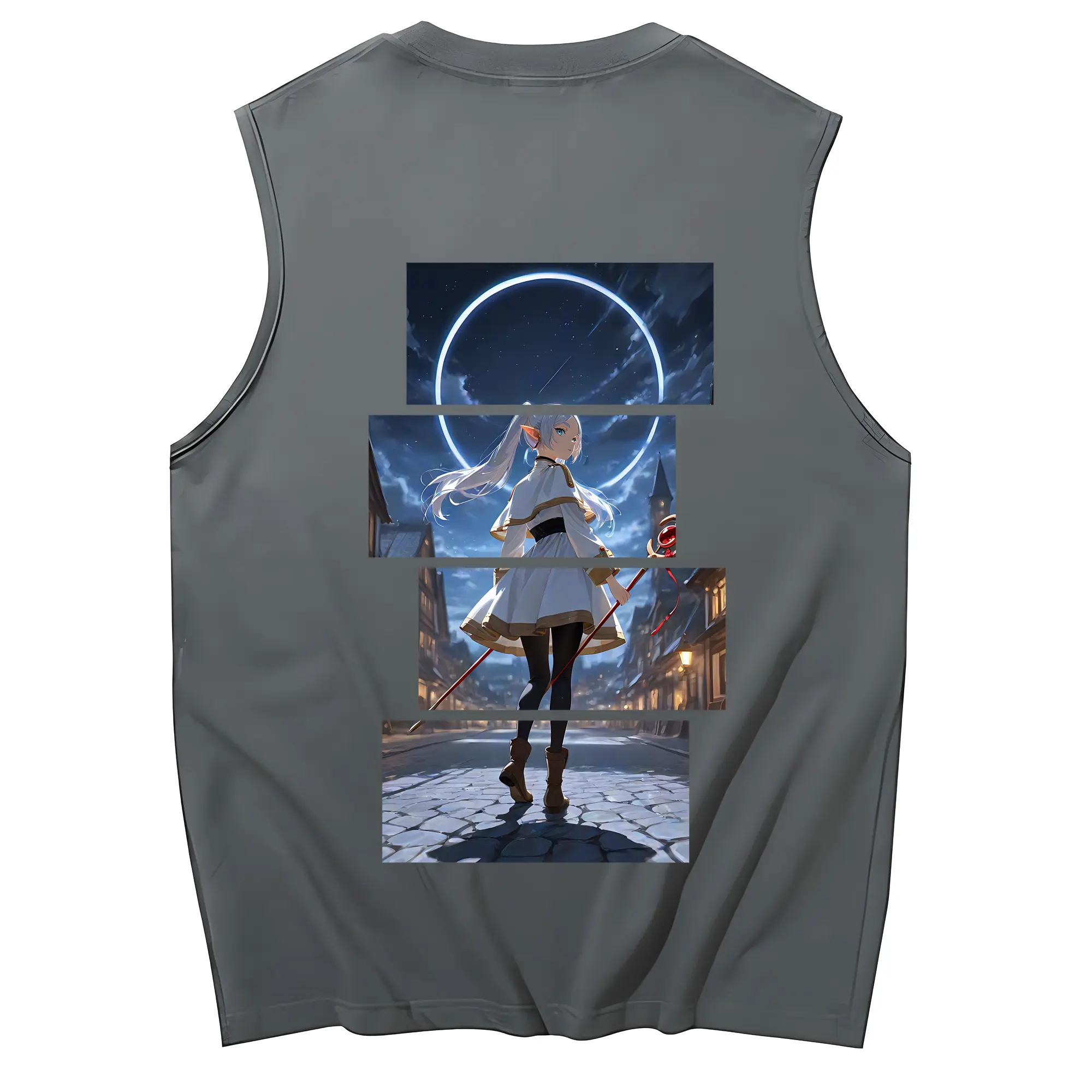 葬送のフリーレン(Frieren) グッズ,フリーレン(Frieren) - コットン100% タンクトップ ・ 背面プリント ・ タイトシルエット ・ 快適 通気性 ・ スポーツ カジュアル 散歩用