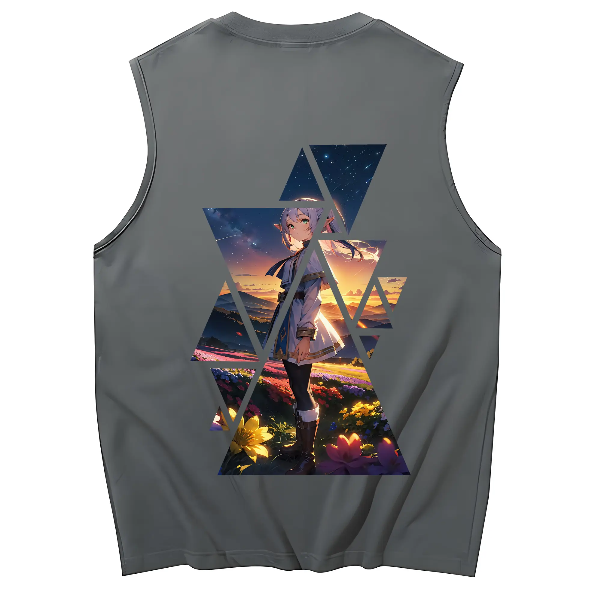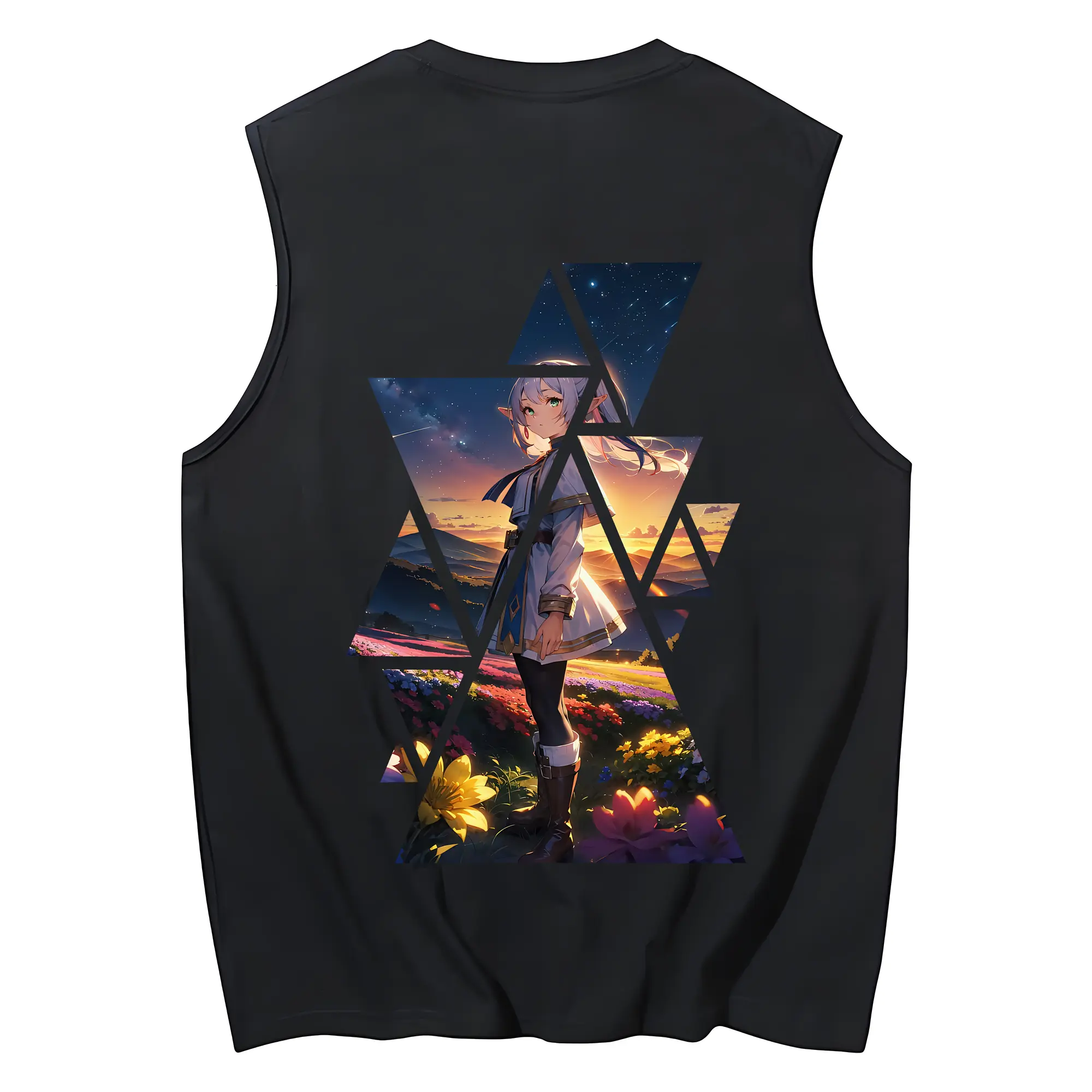 葬送のフリーレン(Frieren) グッズ,フリーレン(Frieren) - コットン100% タンクトップ ・ 背面プリント ・ タイトシルエット ・ 快適 通気性 ・ スポーツ カジュアル 散歩用