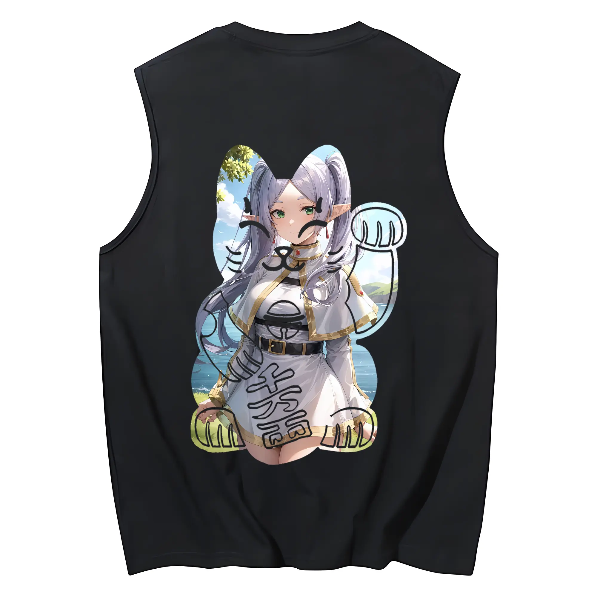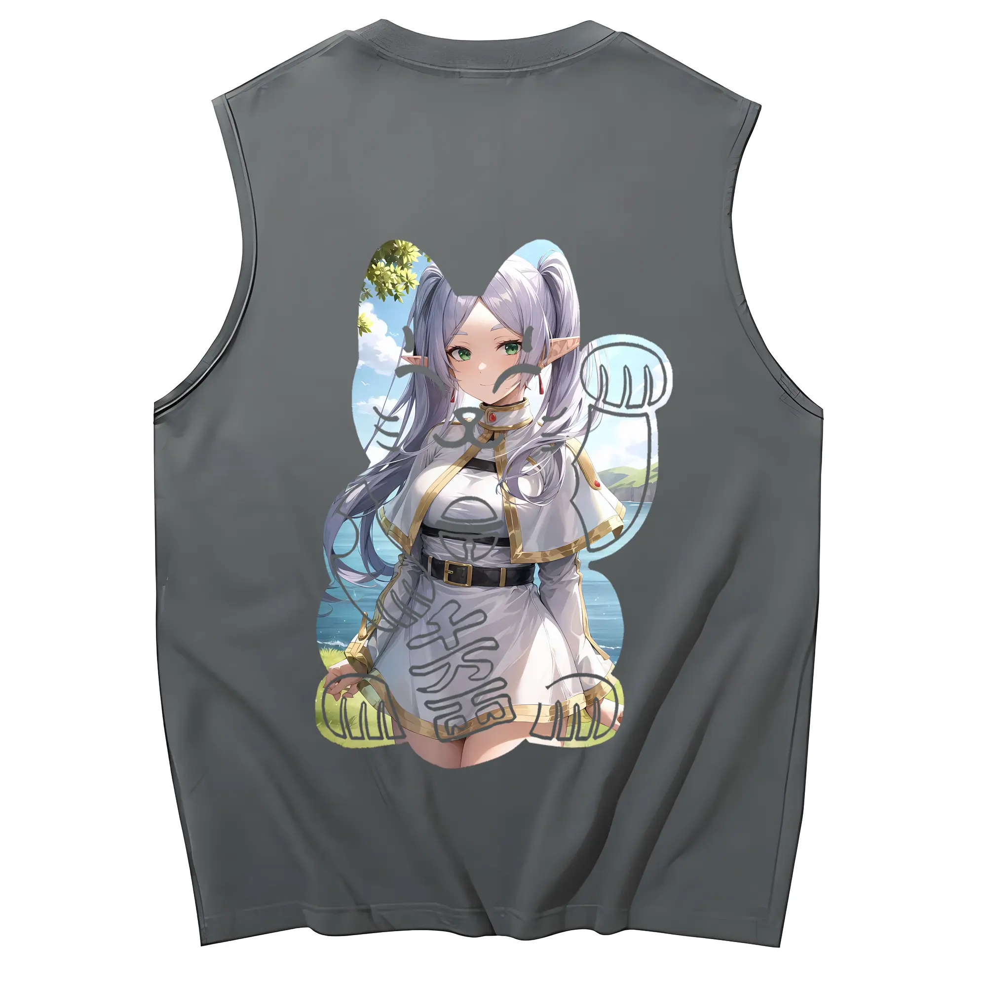 葬送のフリーレン(Frieren) グッズ,フリーレン(Frieren) - コットン100% タンクトップ ・ 背面プリント ・ タイトシルエット ・ 快適 通気性 ・ スポーツ カジュアル 散歩用