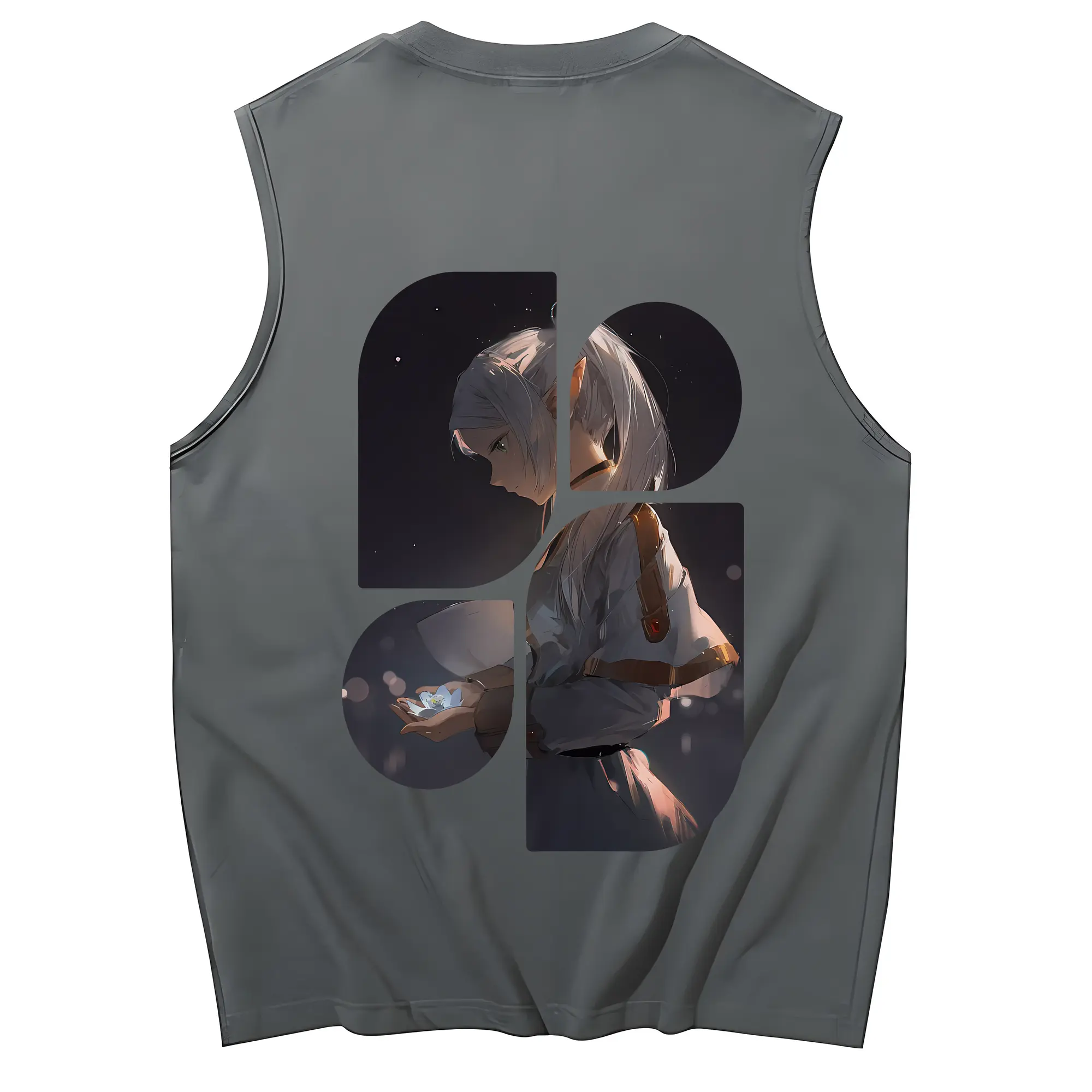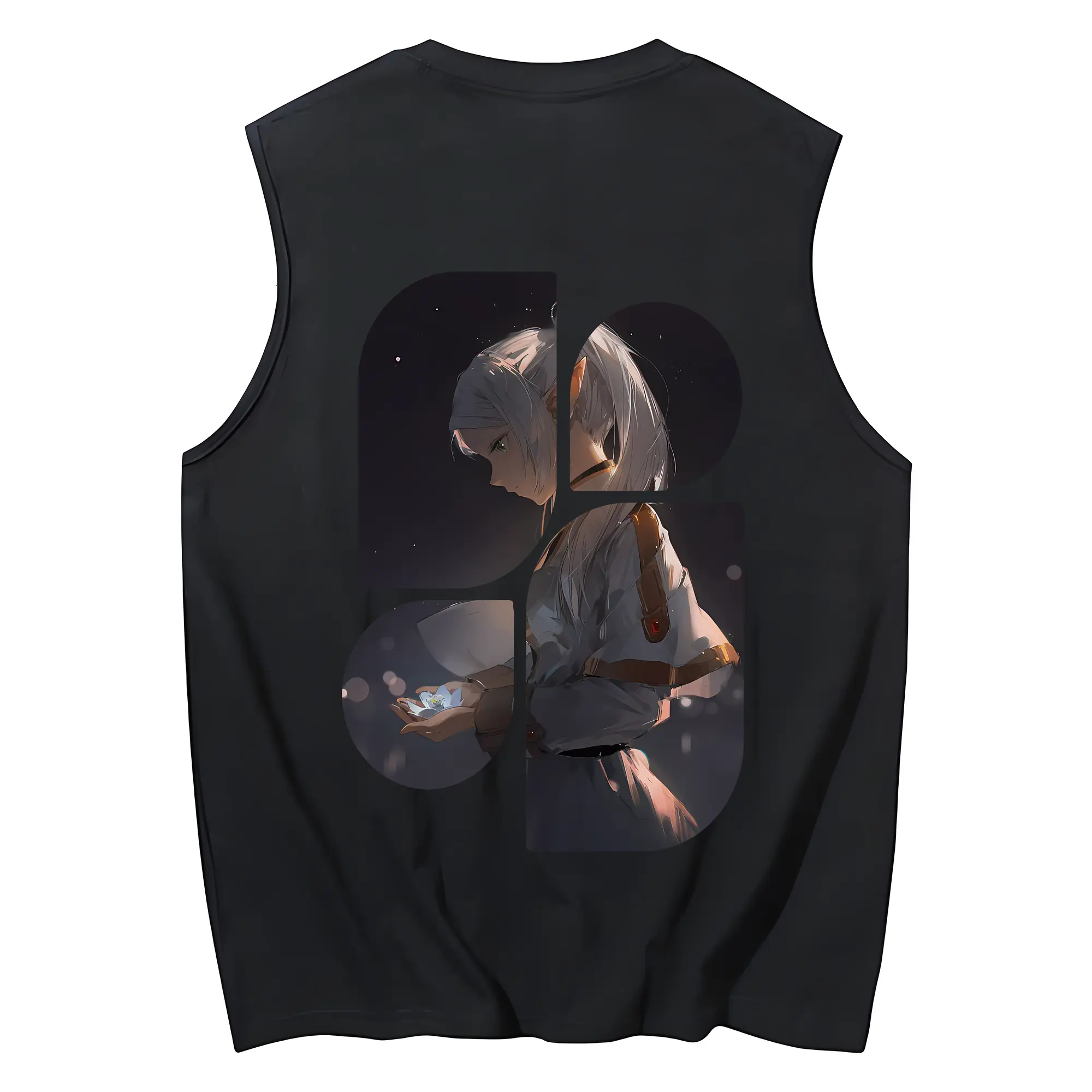 葬送のフリーレン(Frieren) グッズ,フリーレン(Frieren) - コットン100% タンクトップ ・ 背面プリント ・ タイトシルエット ・ 快適 通気性 ・ スポーツ カジュアル 散歩用