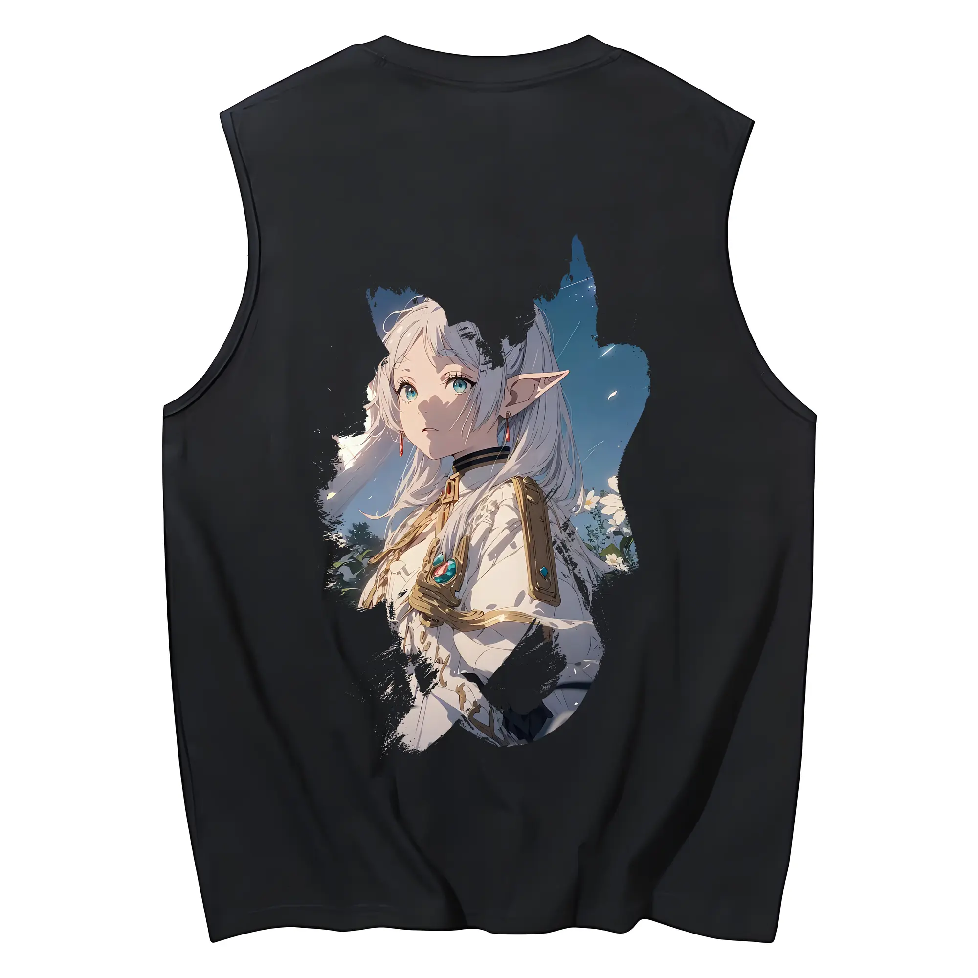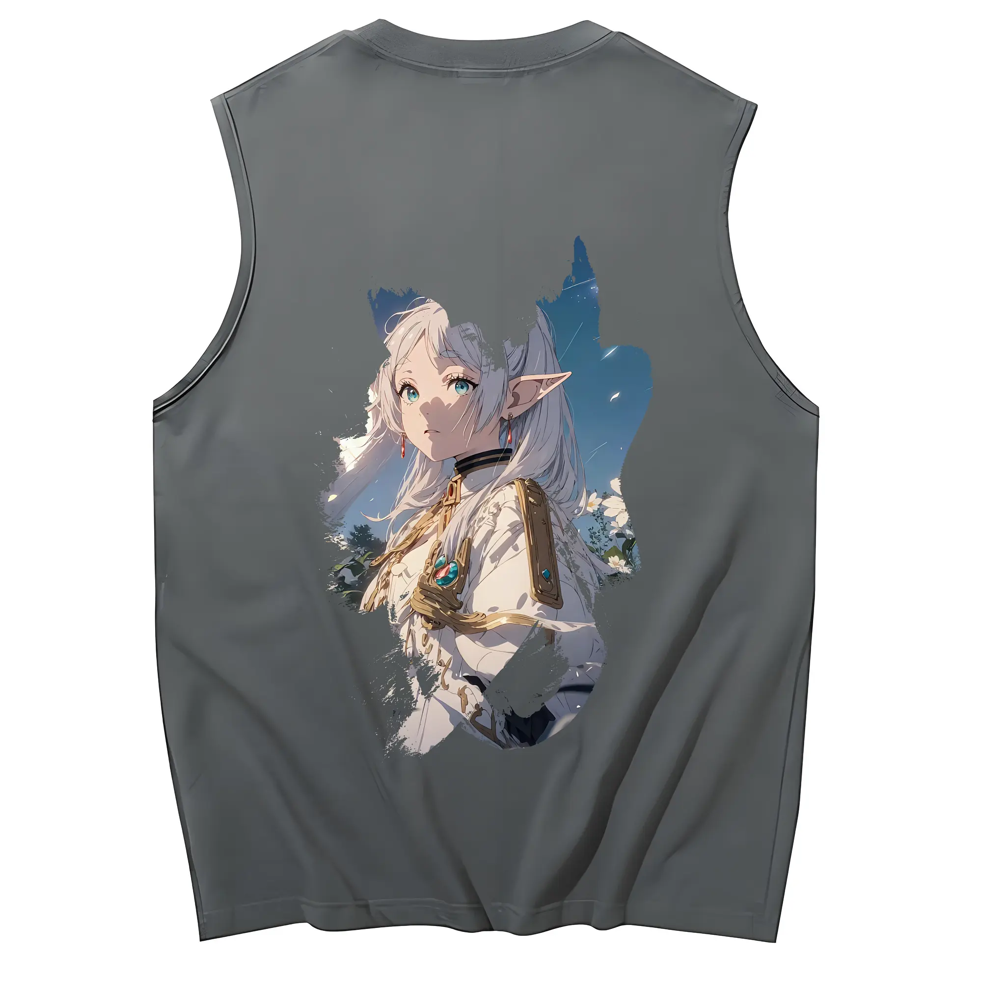 葬送のフリーレン(Frieren) グッズ,フリーレン(Frieren) - コットン100% タンクトップ ・ 背面プリント ・ タイトシルエット ・ 快適 通気性 ・ スポーツ カジュアル 散歩用