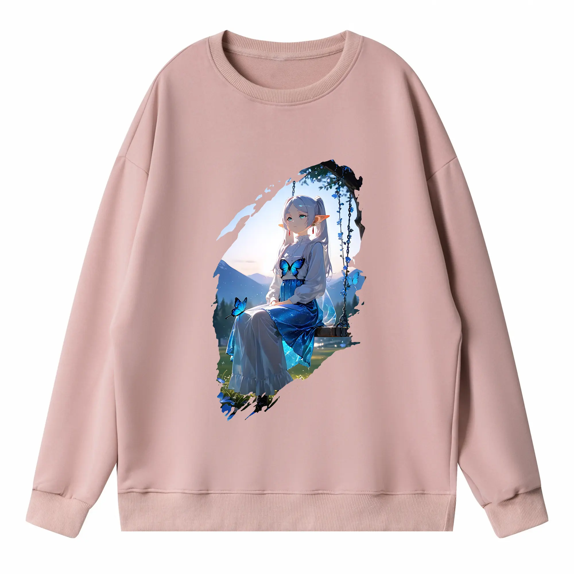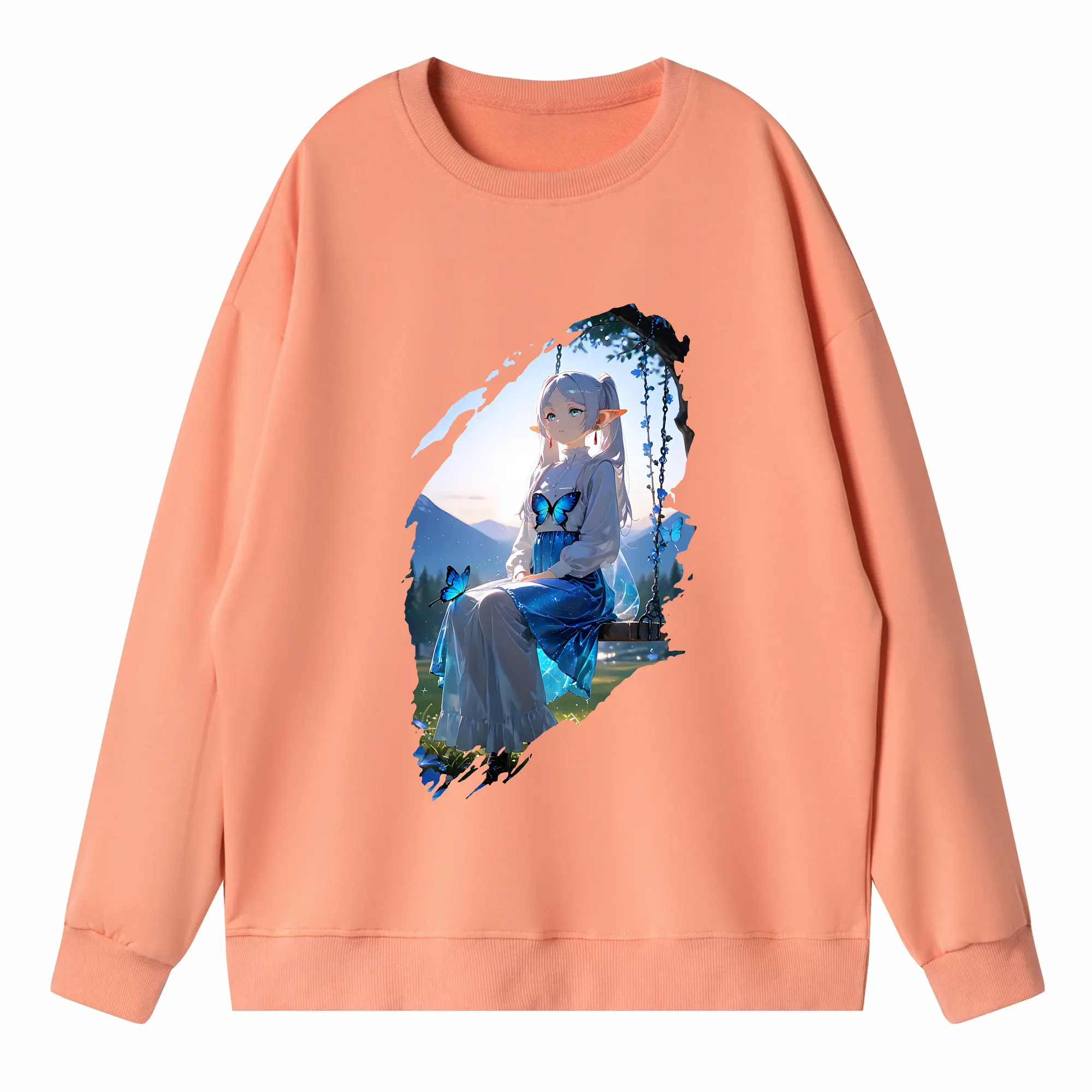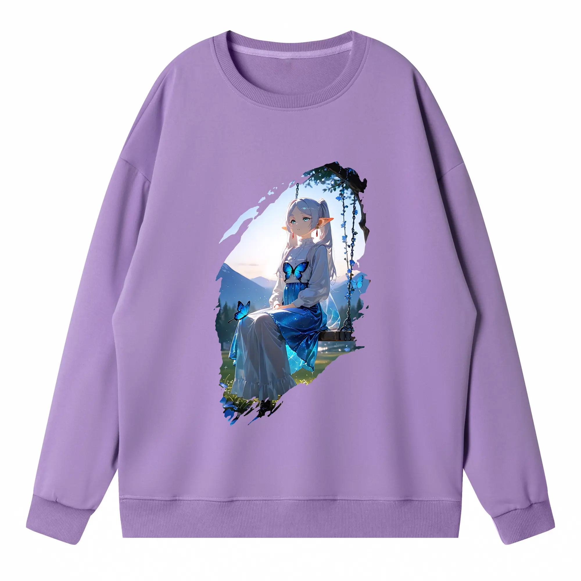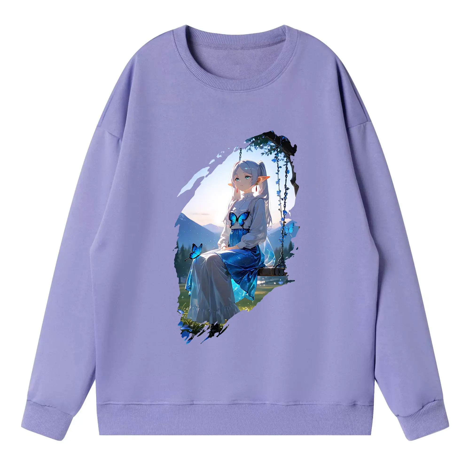 葬送のフリーレン(Frieren) グッズ,フェルン(Fern) - 薄手 クルーネック スウェット 裏毛260g · ポリエステル 春秋向け カジュアル 男女兼用 · トレーナー デイリー スポーツ 散歩に最適