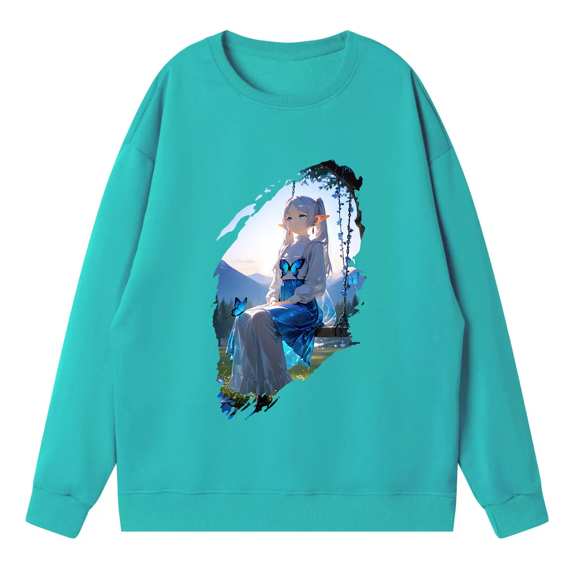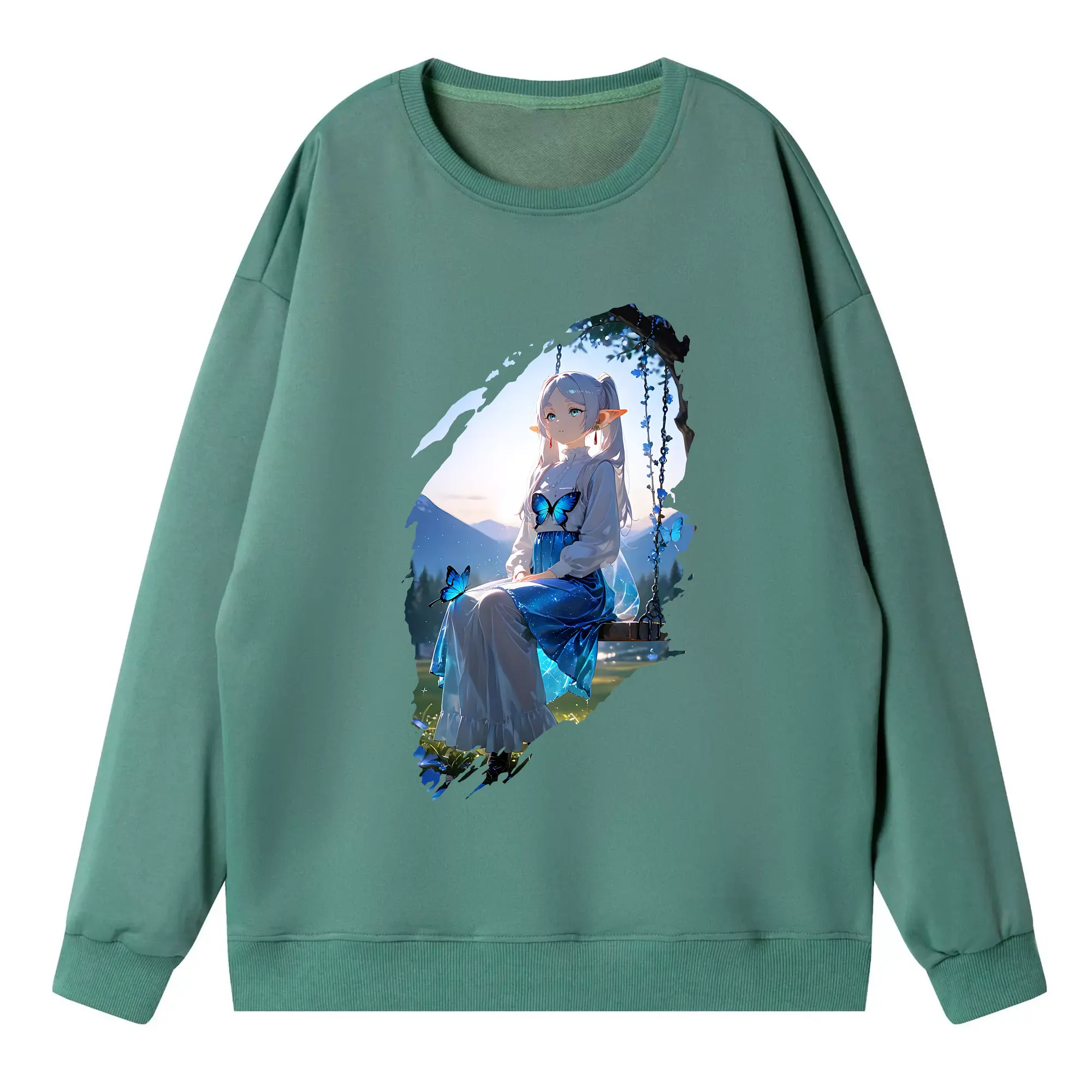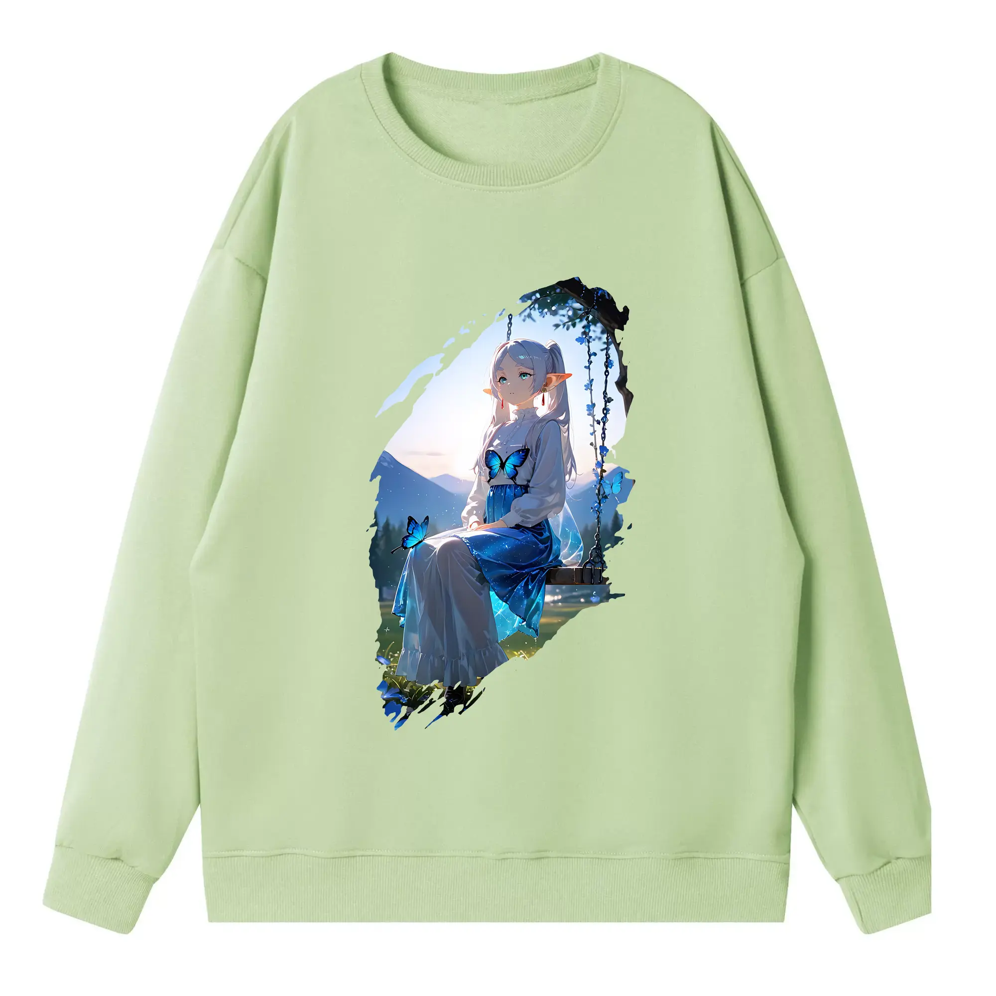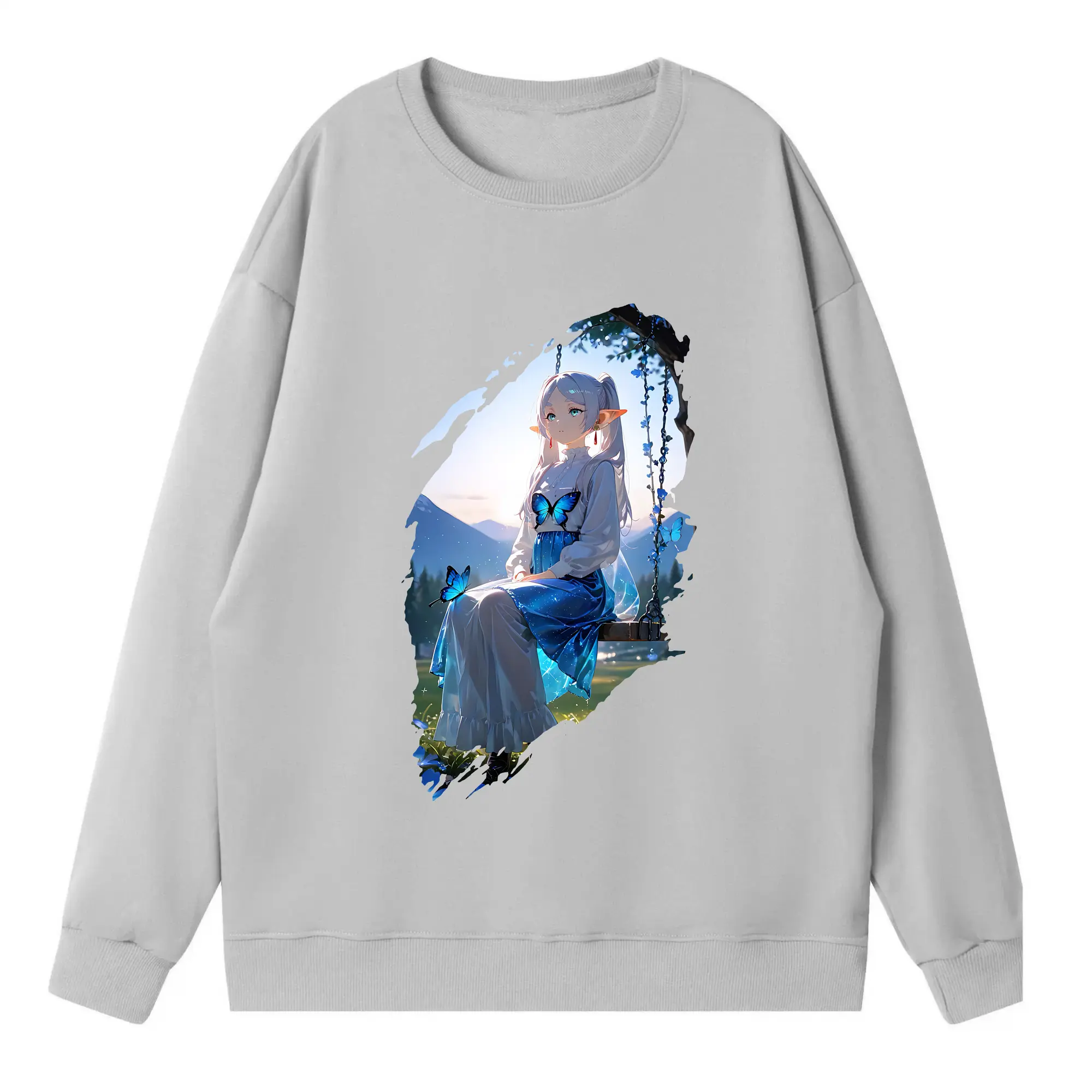 葬送のフリーレン(Frieren) グッズ,フェルン(Fern) - 薄手 クルーネック スウェット 裏毛260g · ポリエステル 春秋向け カジュアル 男女兼用 · トレーナー デイリー スポーツ 散歩に最適