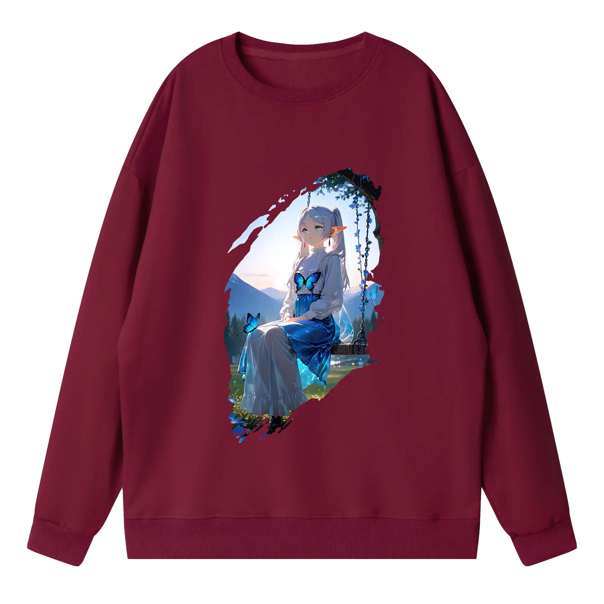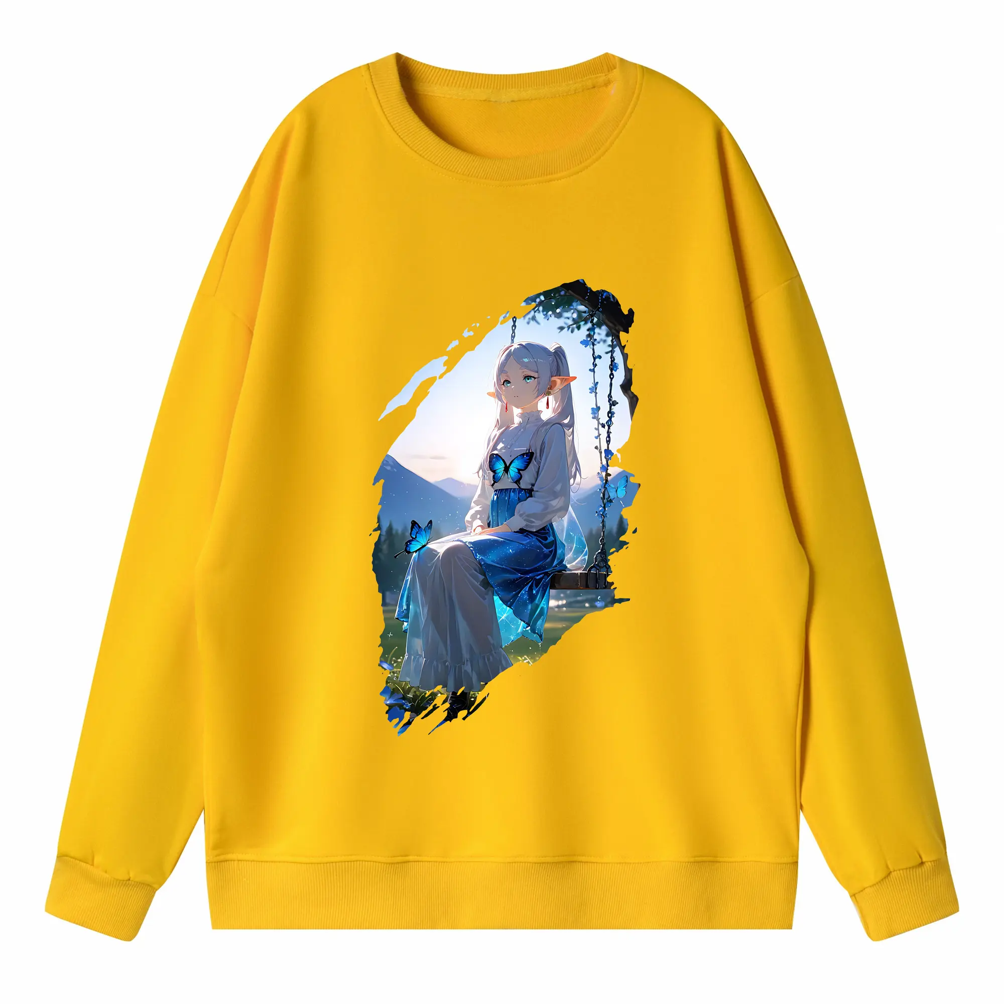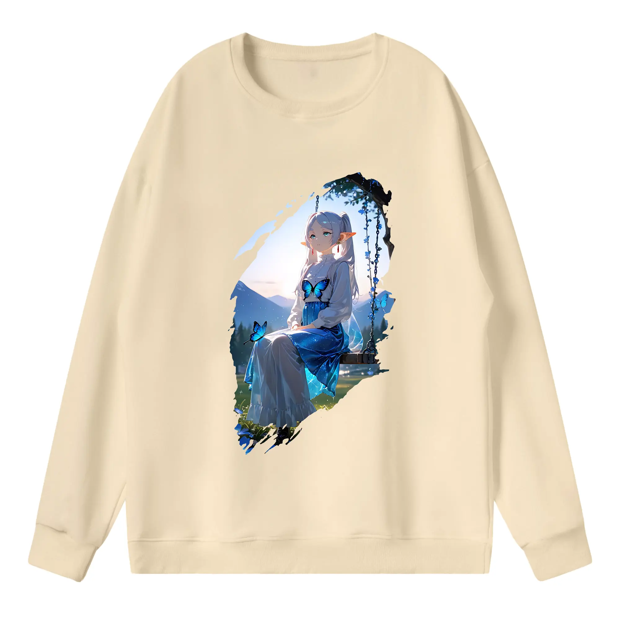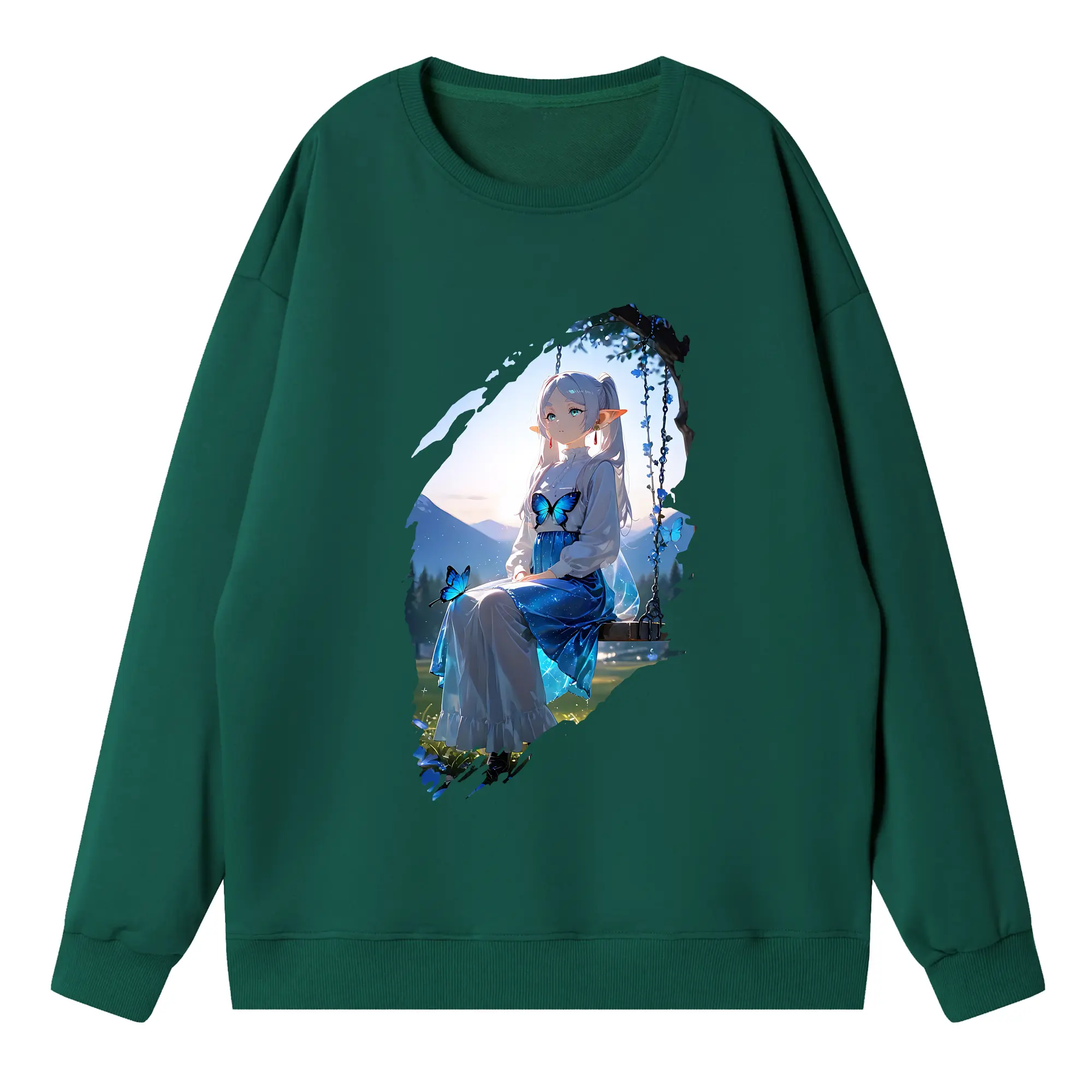 葬送のフリーレン(Frieren) グッズ,フェルン(Fern) - 薄手 クルーネック スウェット 裏毛260g · ポリエステル 春秋向け カジュアル 男女兼用 · トレーナー デイリー スポーツ 散歩に最適