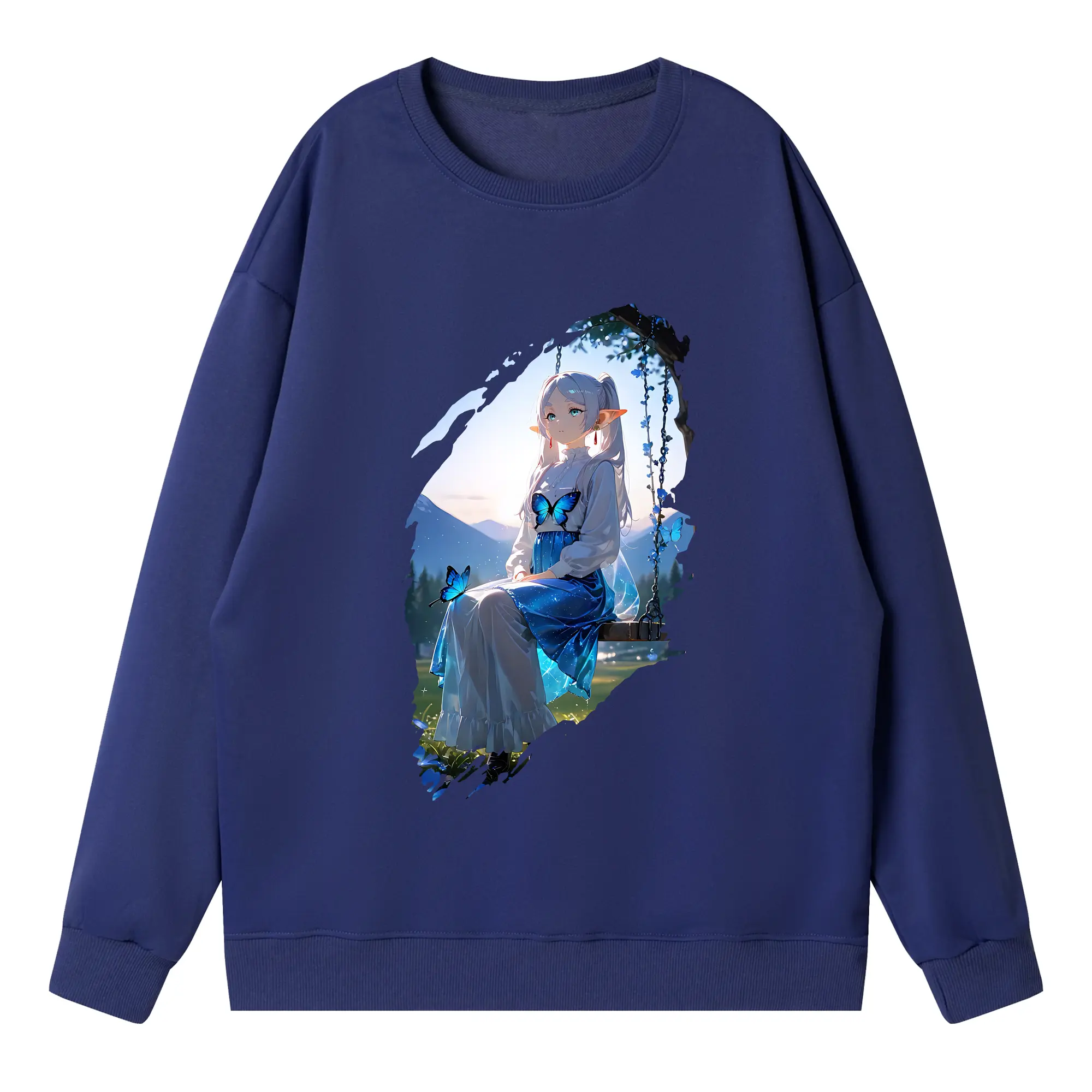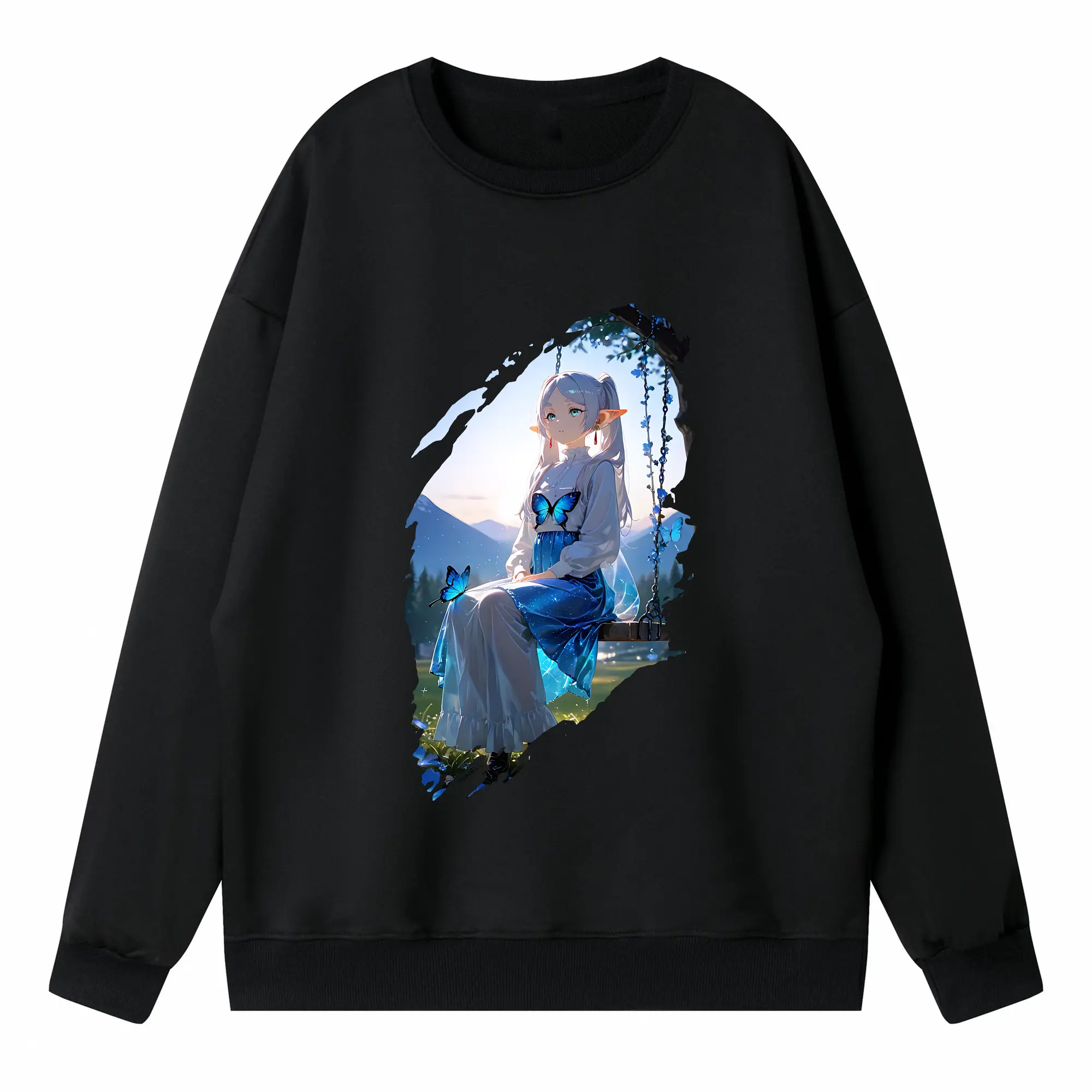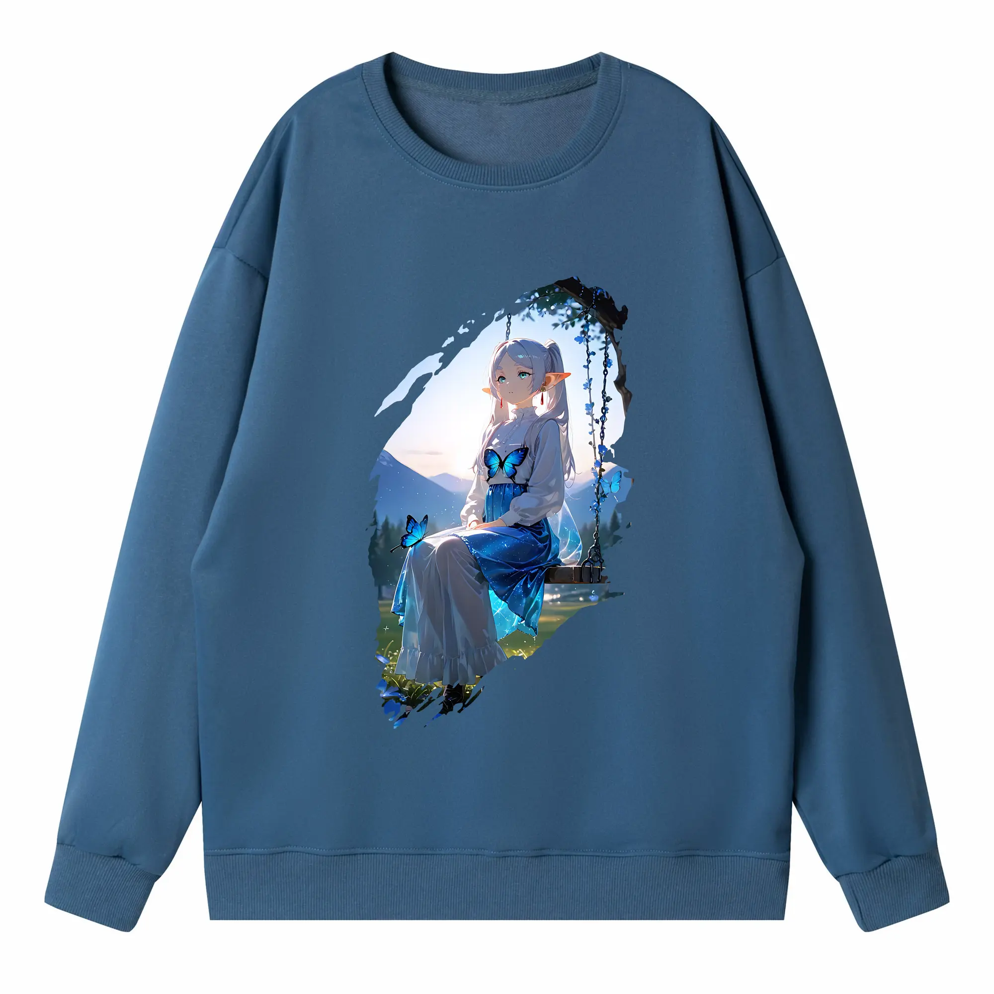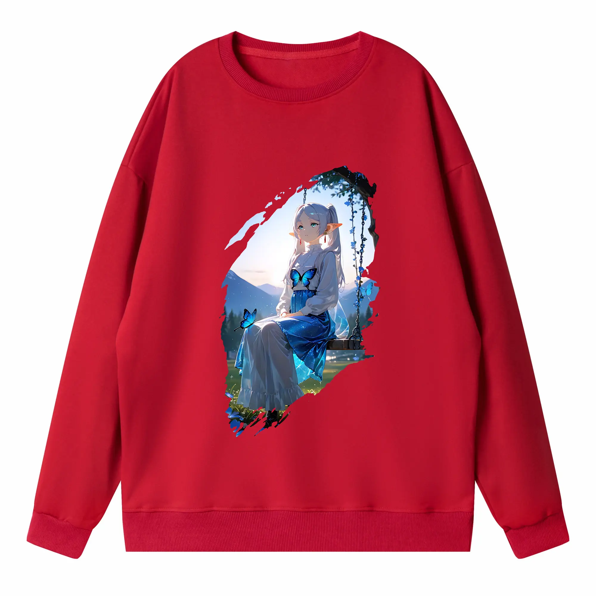 葬送のフリーレン(Frieren) グッズ,フェルン(Fern) - 薄手 クルーネック スウェット 裏毛260g · ポリエステル 春秋向け カジュアル 男女兼用 · トレーナー デイリー スポーツ 散歩に最適