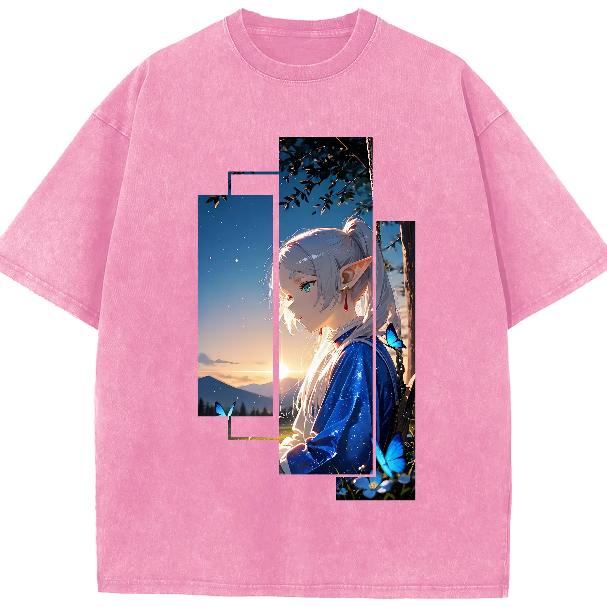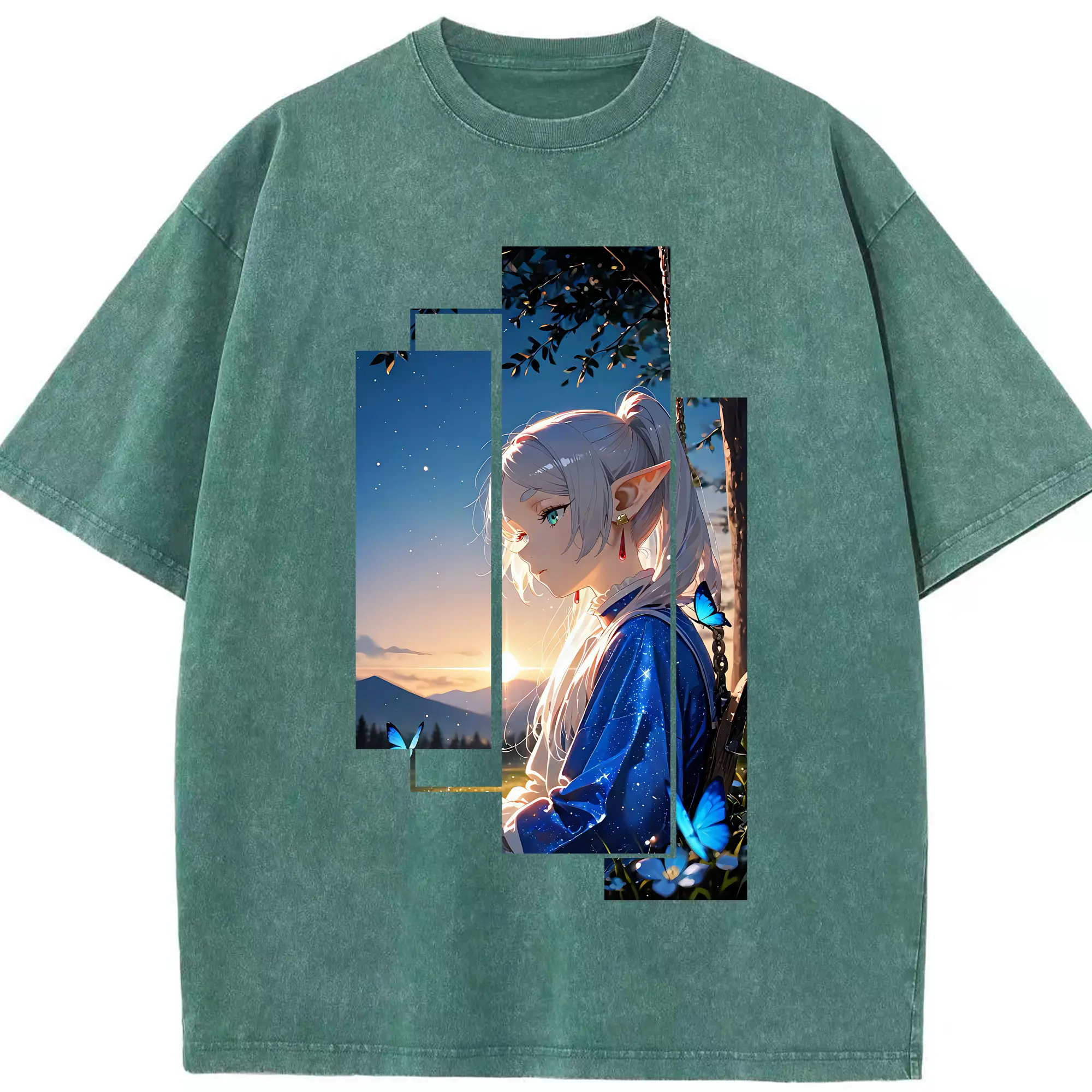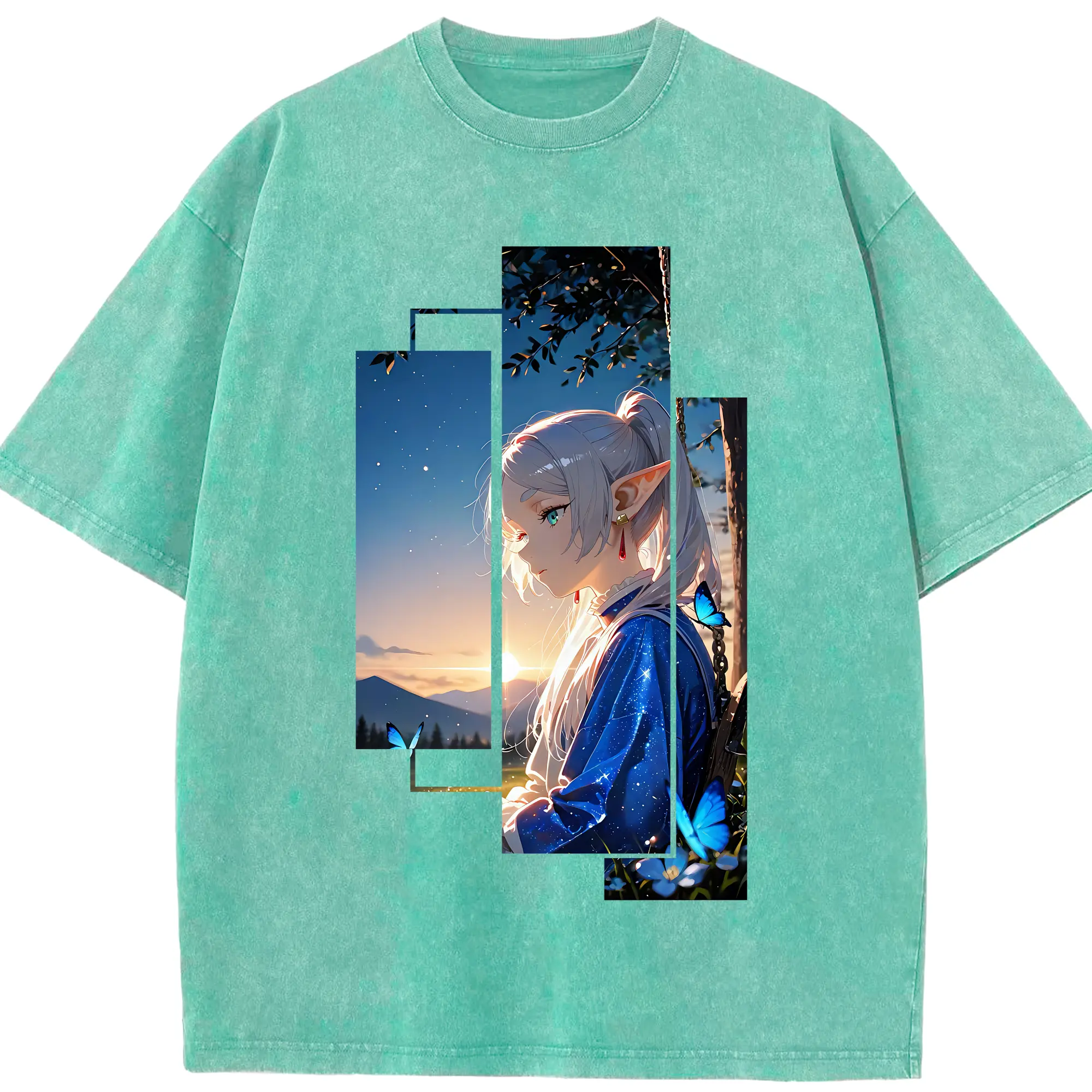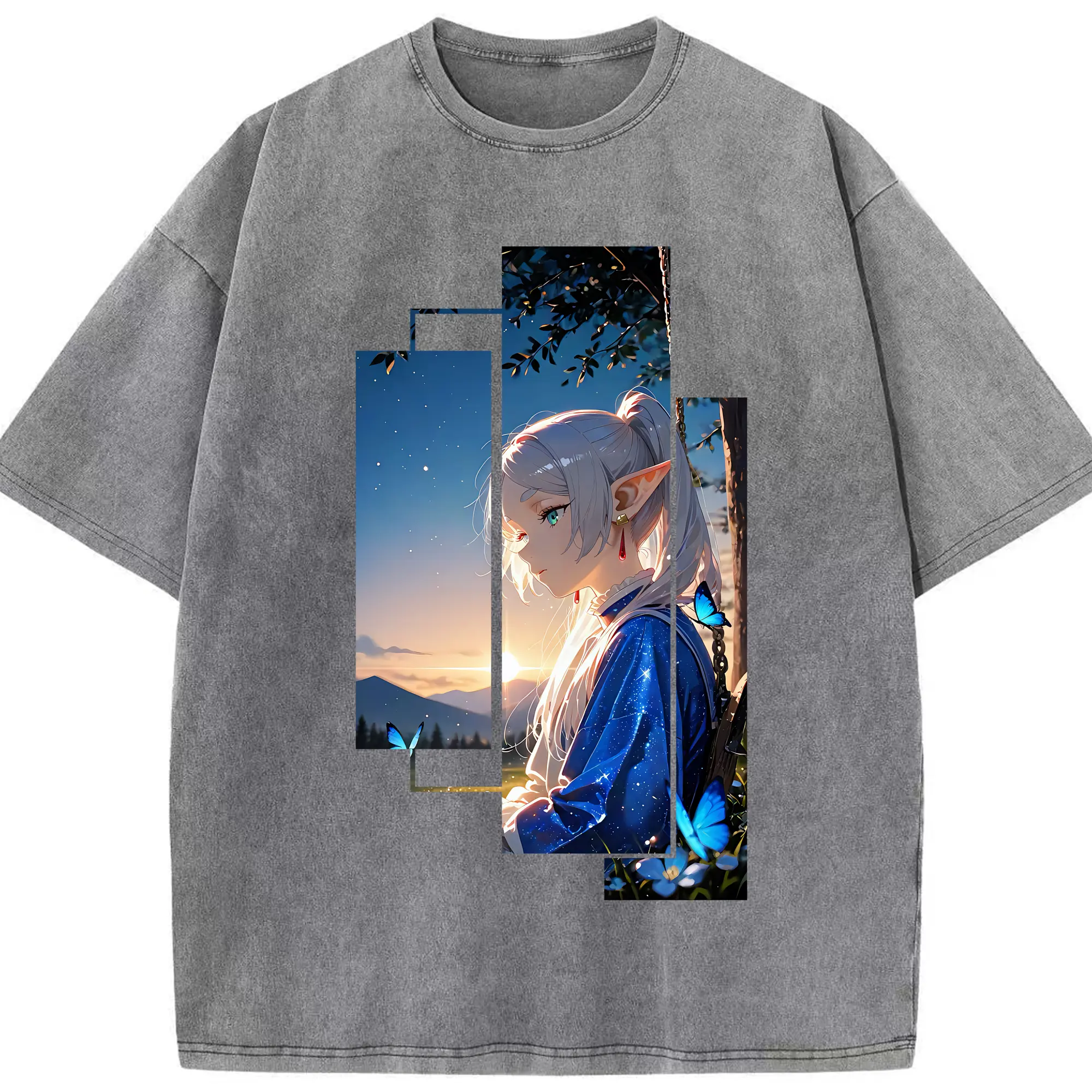葬送のフリーレン(Frieren) グッズ,フリーレン(Frieren) - 綿100% 半袖Tシャツ ・ バックプリント ・ 快適 通気性 ・ 日常使い 散歩 スポーツ用