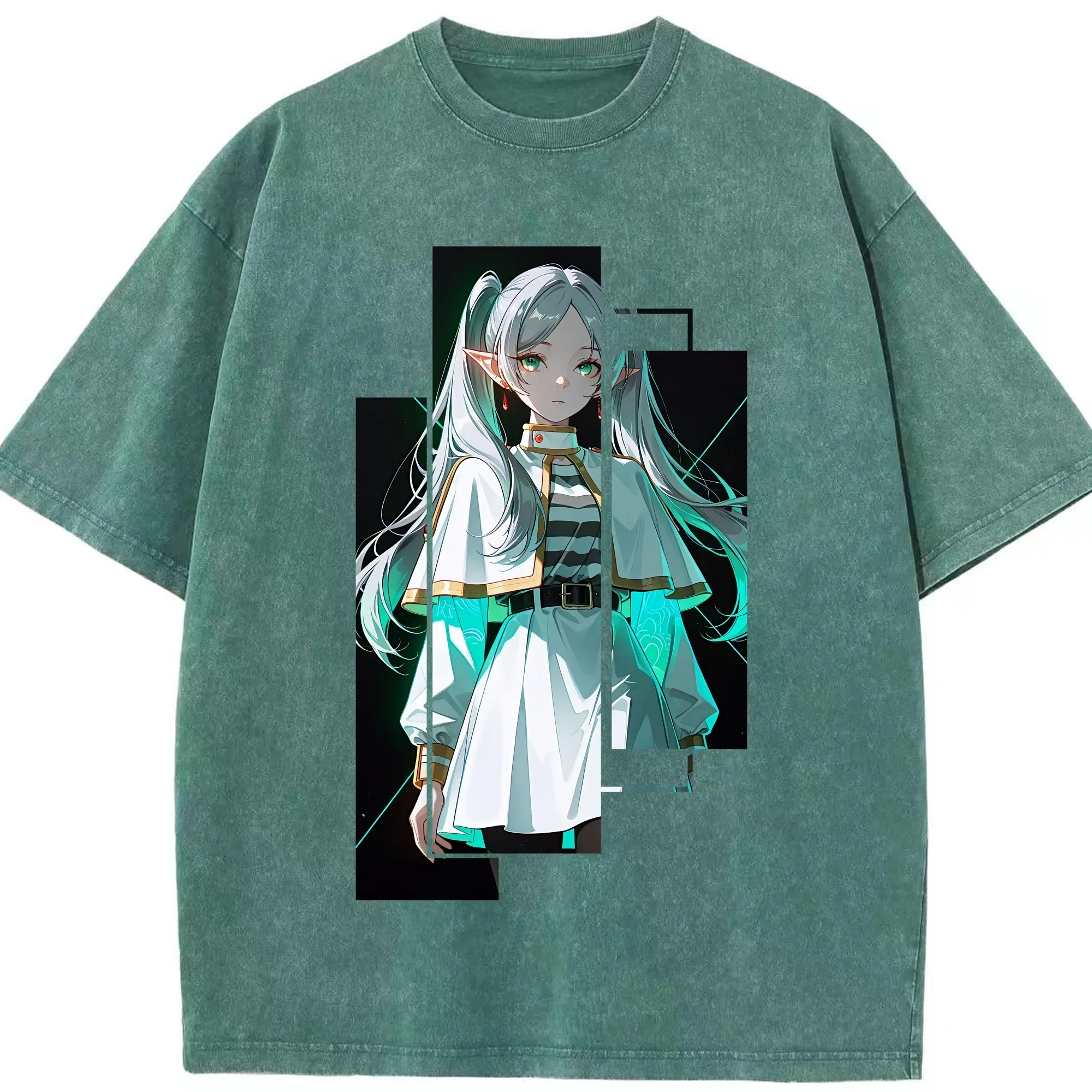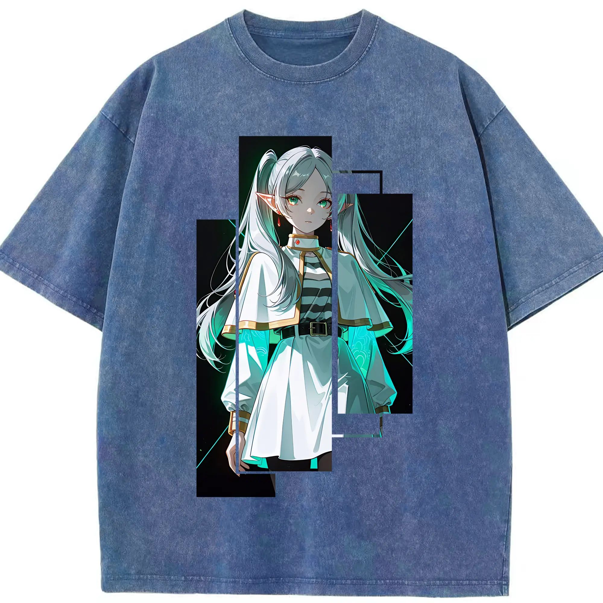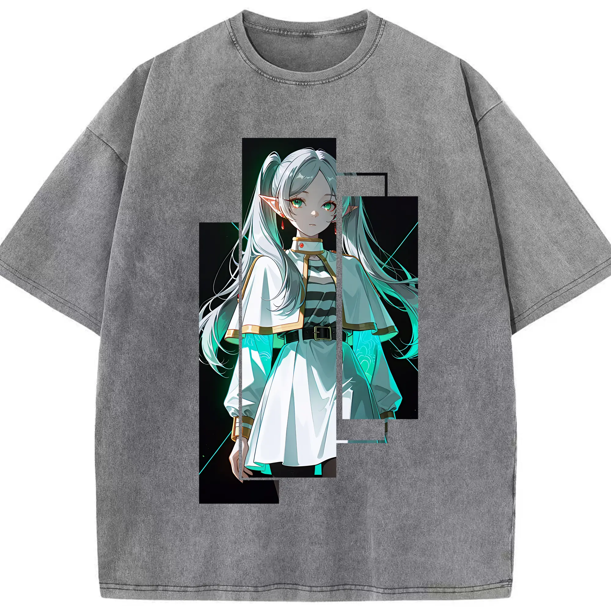 葬送のフリーレン(Frieren) グッズ,フリーレン(Frieren) - 綿100% ヴィンテージ風 半袖Tシャツ ・ フロントプリント ・ 柔らか肌触り ・ 通気性 快適 ・ スポーツ カジュアル 外出用