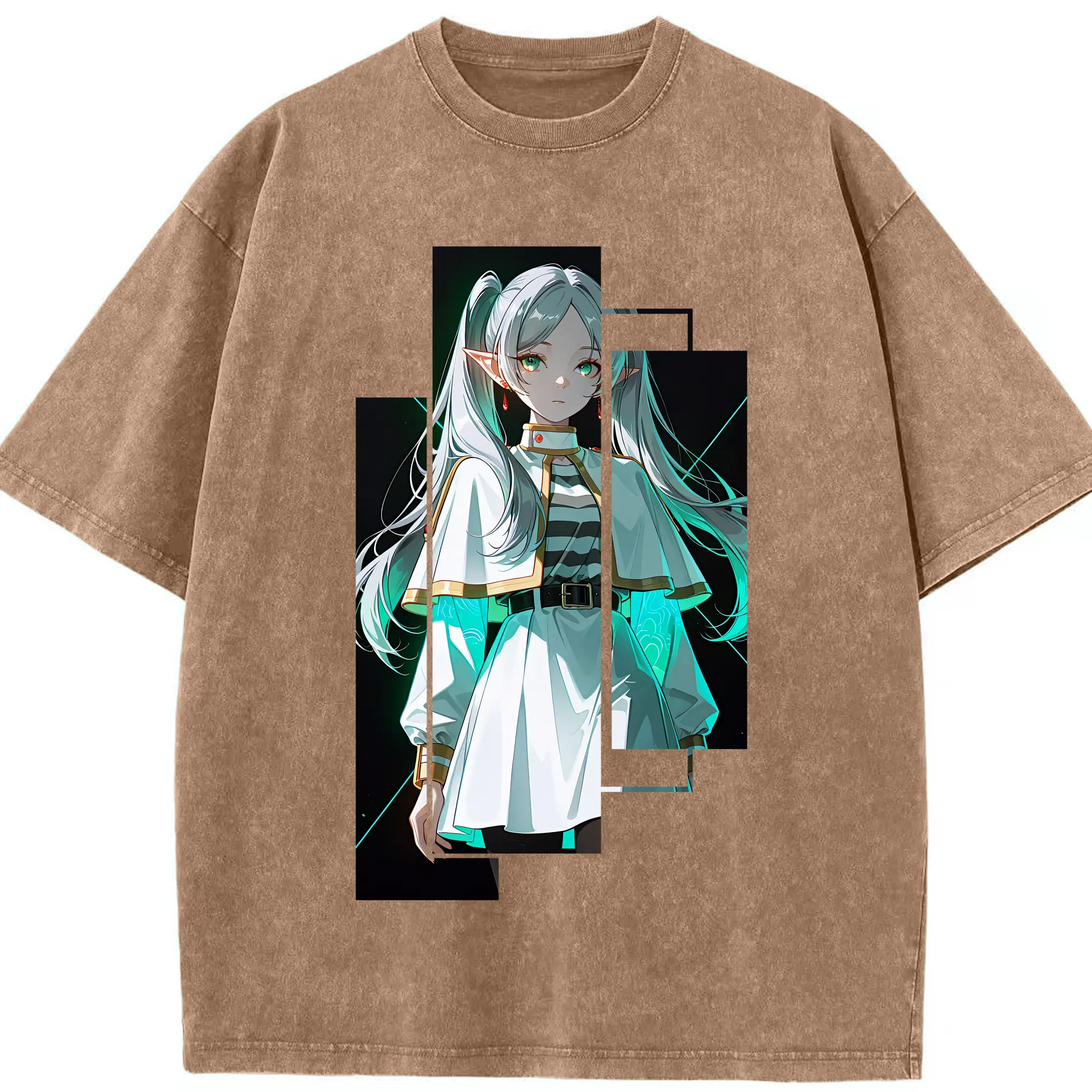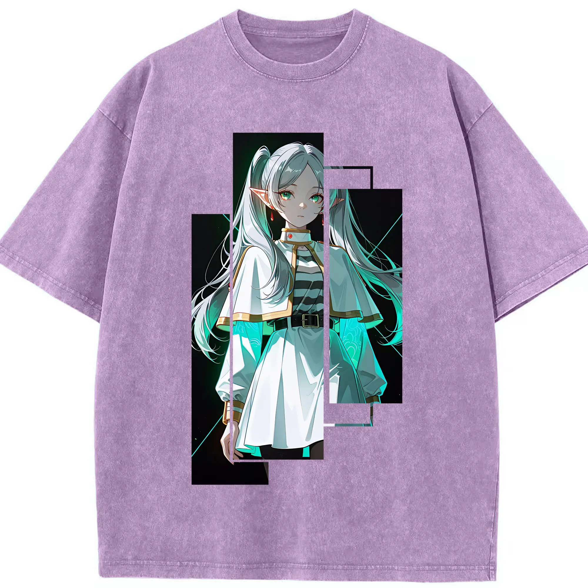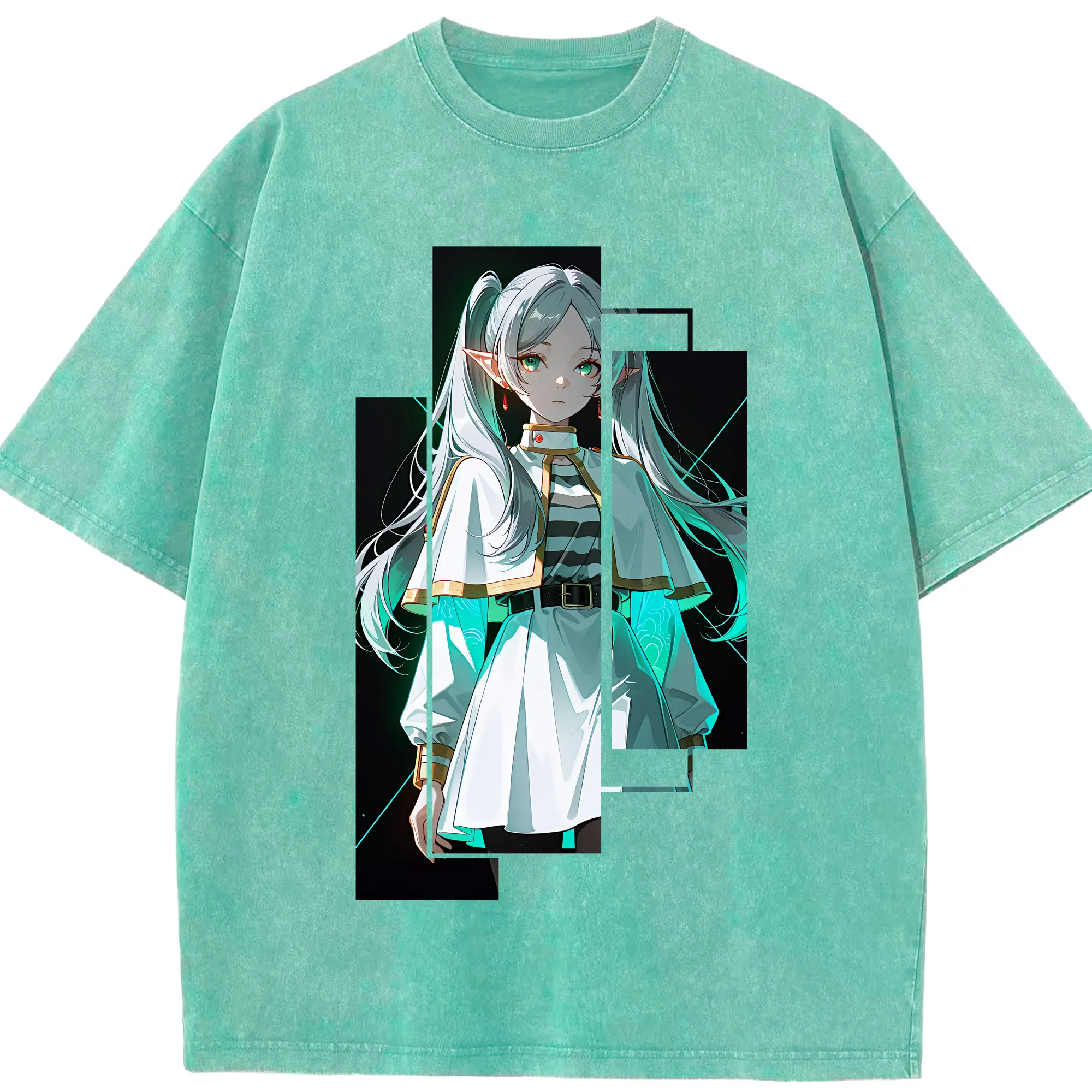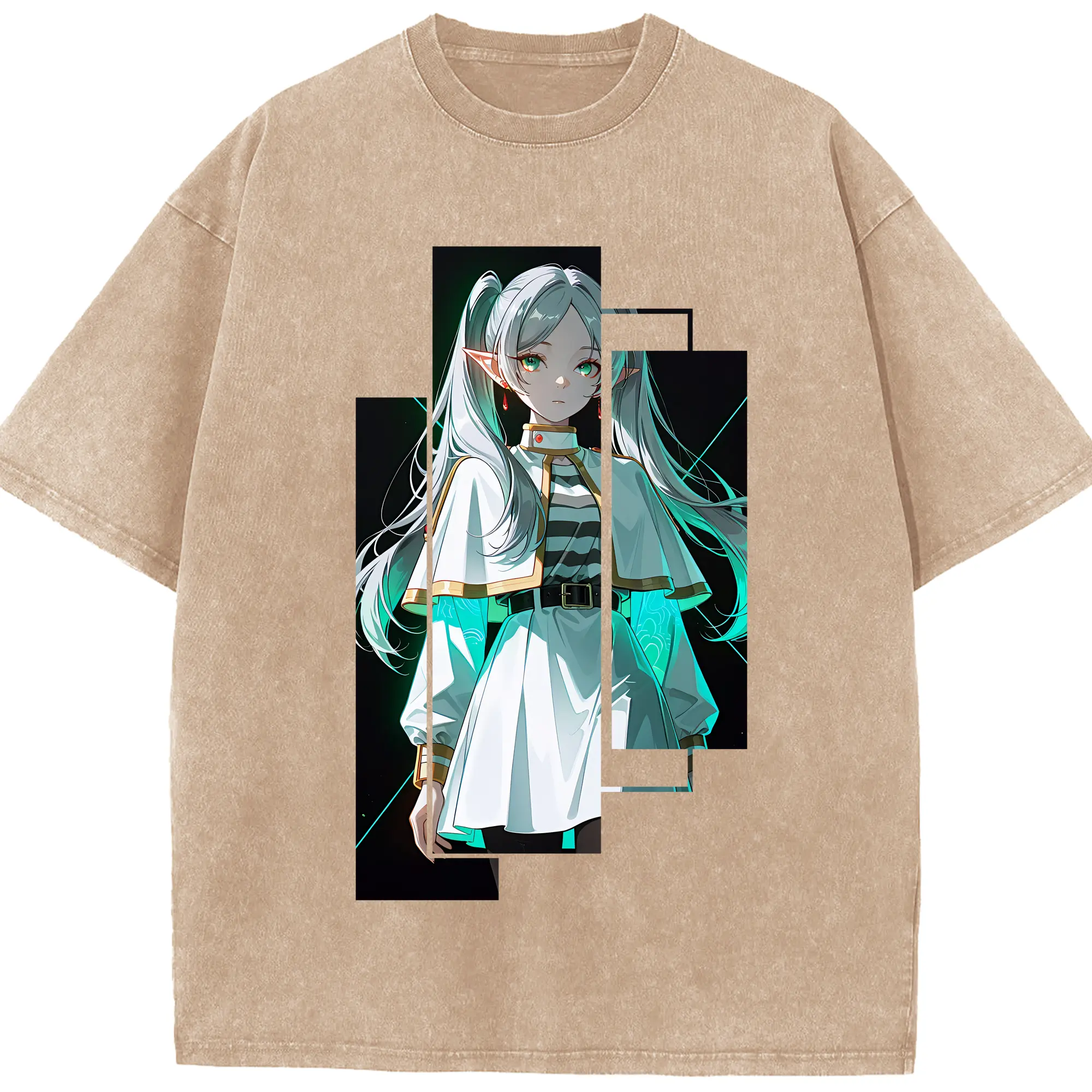 葬送のフリーレン(Frieren) グッズ,フリーレン(Frieren) - 綿100% ヴィンテージ風 半袖Tシャツ ・ フロントプリント ・ 柔らか肌触り ・ 通気性 快適 ・ スポーツ カジュアル 外出用