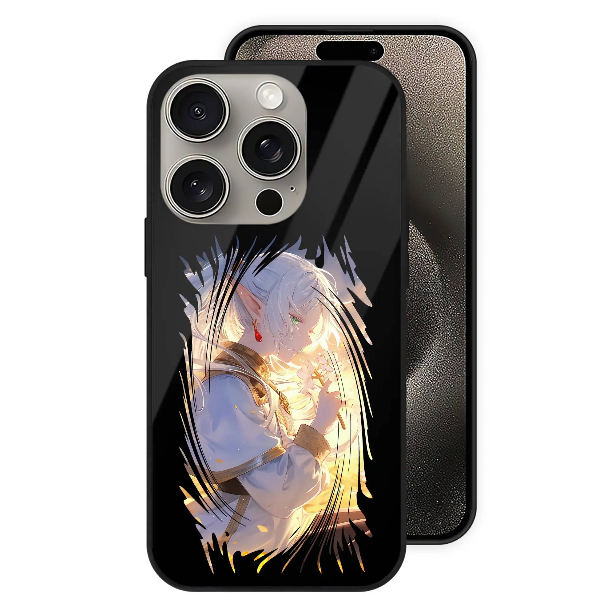 葬送のフリーレン(Frieren) グッズ,フリーレン(Frieren) - IPhone15Pro対応 ・ スマホケース ・ 背面ガラス ・ TPU+強化ガラス ・ 耐衝撃 ・ 黄変防止 ・ ワイヤレス充電対応 ・ 3D立体ボタン