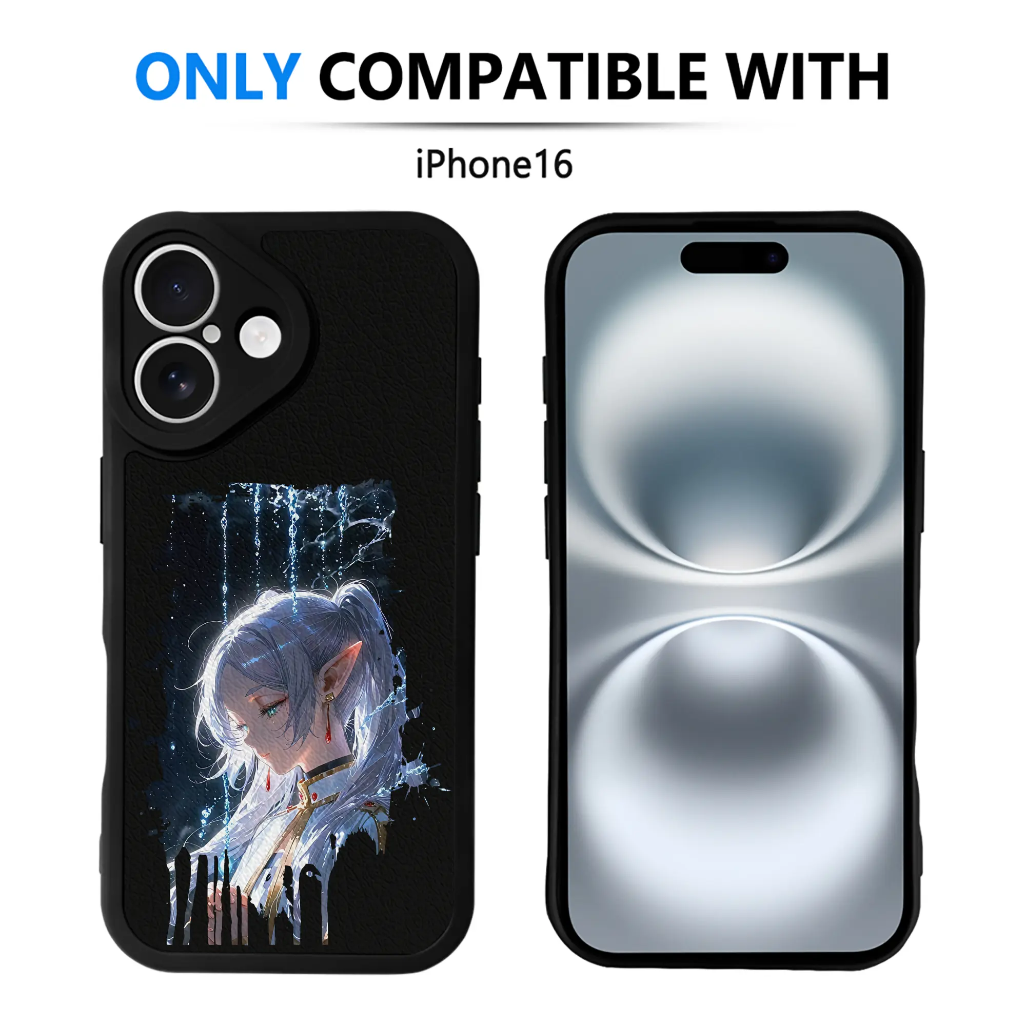 葬送のフリーレン(Frieren) グッズ,フリーレン(Frieren) - IPhone 16シリーズ対応 ・ シリコンスマホケース ・ レザー調 ・ 高精度フィット ・ 耐衝撃 ・ ワイヤレス充電対応 ・ 精密カット