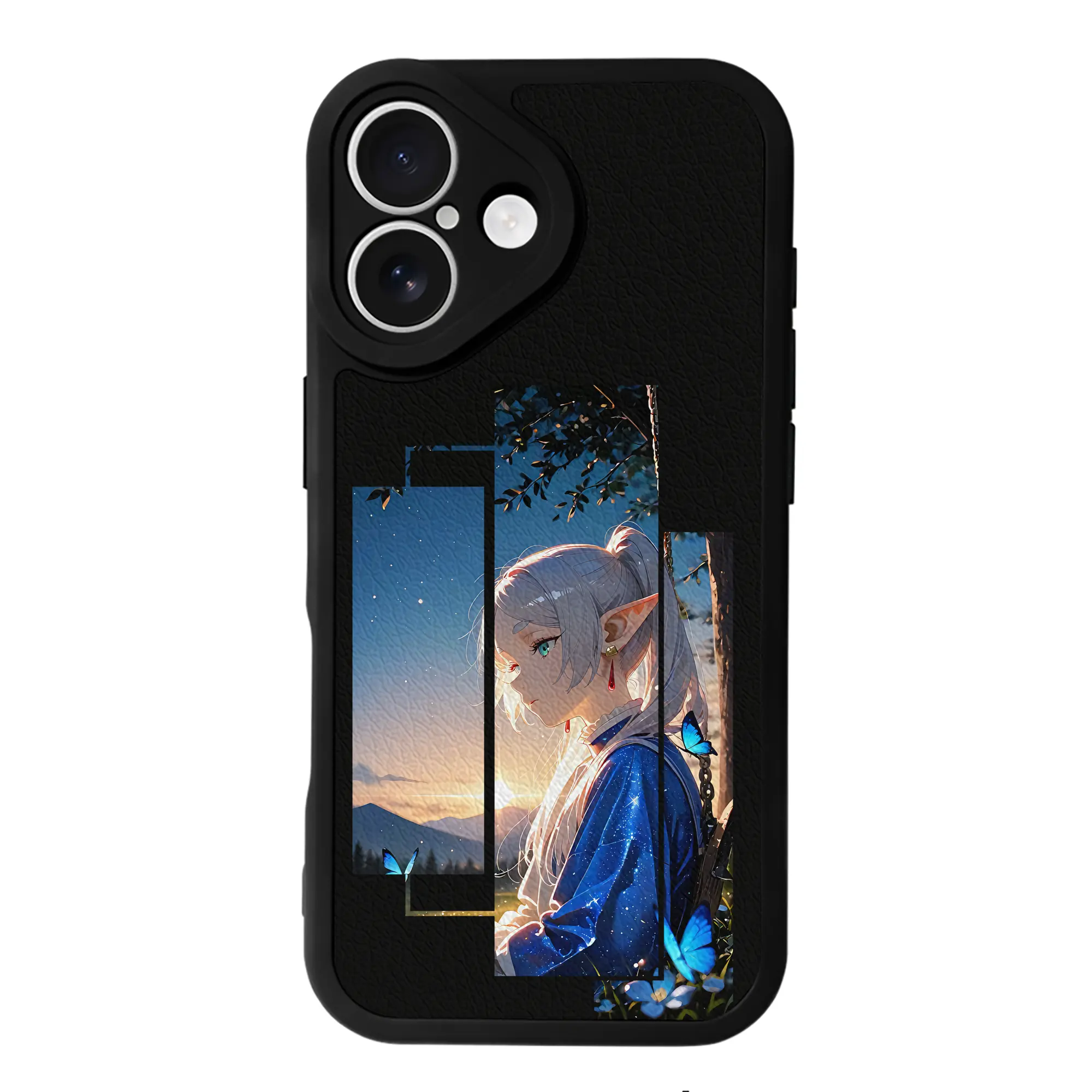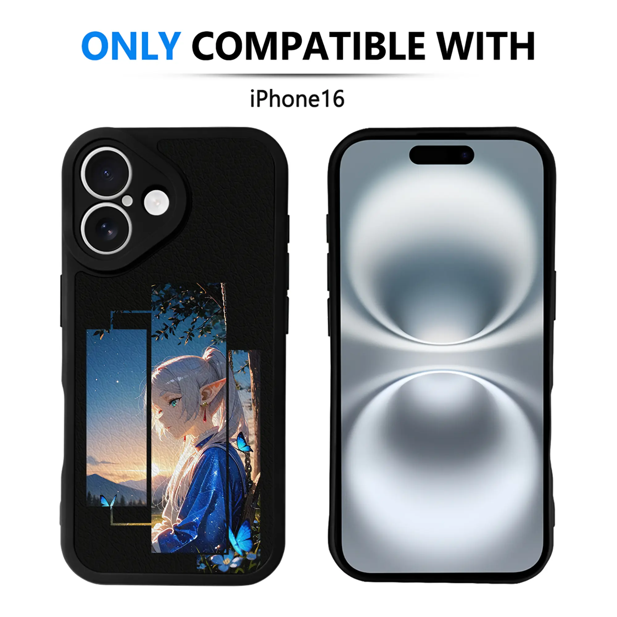 葬送のフリーレン(Frieren) グッズ,フリーレン(Frieren) - IPhone 16シリーズ対応 ・ シリコンスマホケース ・ レザー調 ・ 高精度フィット ・ 耐衝撃 ・ ワイヤレス充電対応 ・ 精密カット