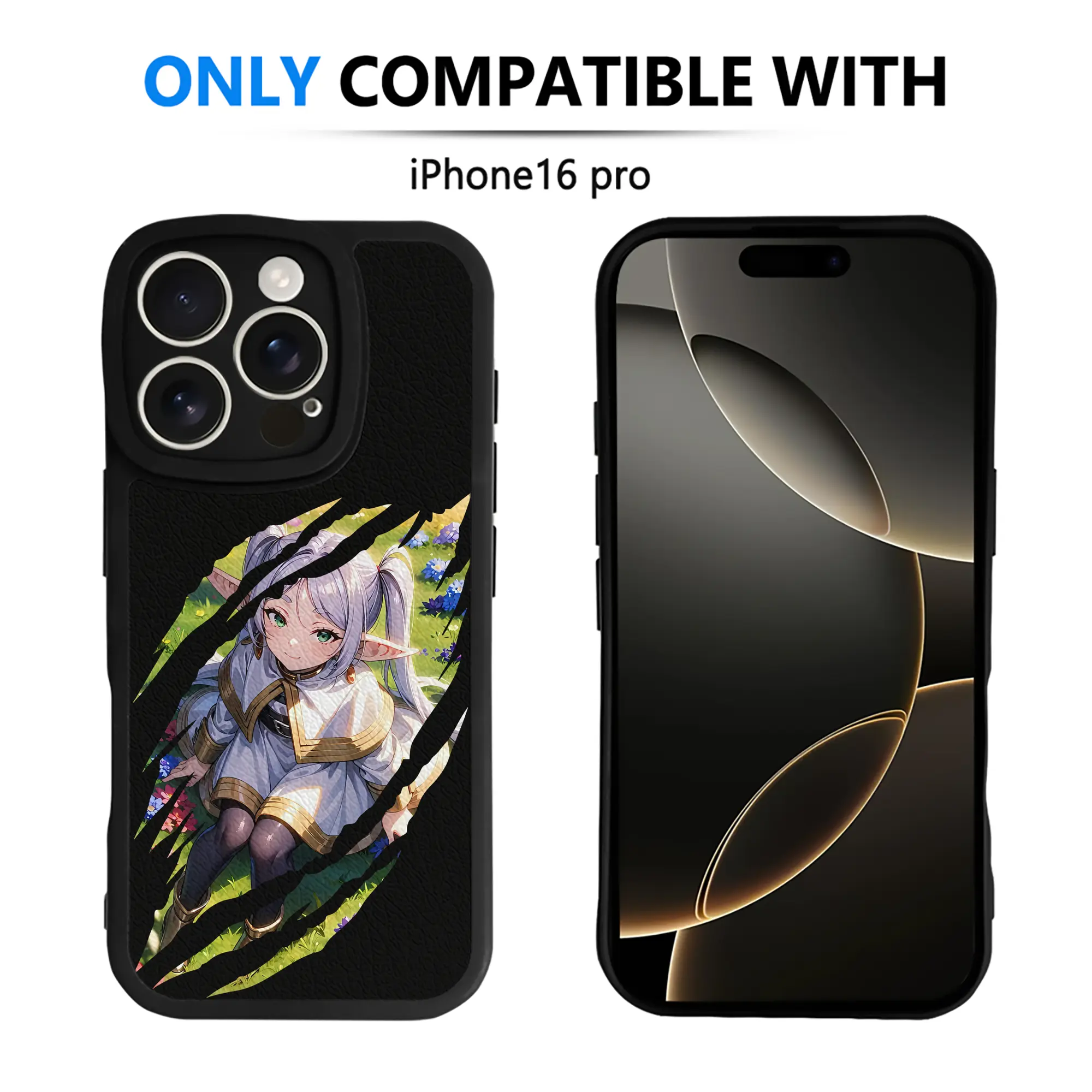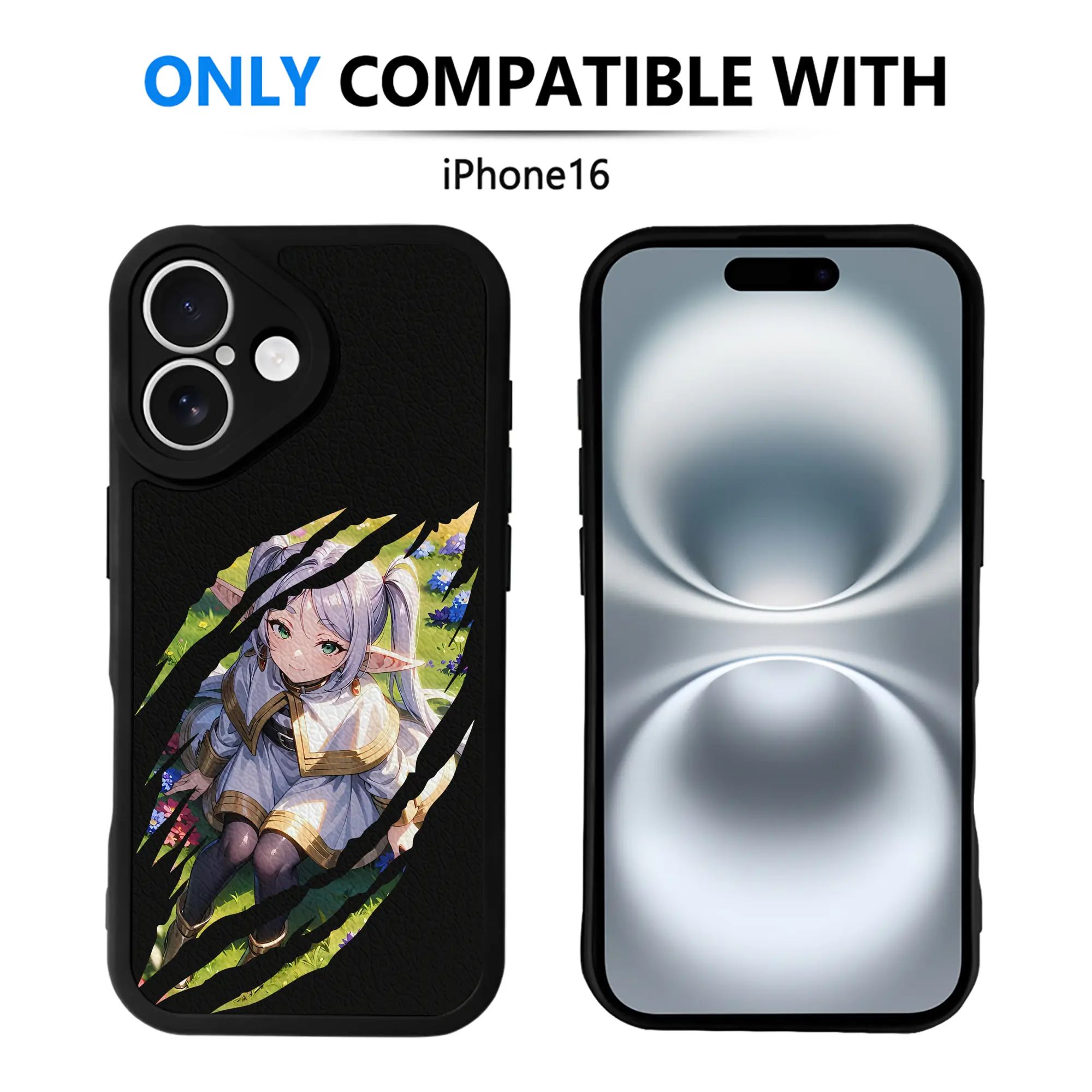 葬送のフリーレン(Frieren) グッズ,フリーレン(Frieren) - IPhone 16シリーズ対応 ・ シリコンスマホケース ・ レザー調 ・ 高精度フィット ・ 耐衝撃 ・ ワイヤレス充電対応 ・ 精密カット
